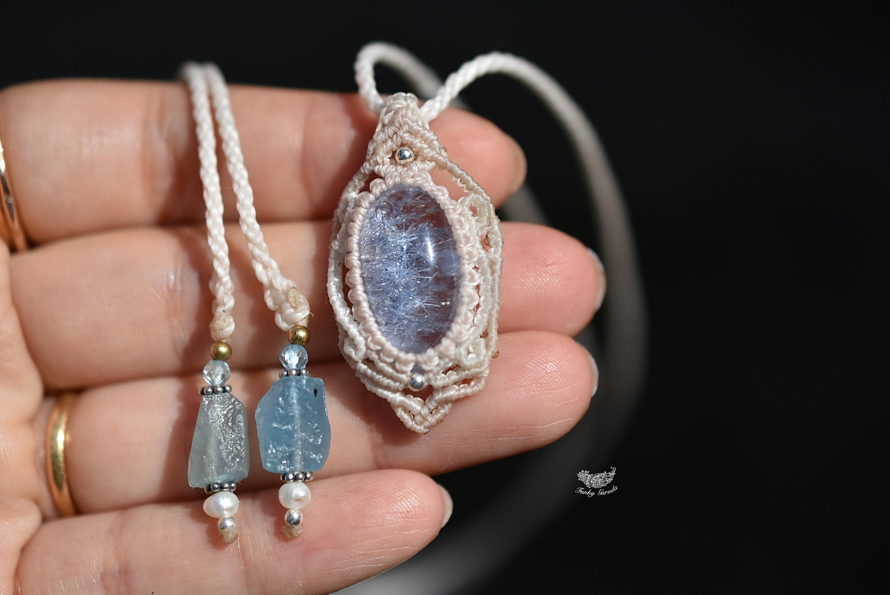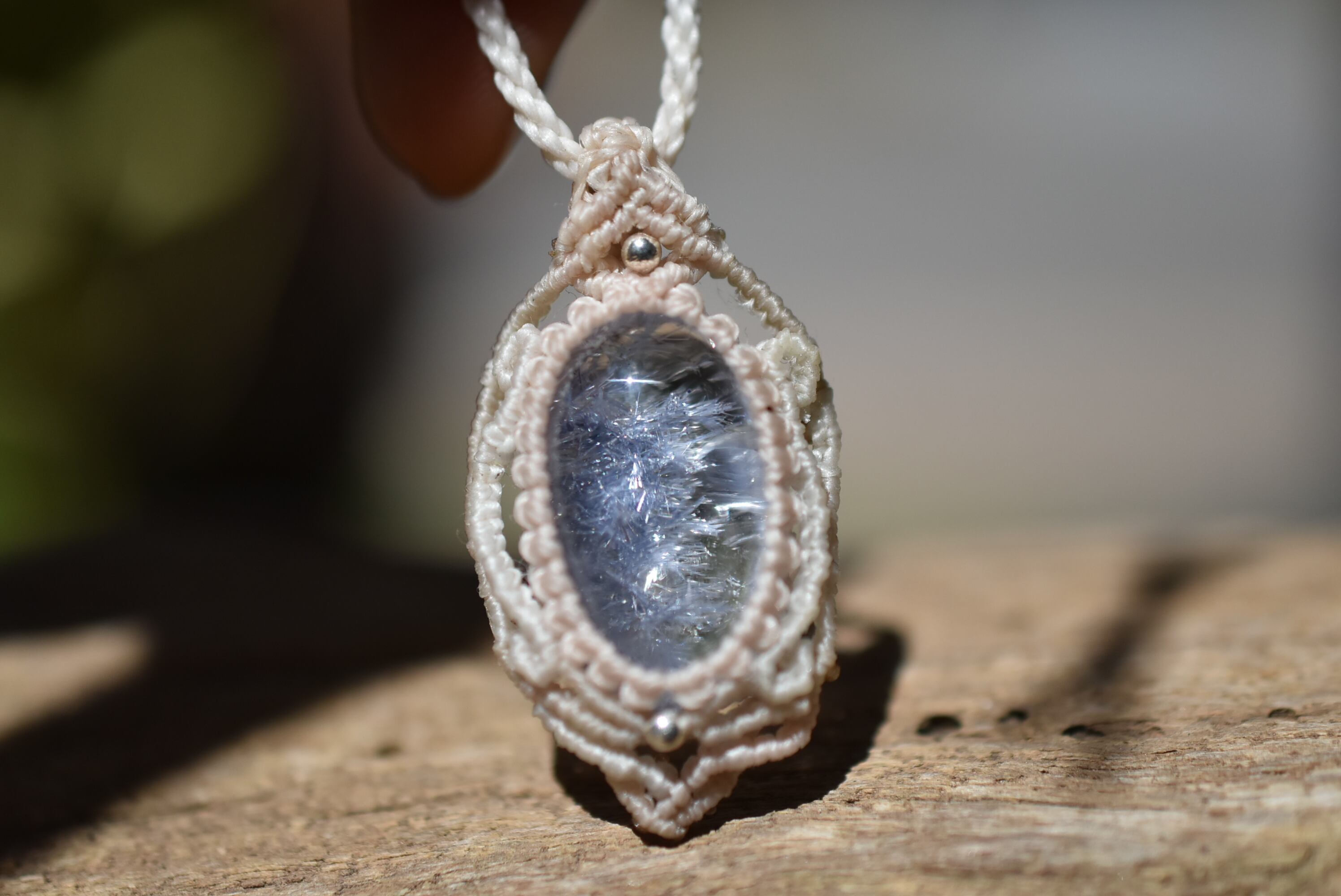 キラキラ針★デュモルチェライトインインクォーツ マクラメネックレス993