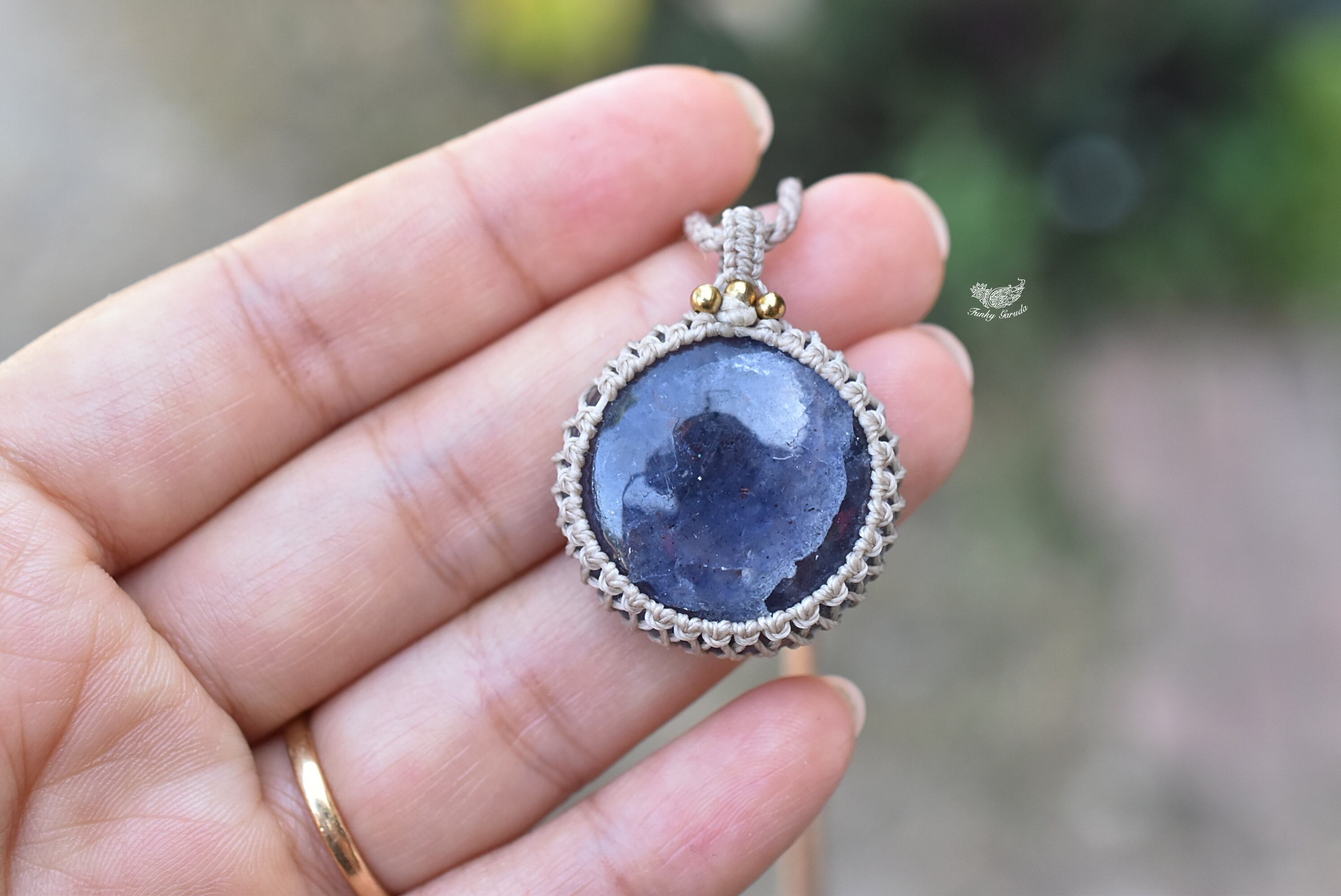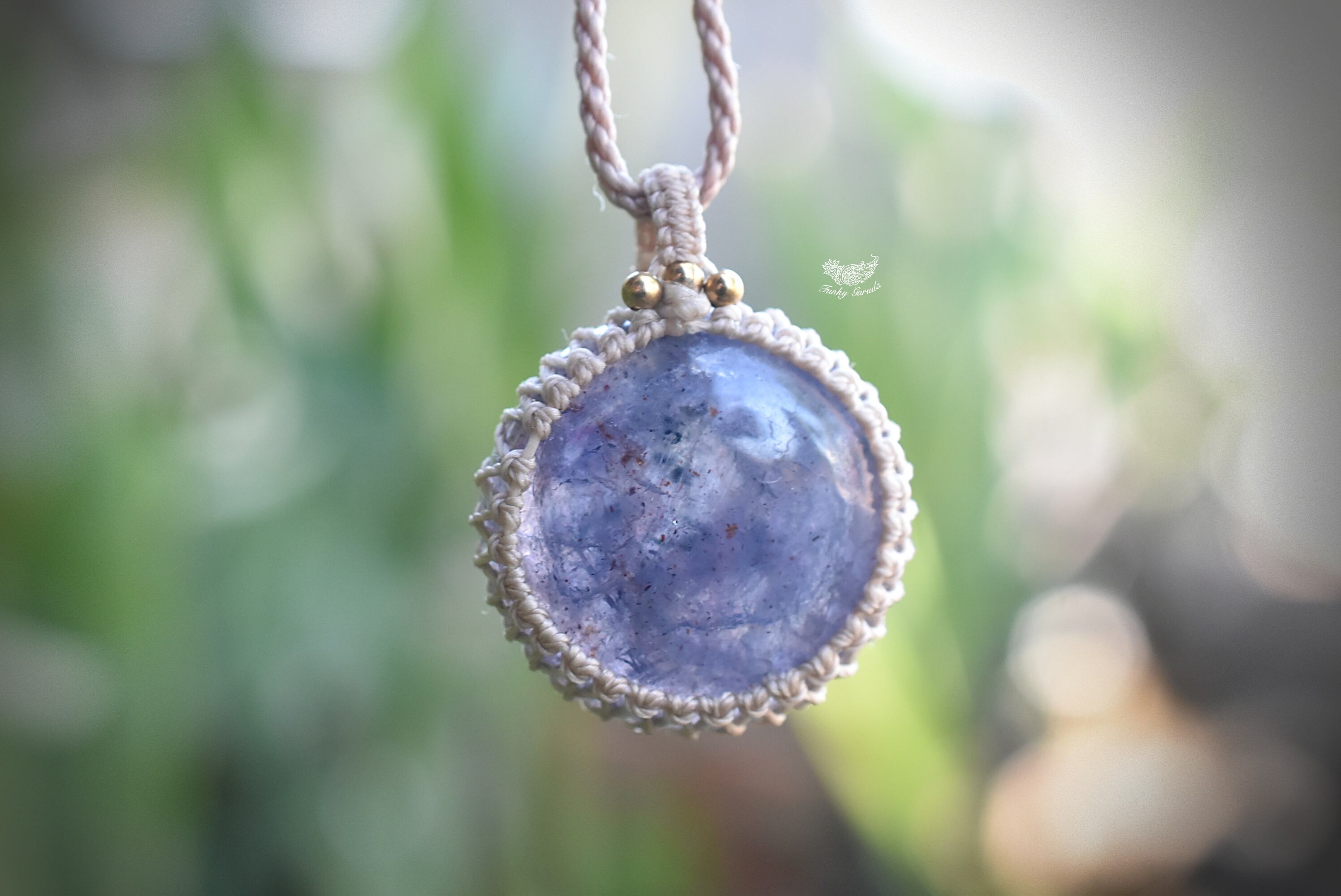 ◆このたびはカフェオレ、ヘンプ色の蝋引き糸を使用しマクラメ編み装飾を施しました。