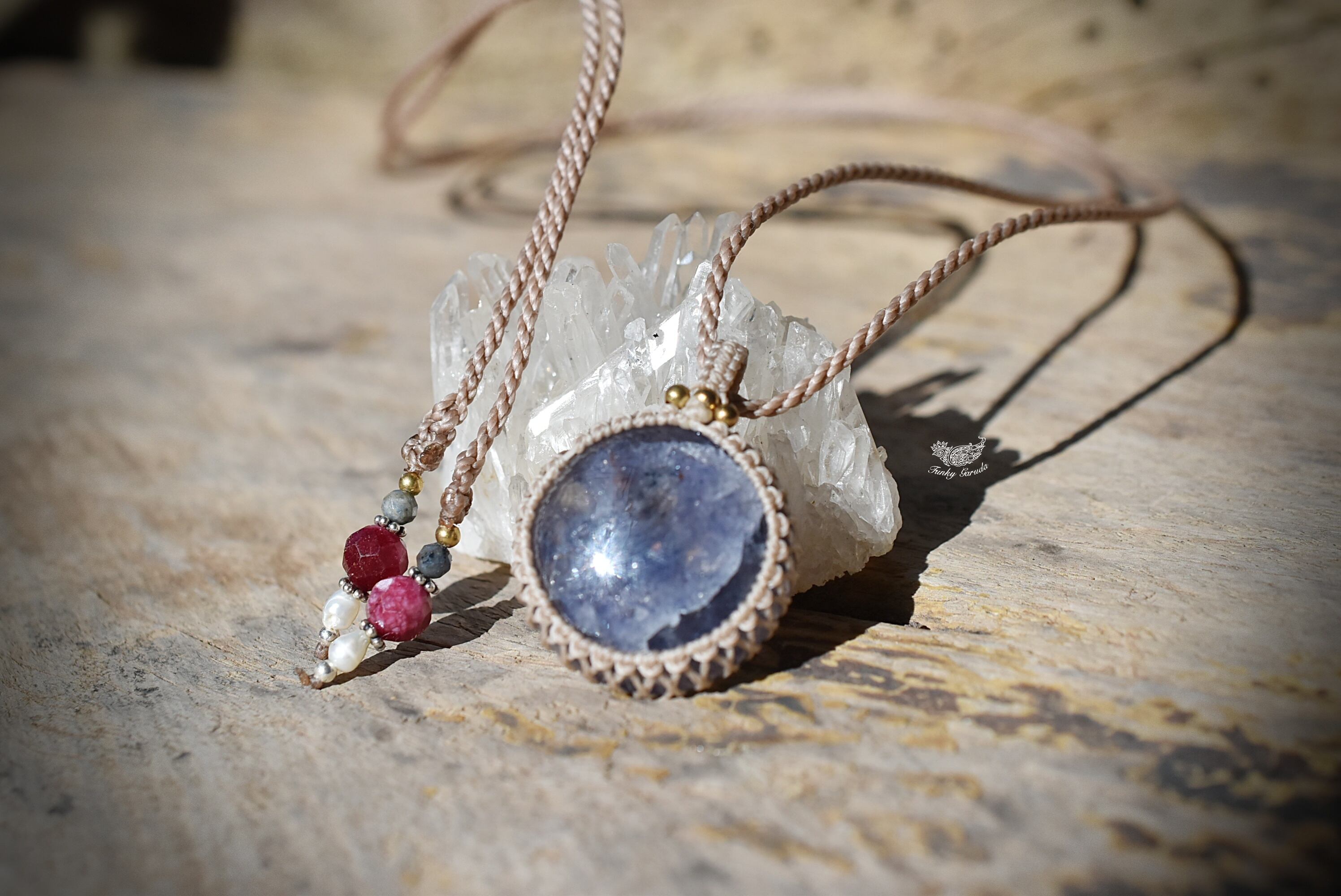 赤いイリデッセンス★アイオライト マクラメネックレス999