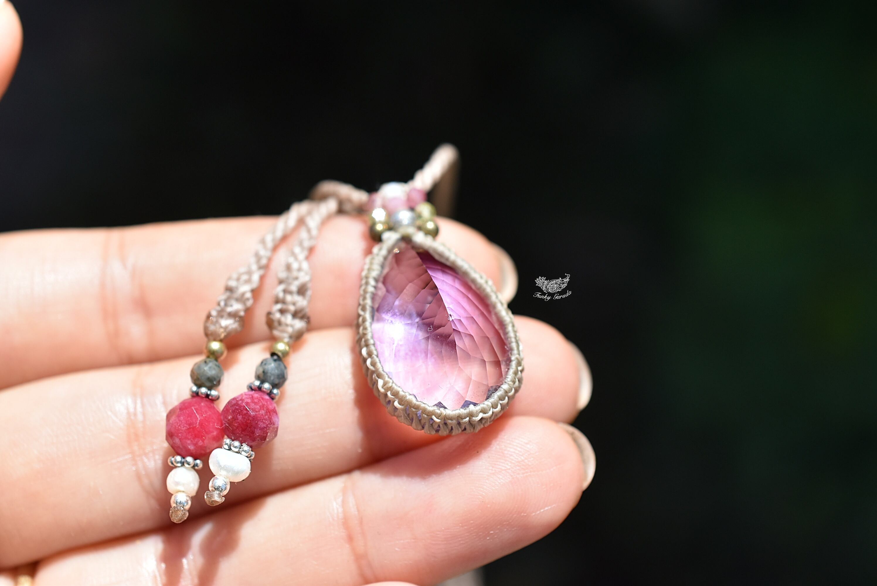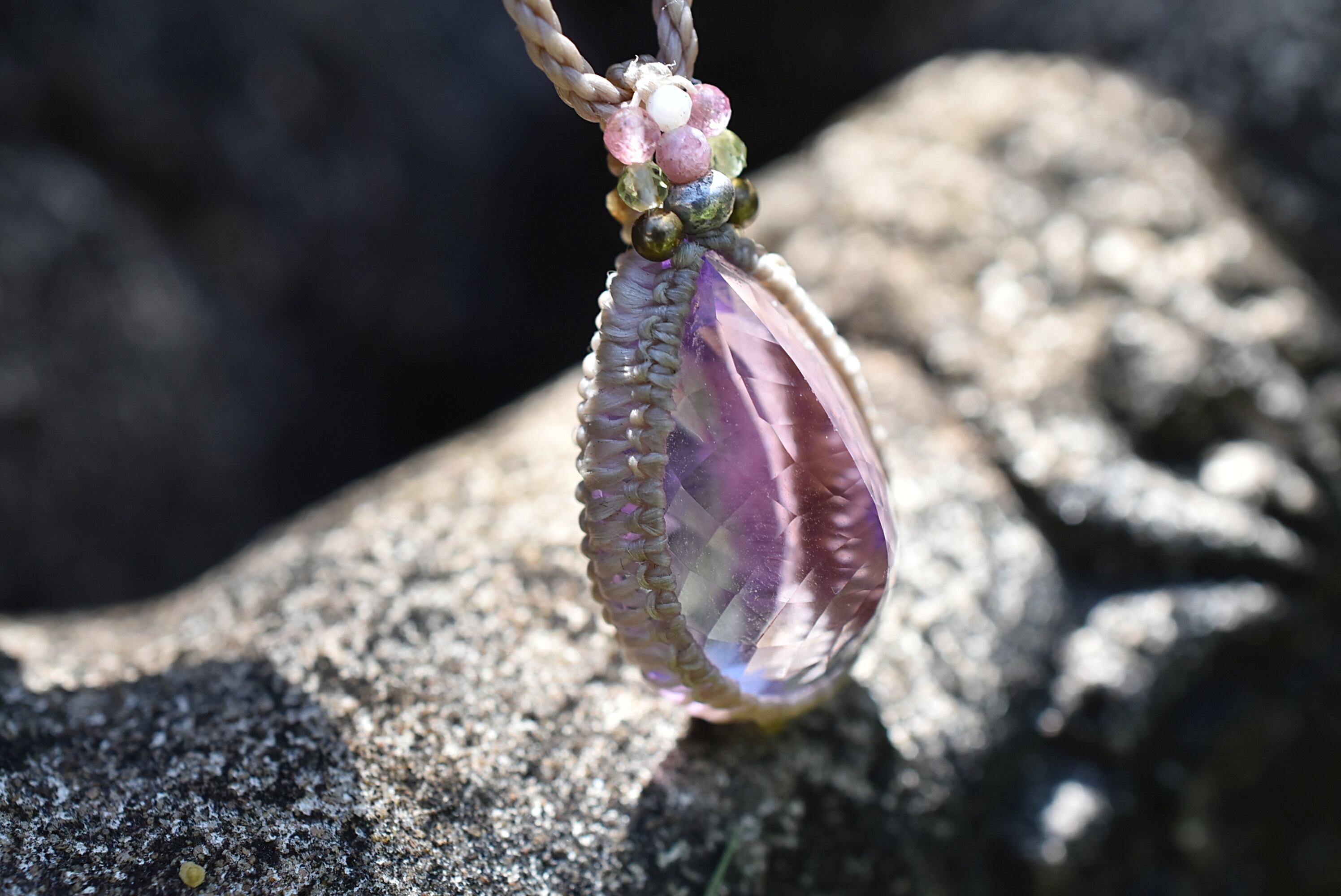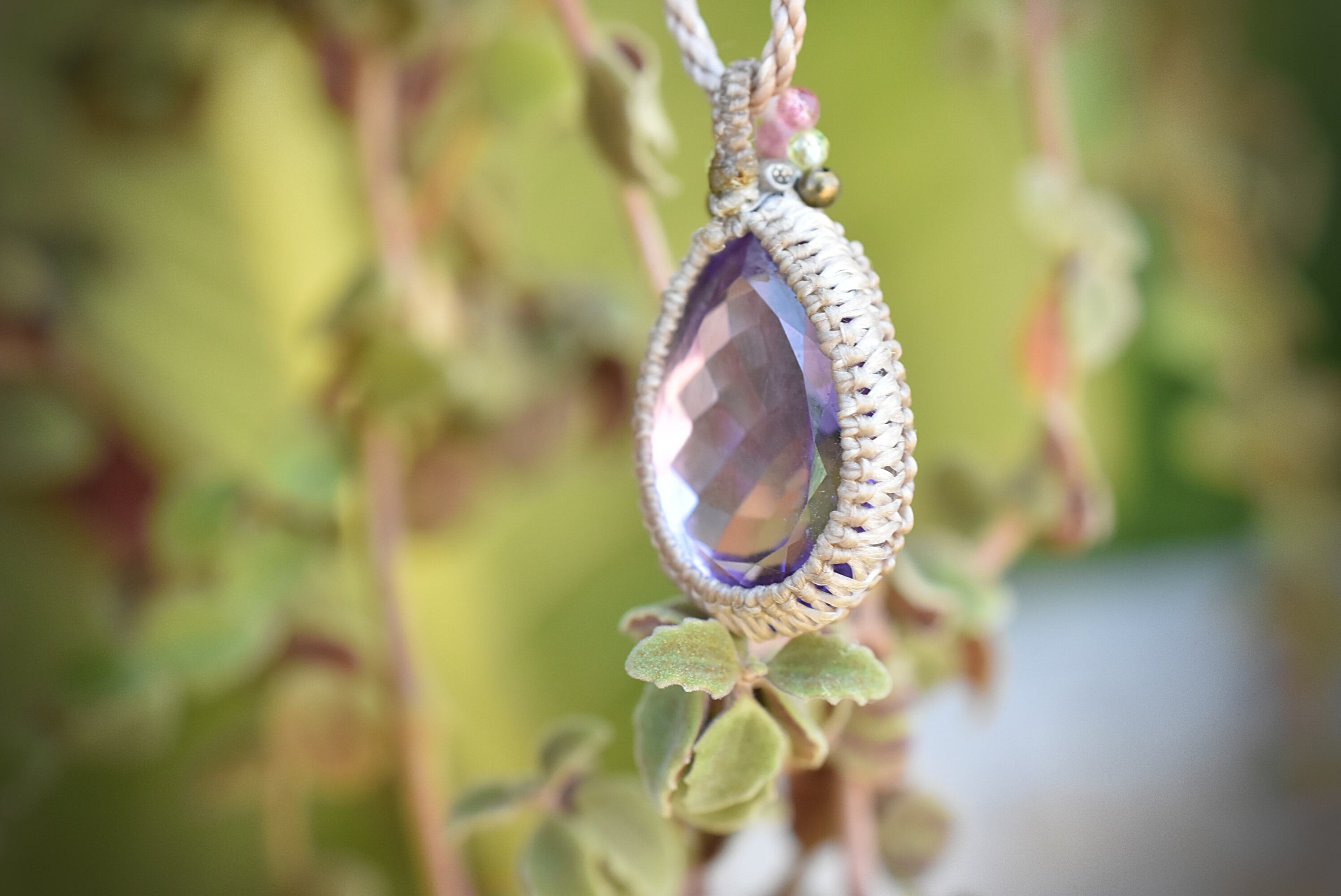 ファセットカット宝石★アメジスト マクラメネックレス1002