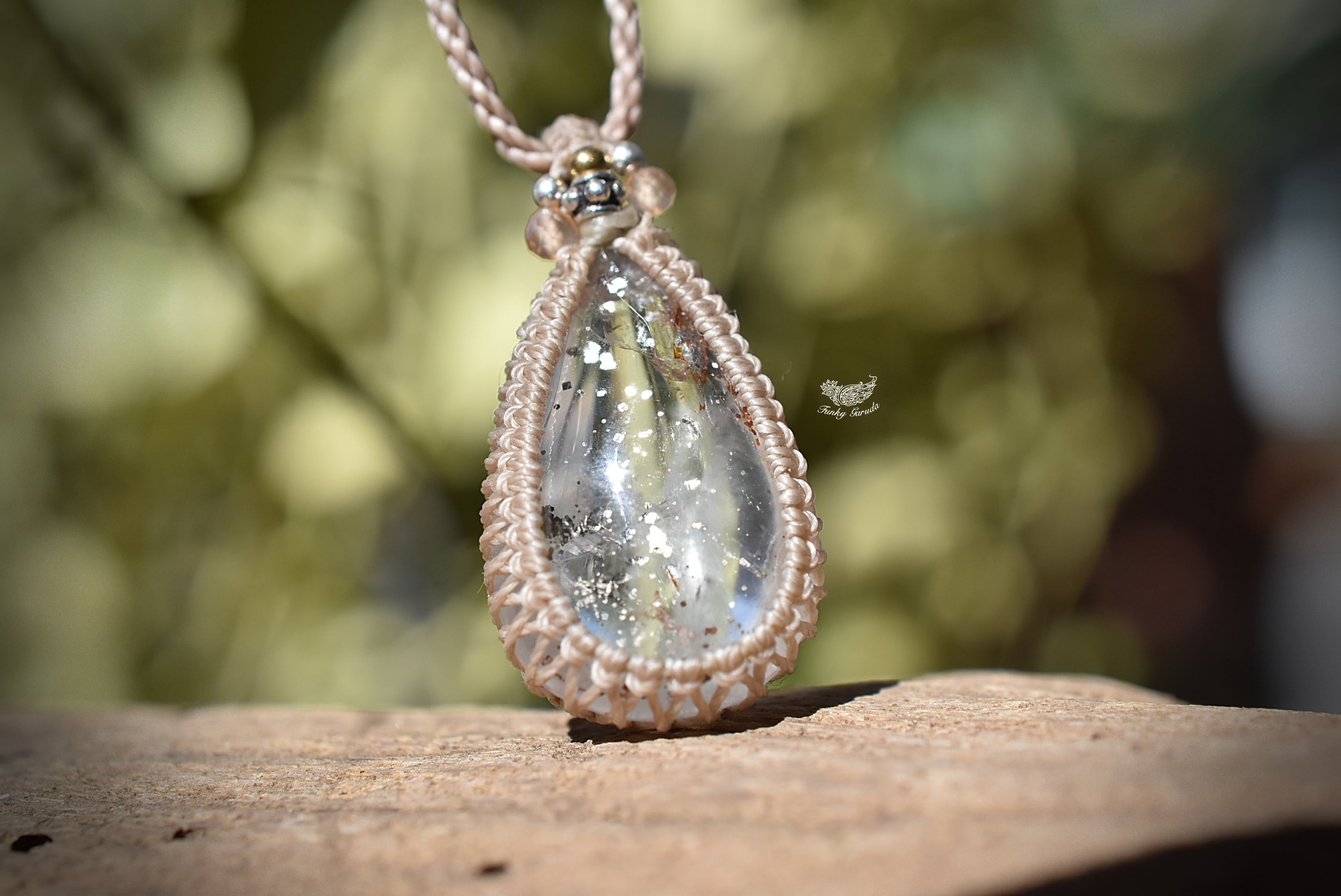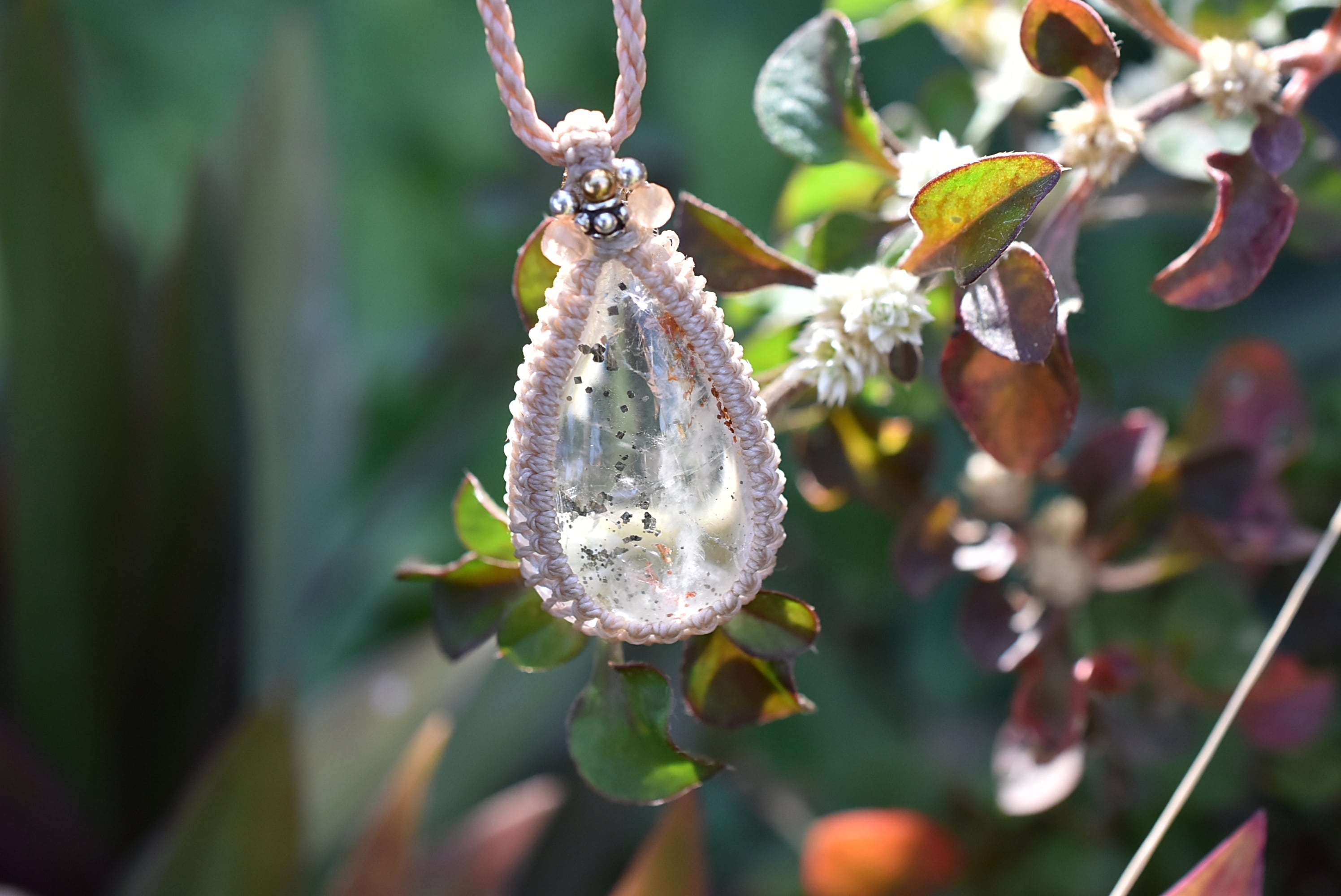 レア★銀の印★パイライトインクォーツ マクラメネックレス1003