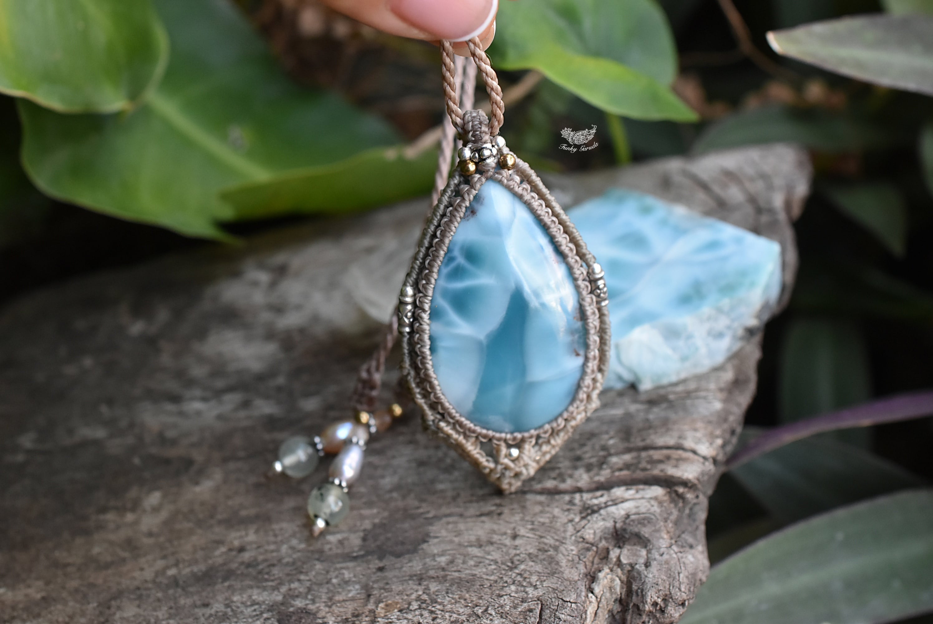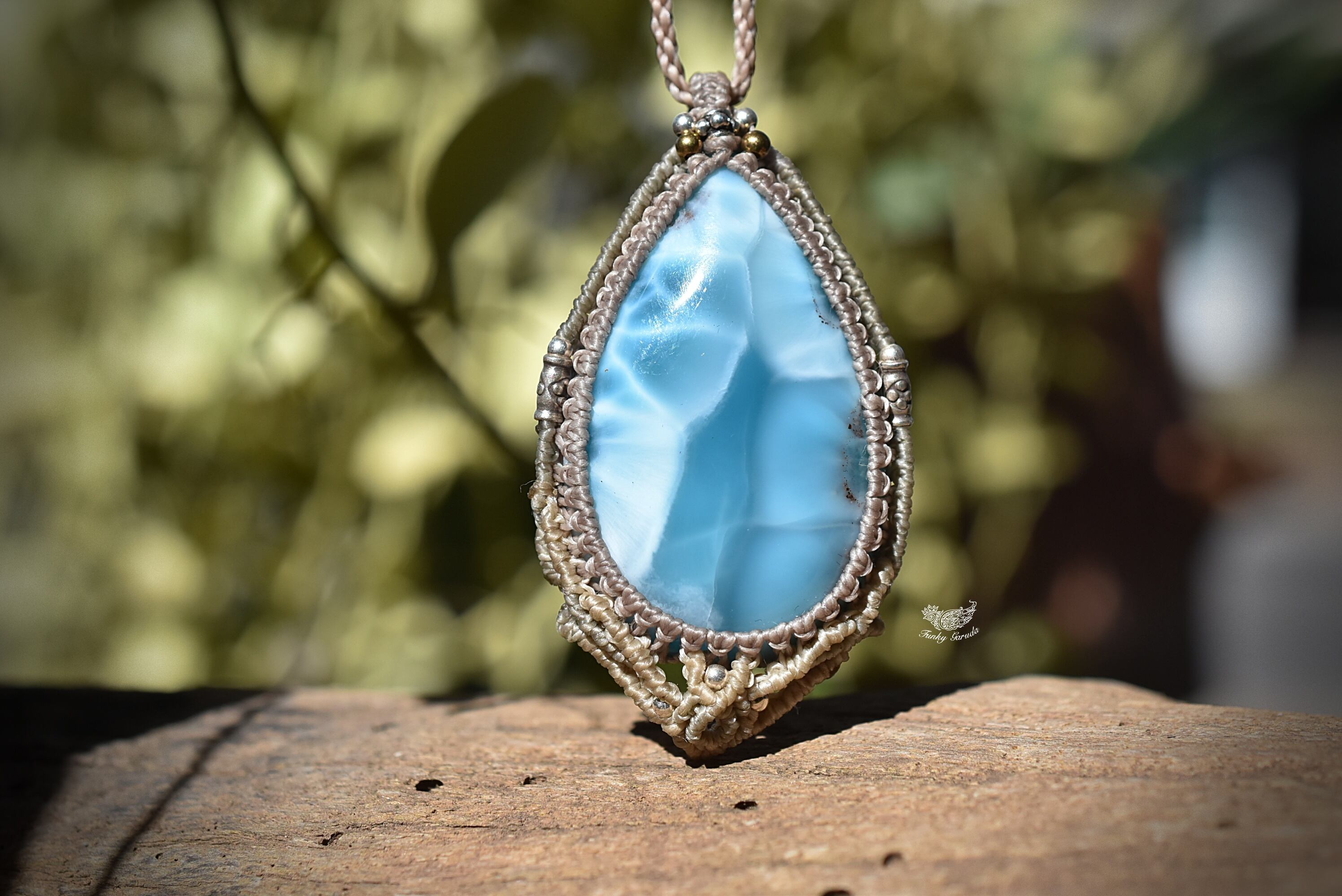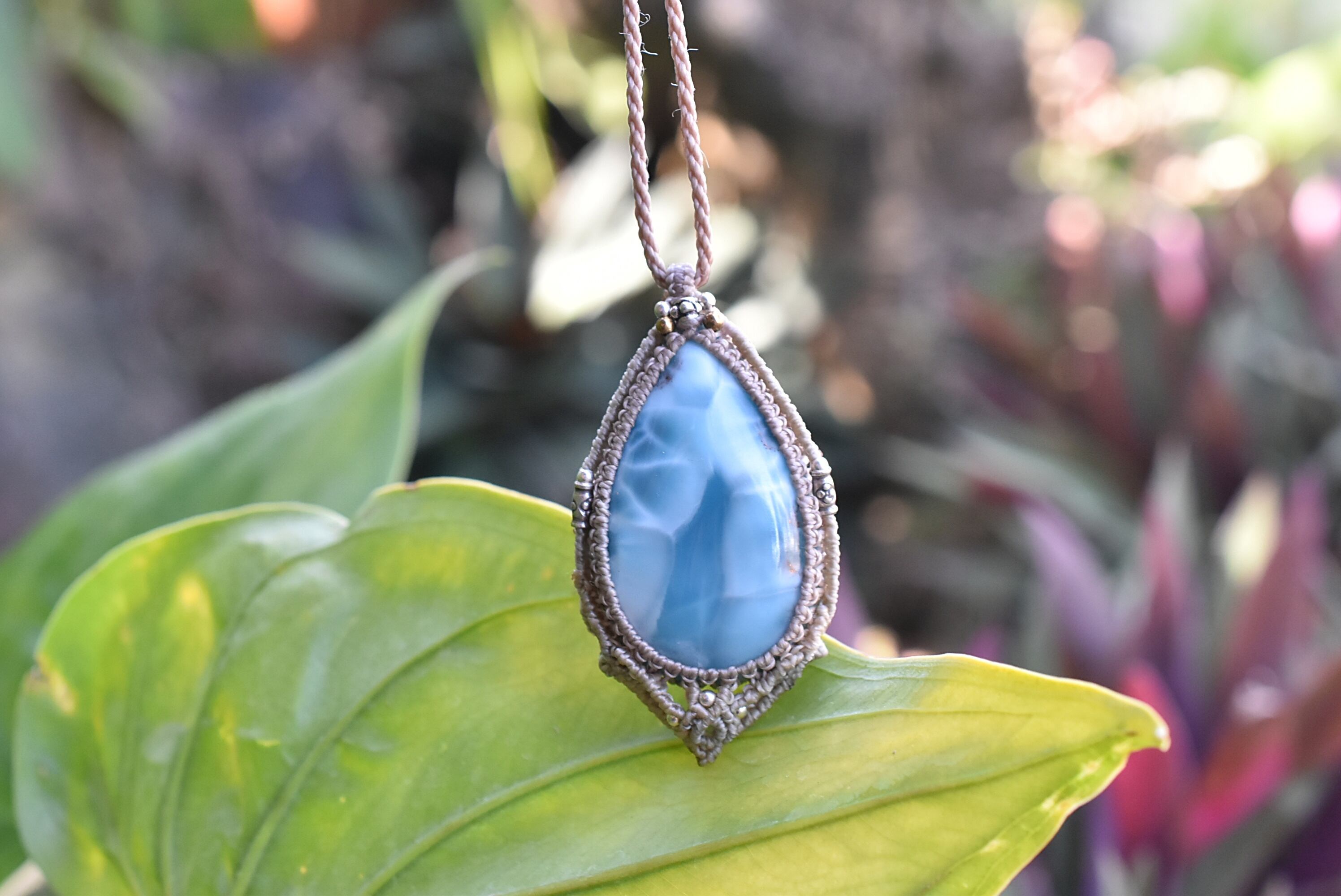 特大★ディープな海★高品質★ラリマー マクラメネックレス1005