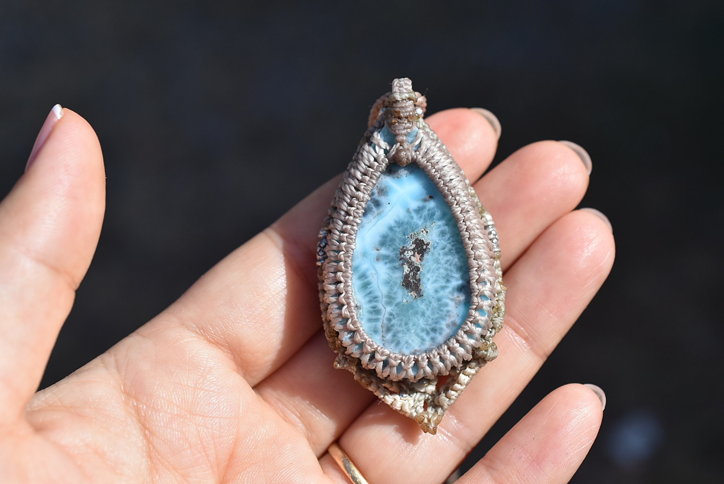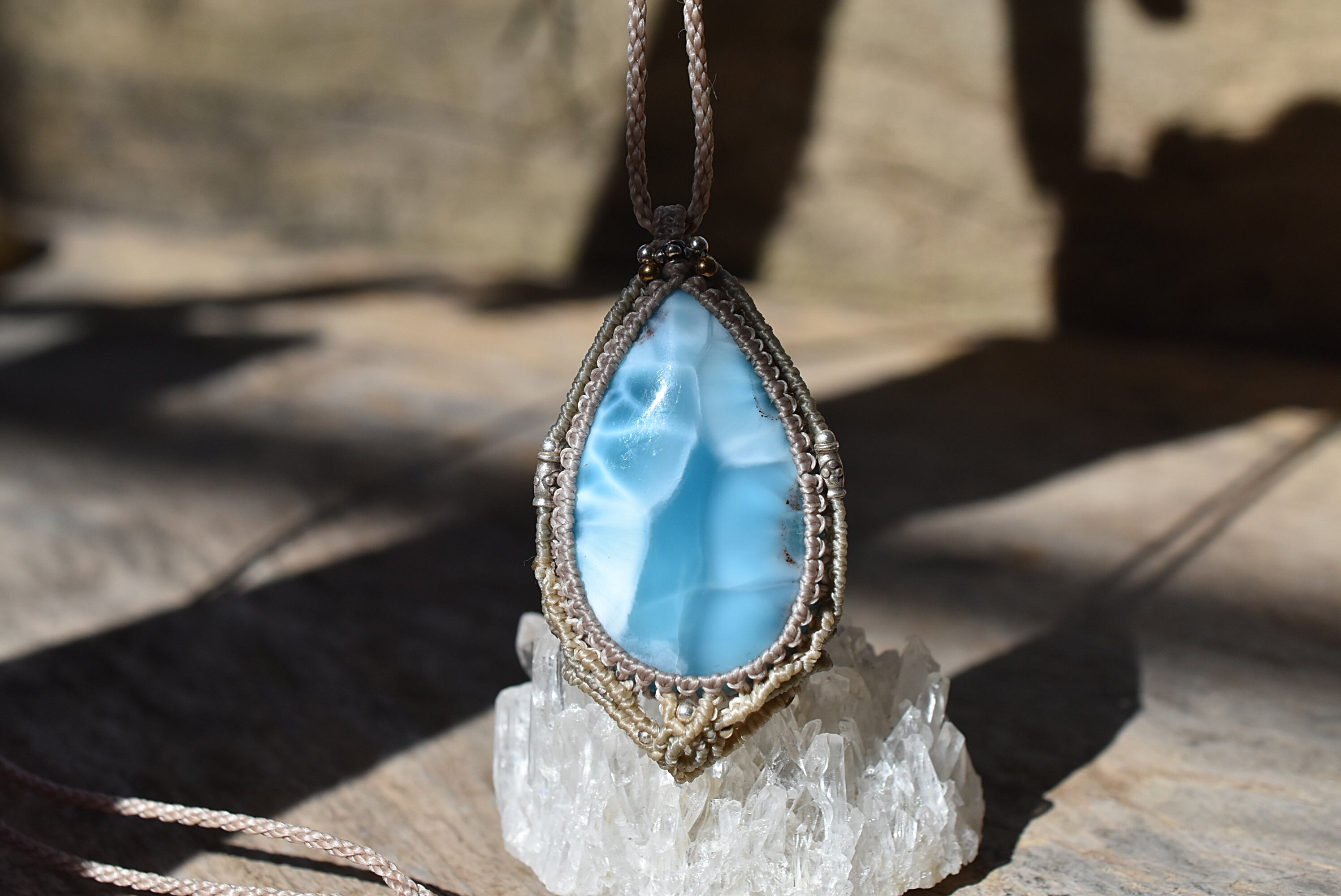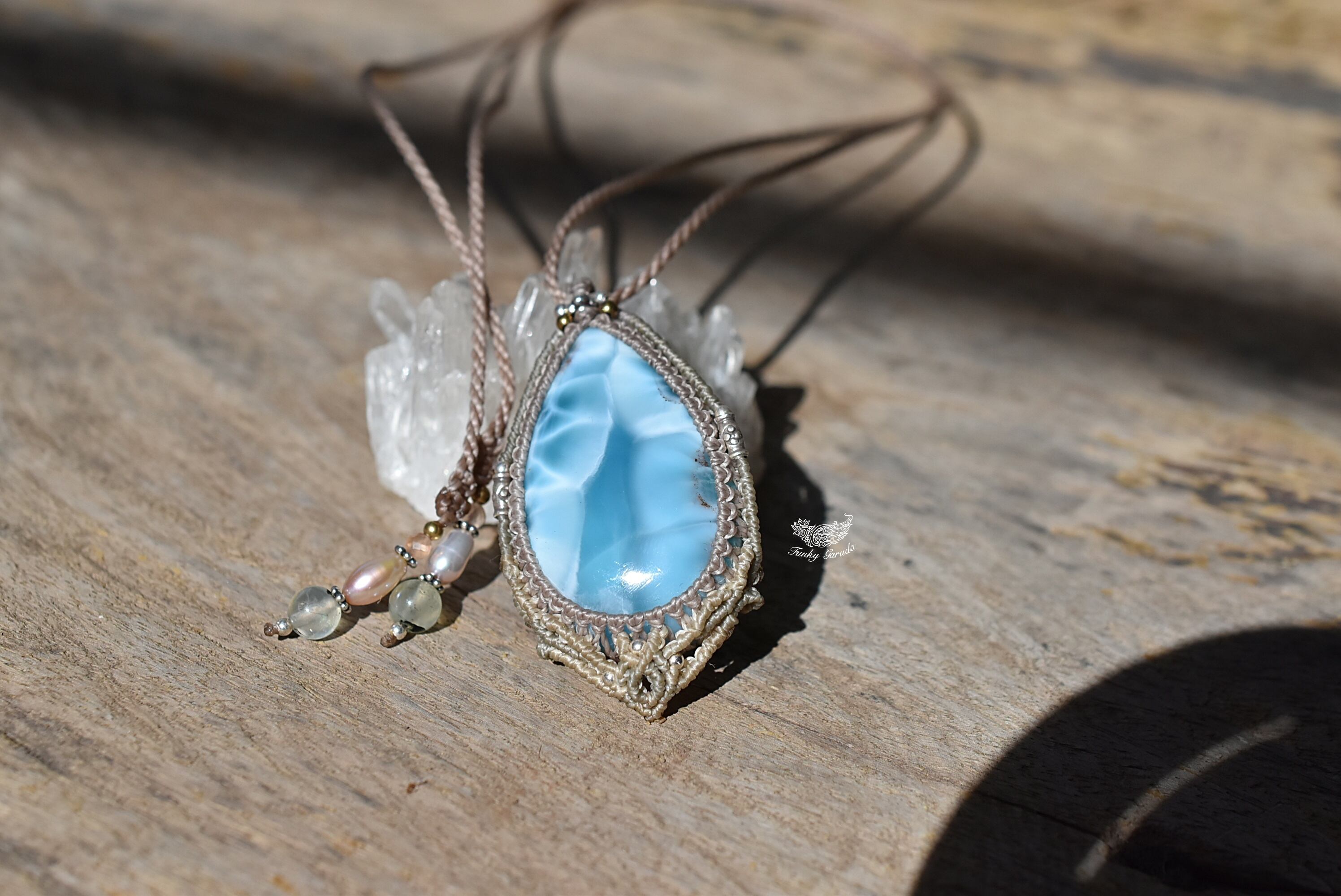 特大★ディープな海★高品質★ラリマー マクラメネックレス1005