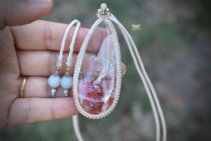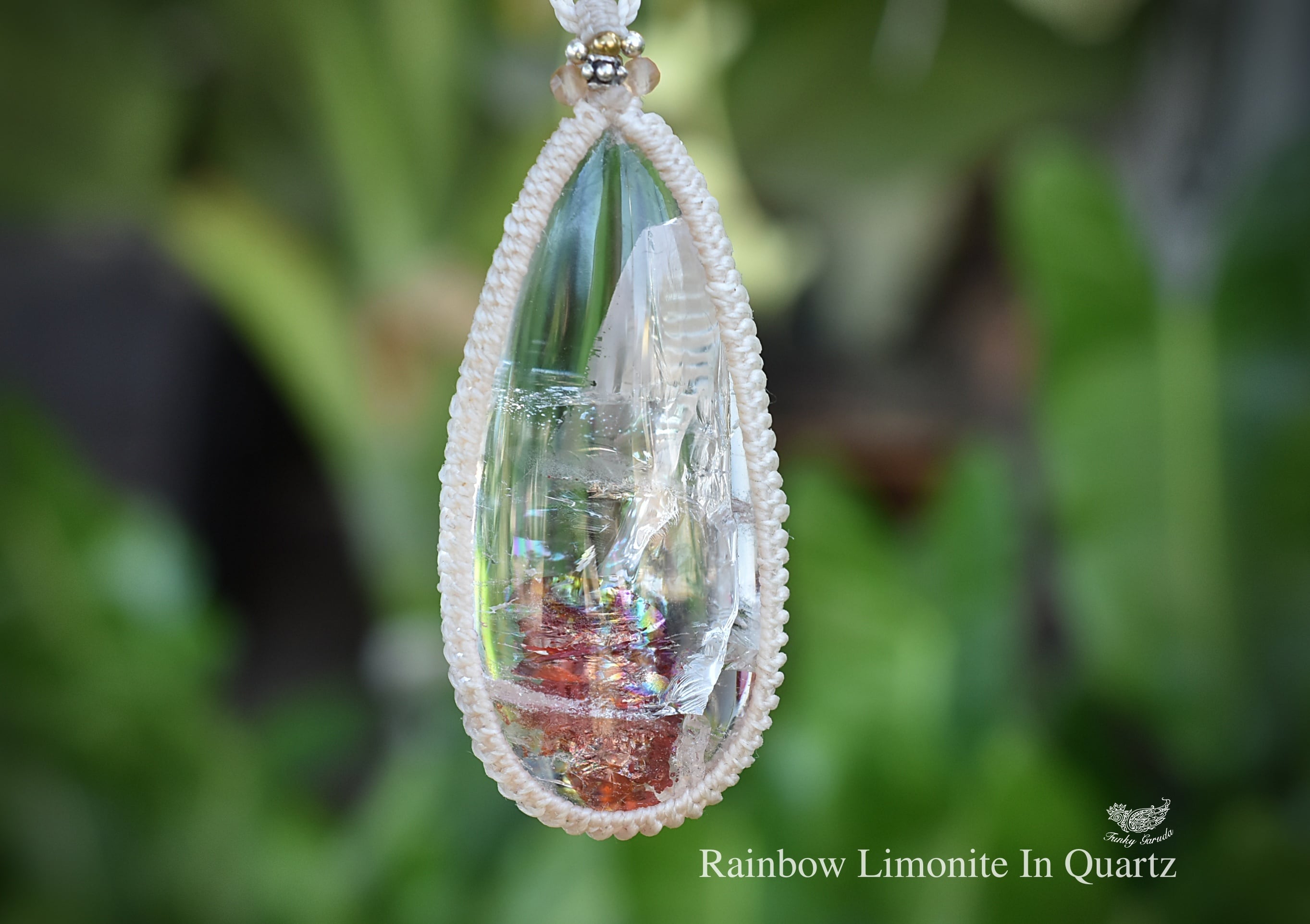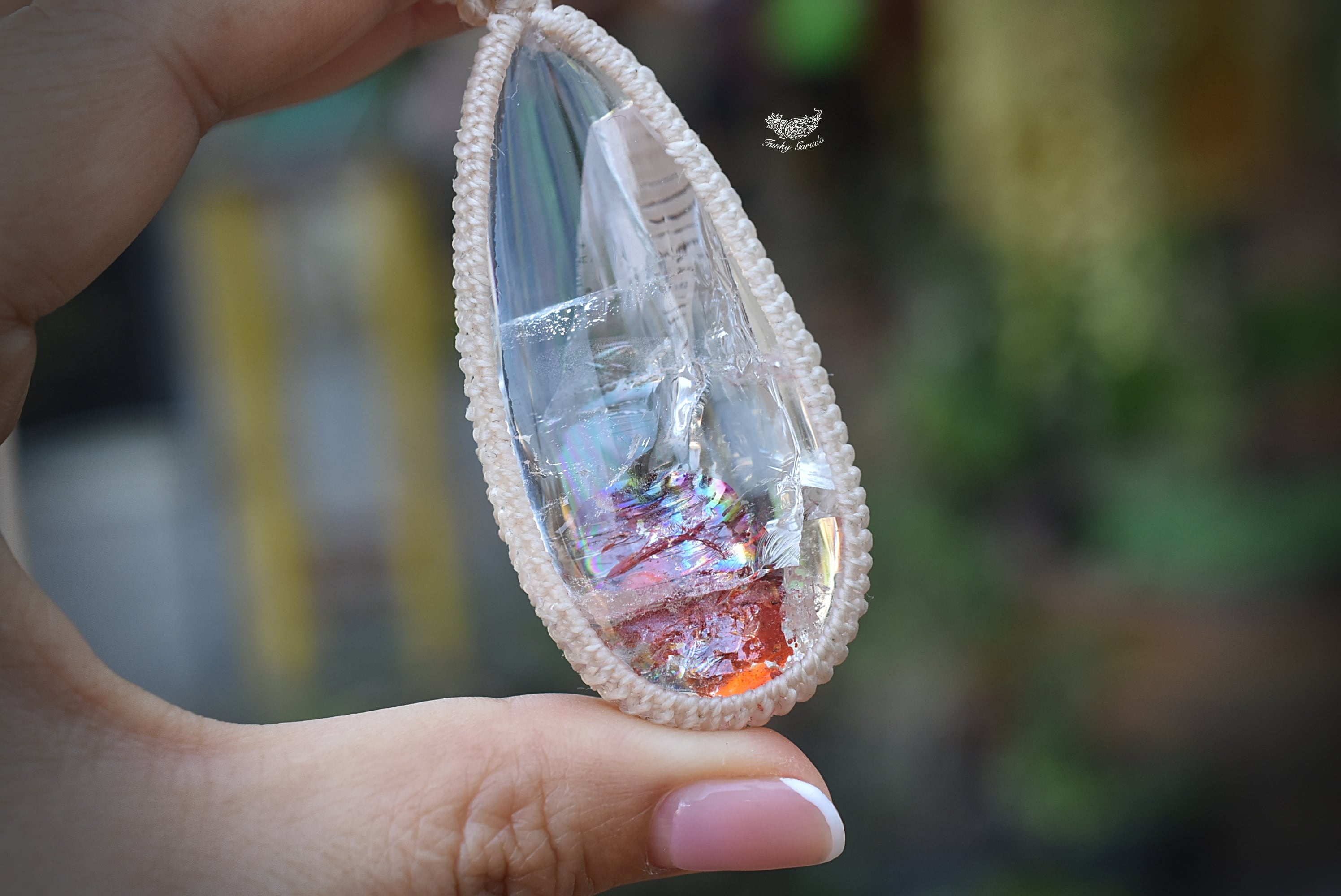 大きな炎と七色★ライモナイトインクォーツ マクラメネックレス1008