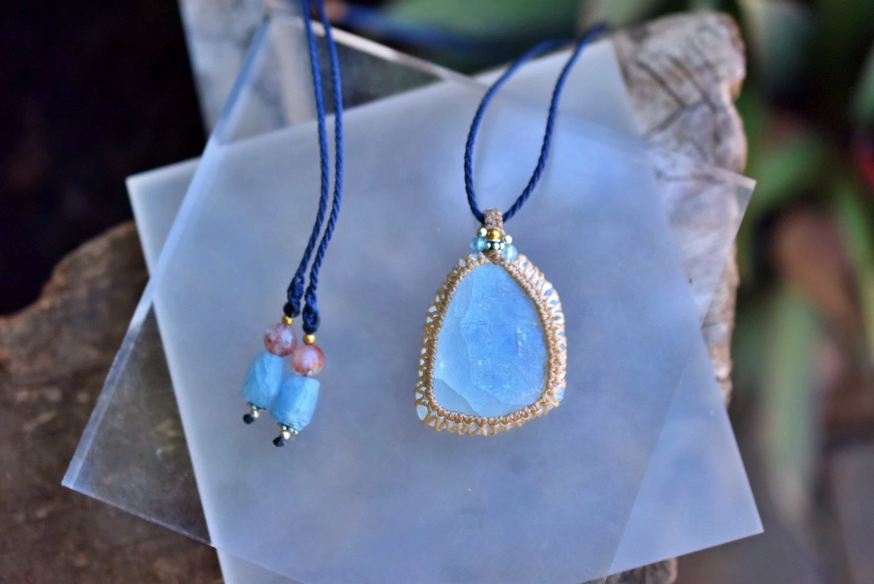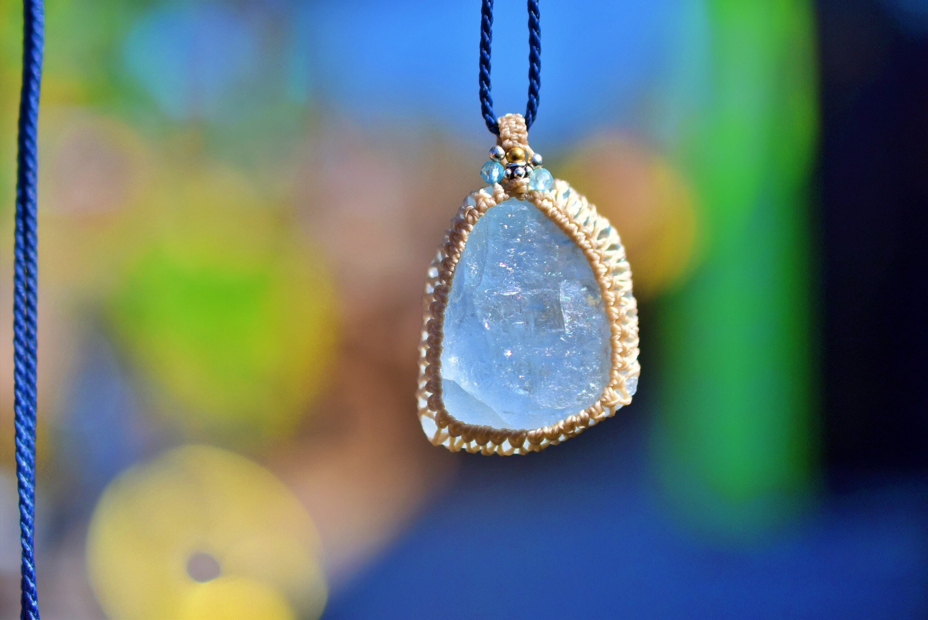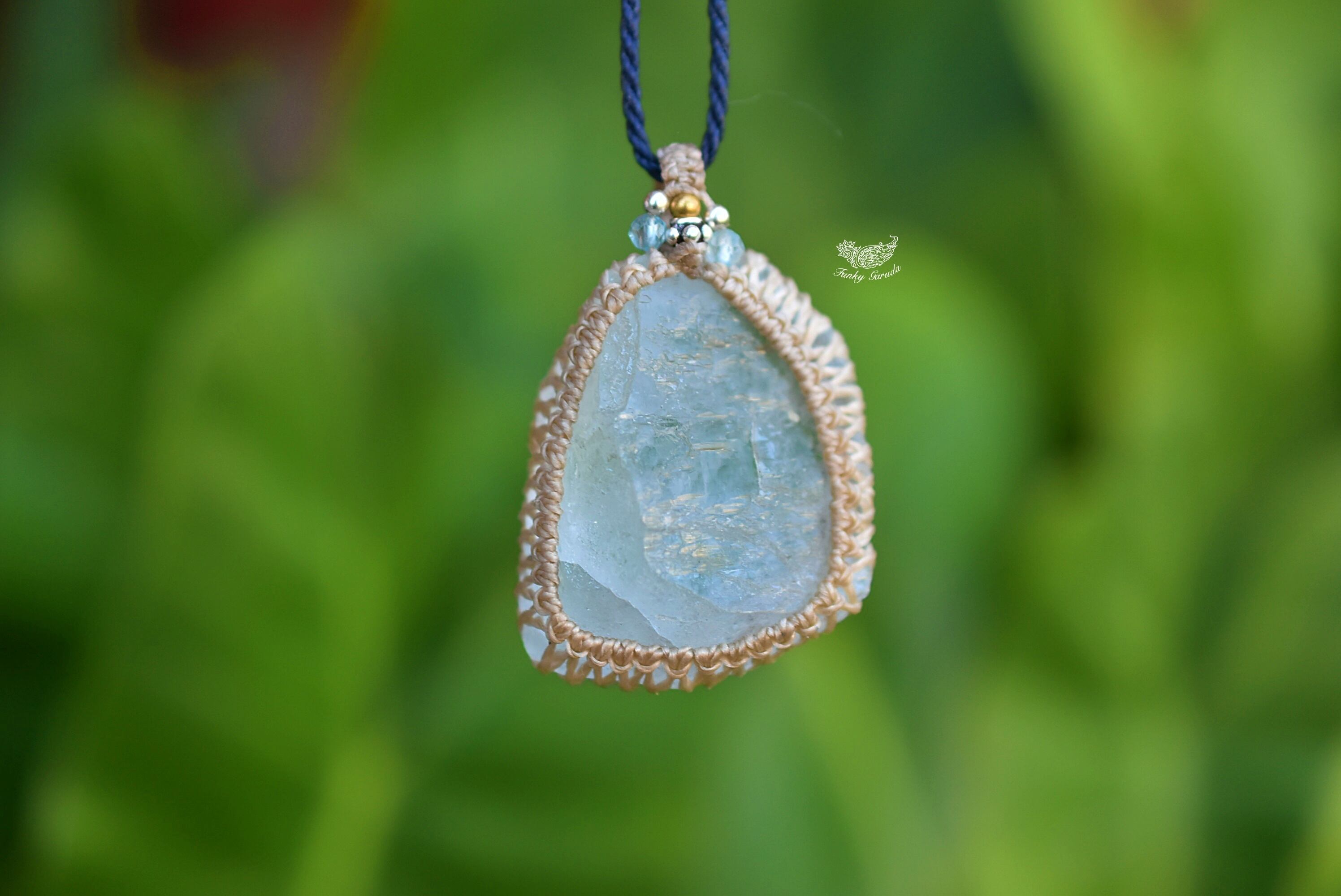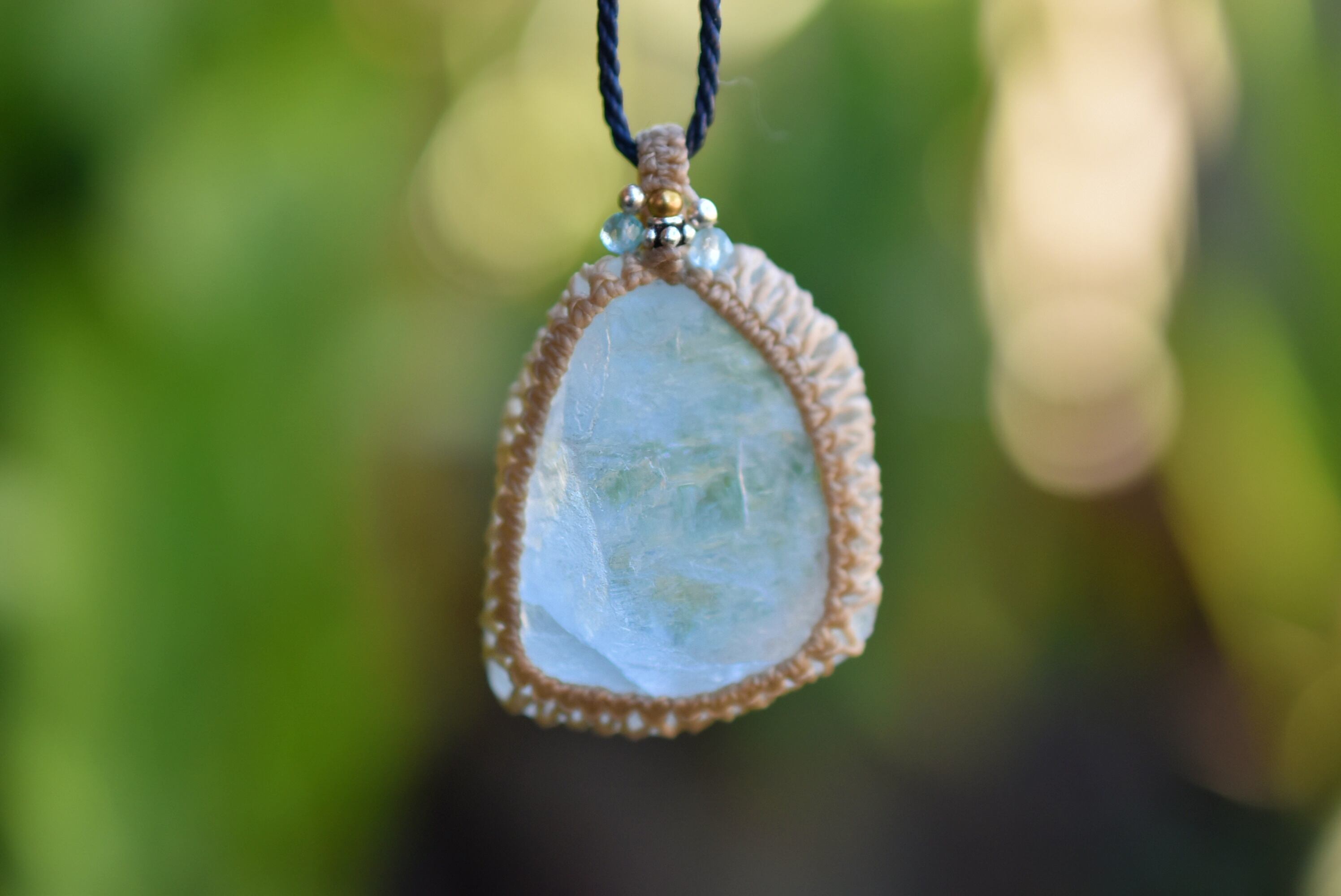 透明涙★アクアマリン原石 マクラメネックレス1011