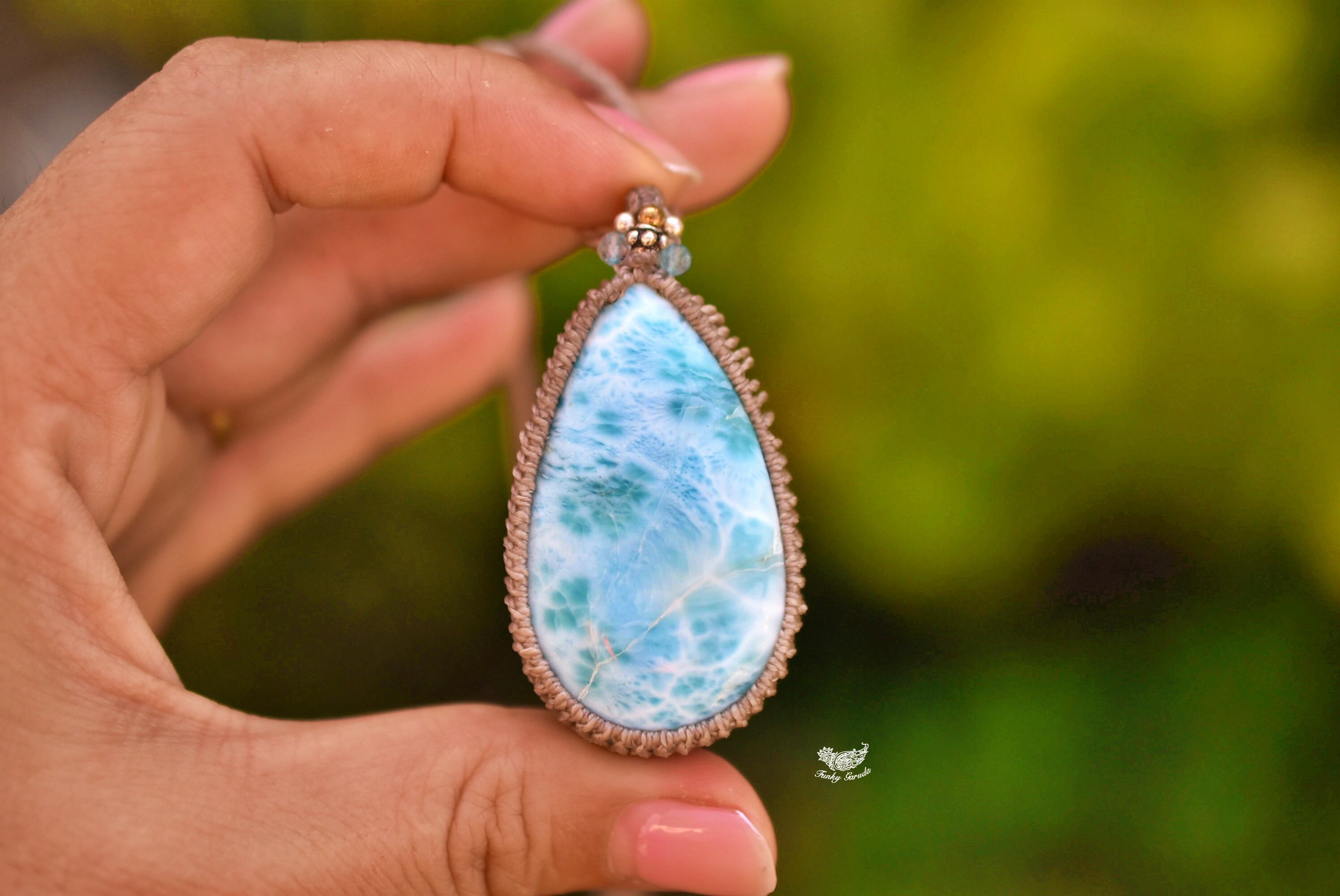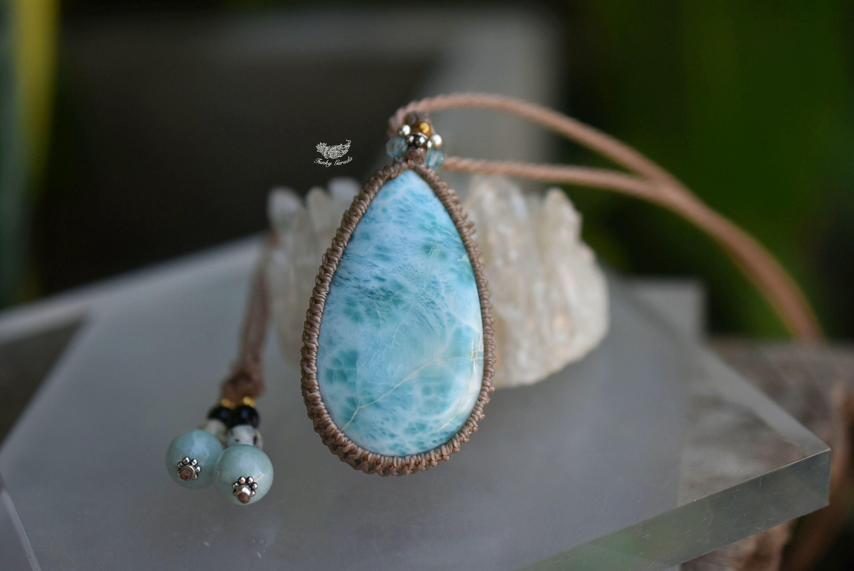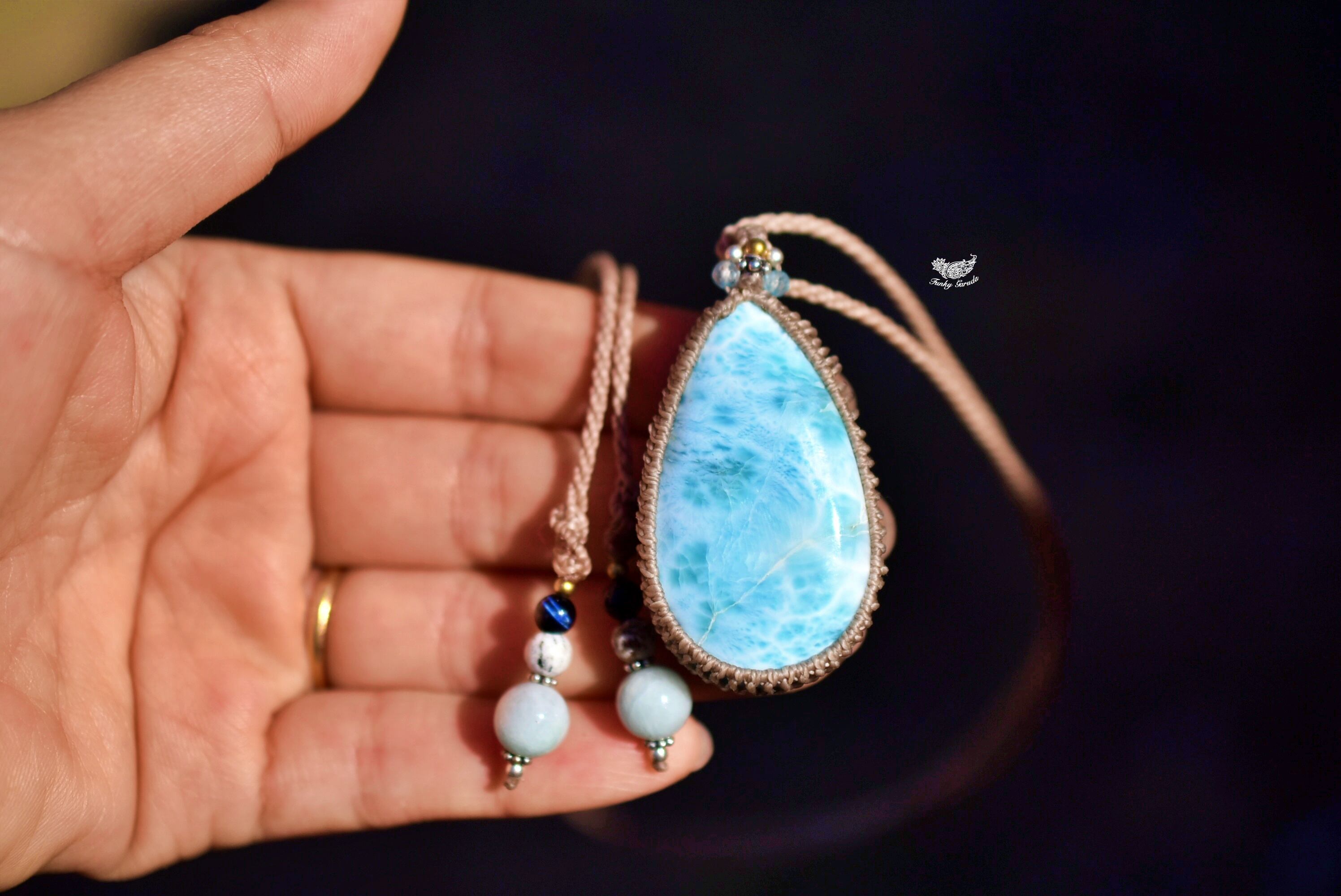 大粒★渦の生命体★ラリマー マクラメネックレス1018