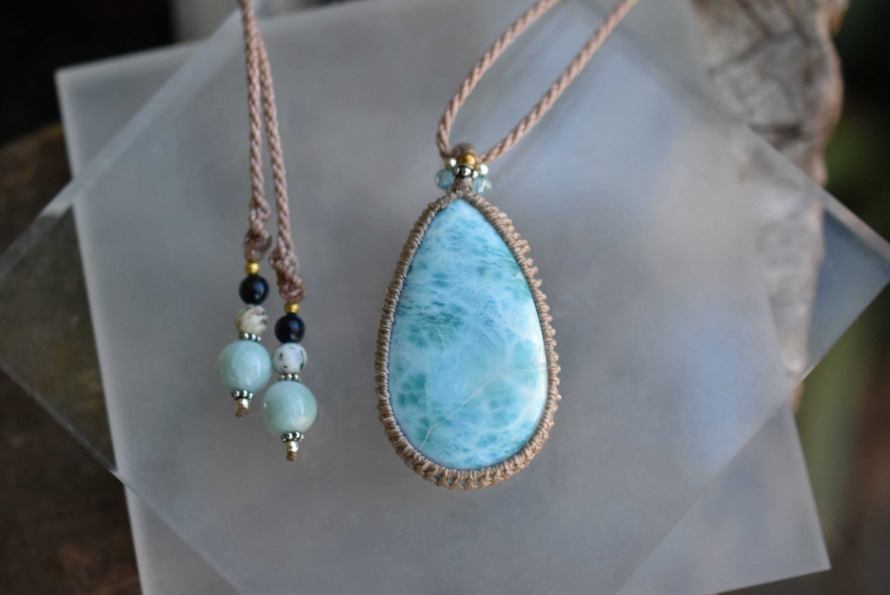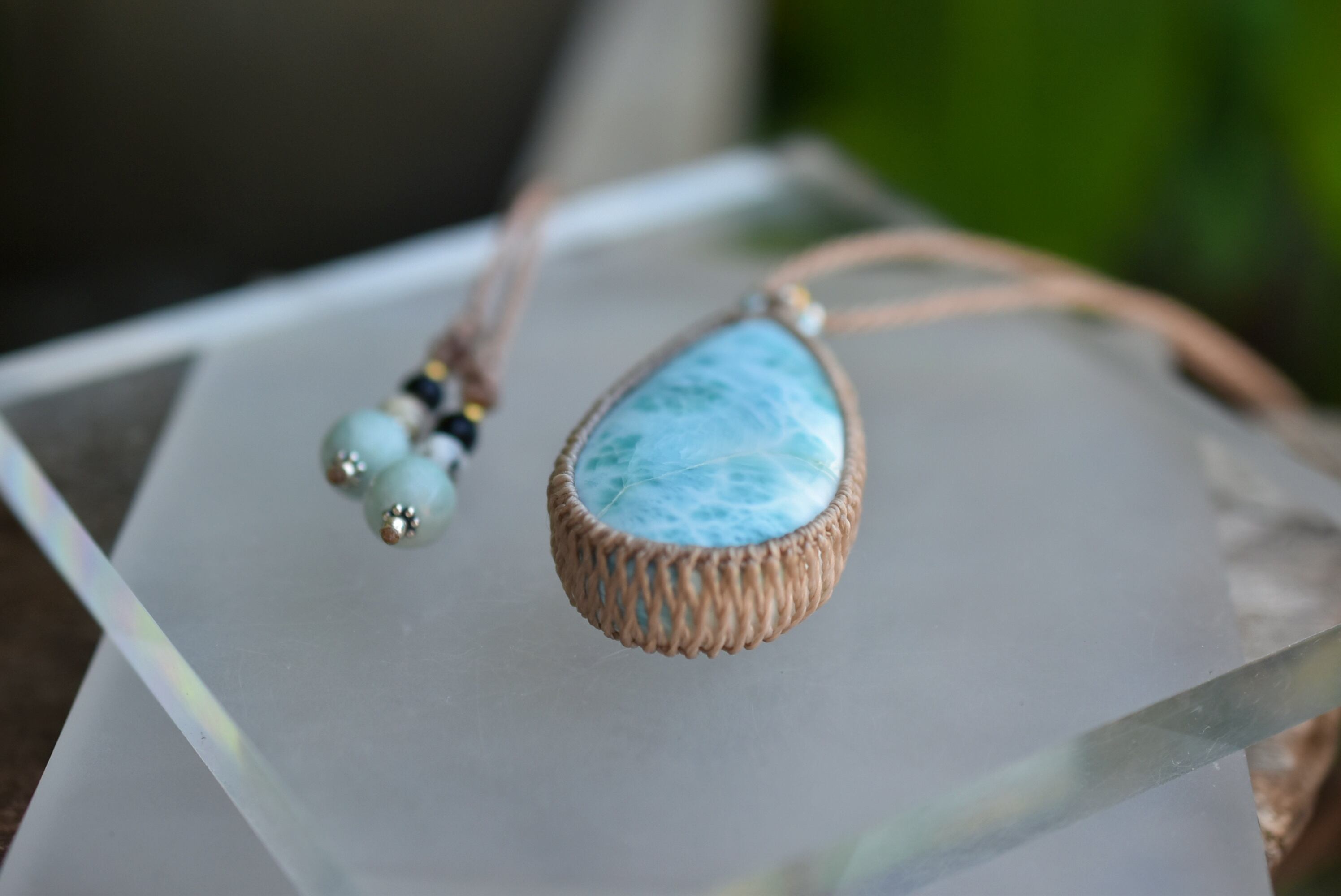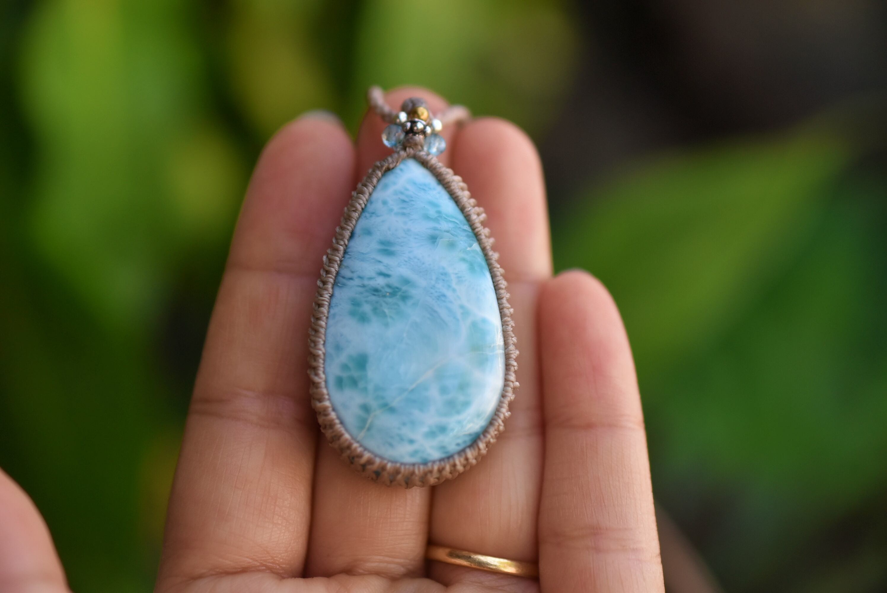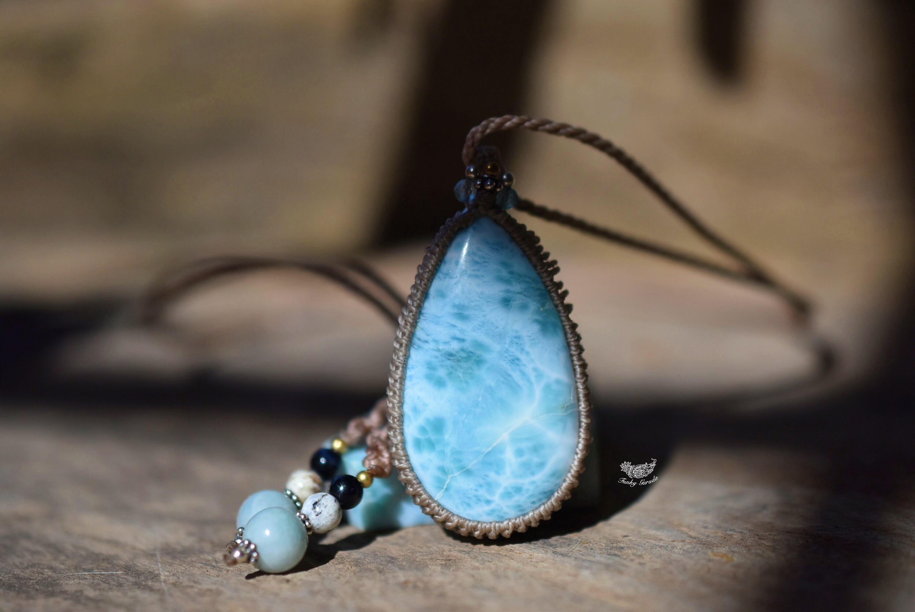 大粒★渦の生命体★ラリマー マクラメネックレス1018
