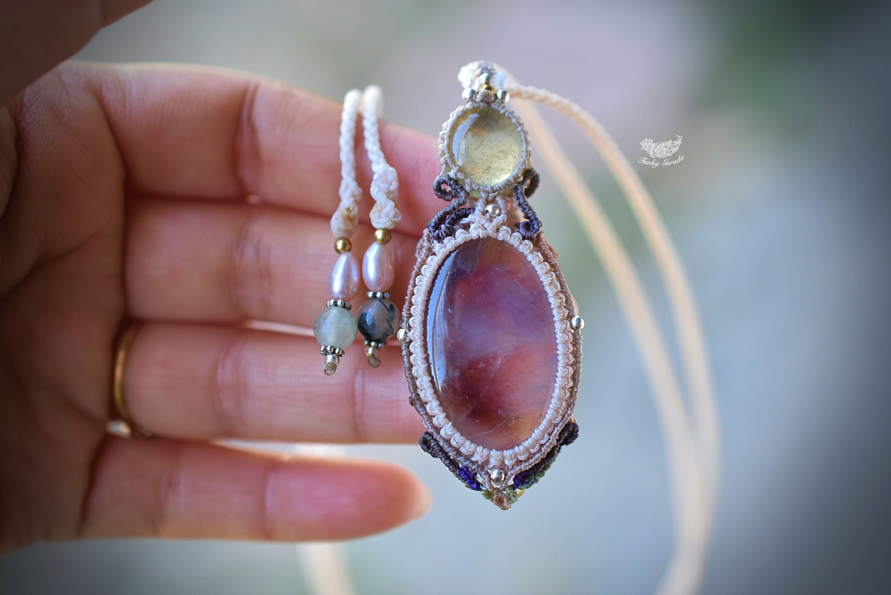 春の成長★エレスチャルアメジスト プレナイト マクラメネックレス1020