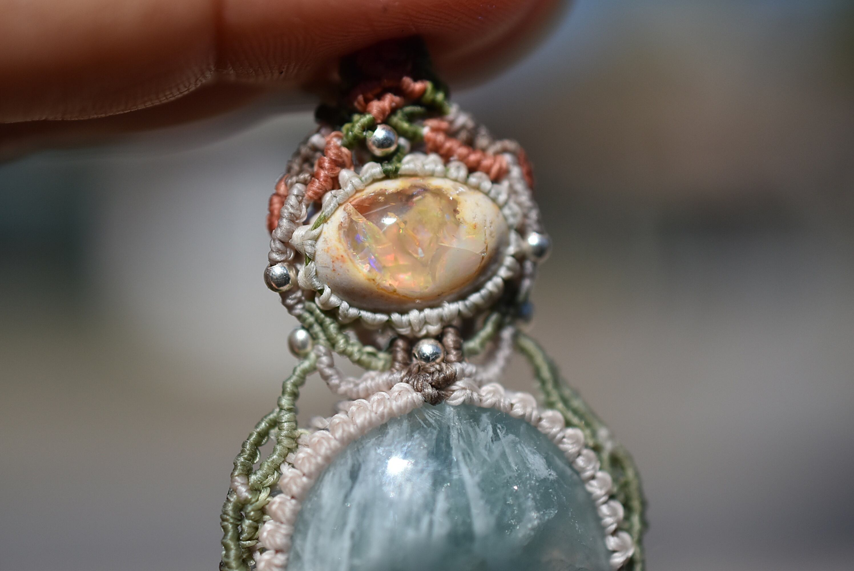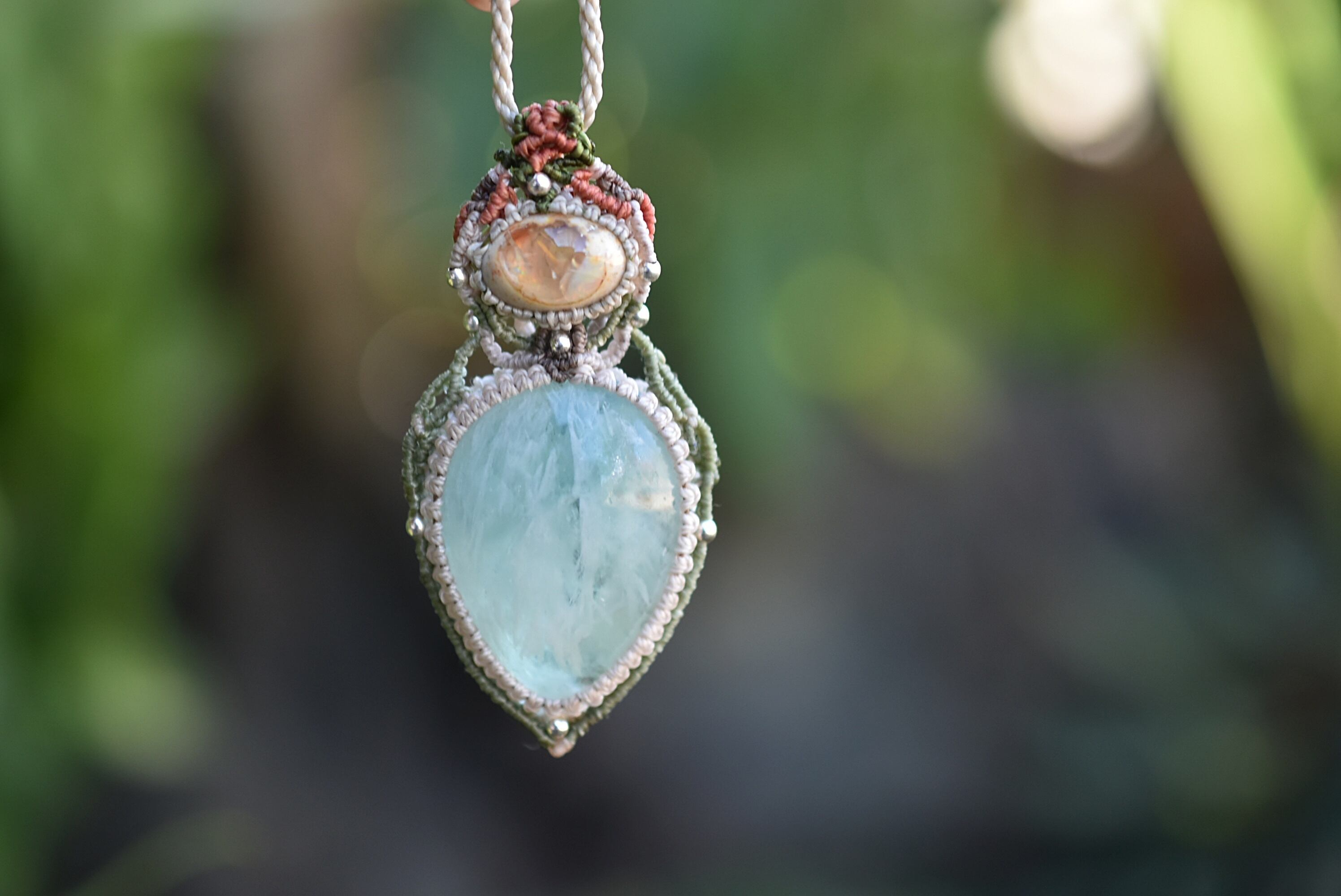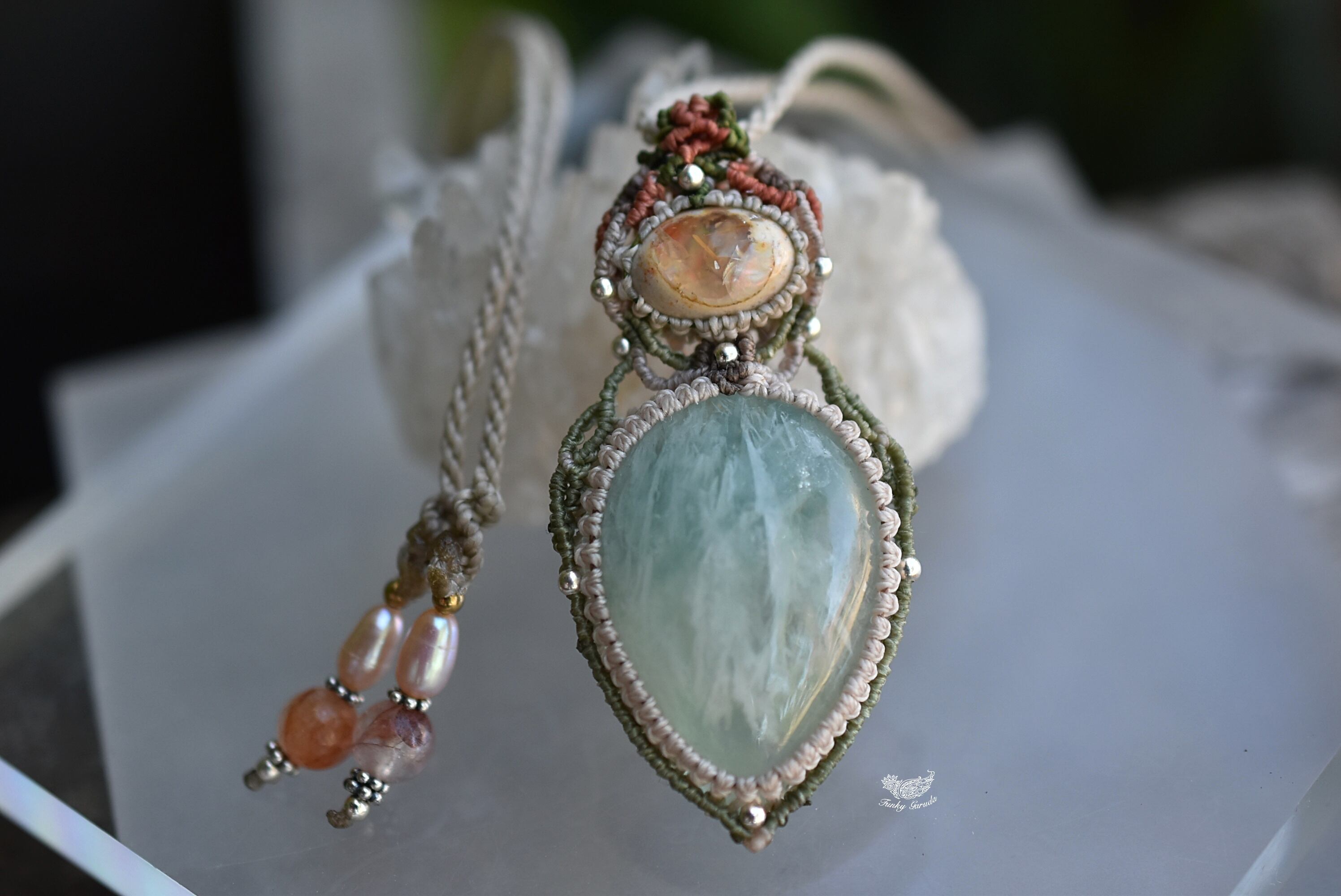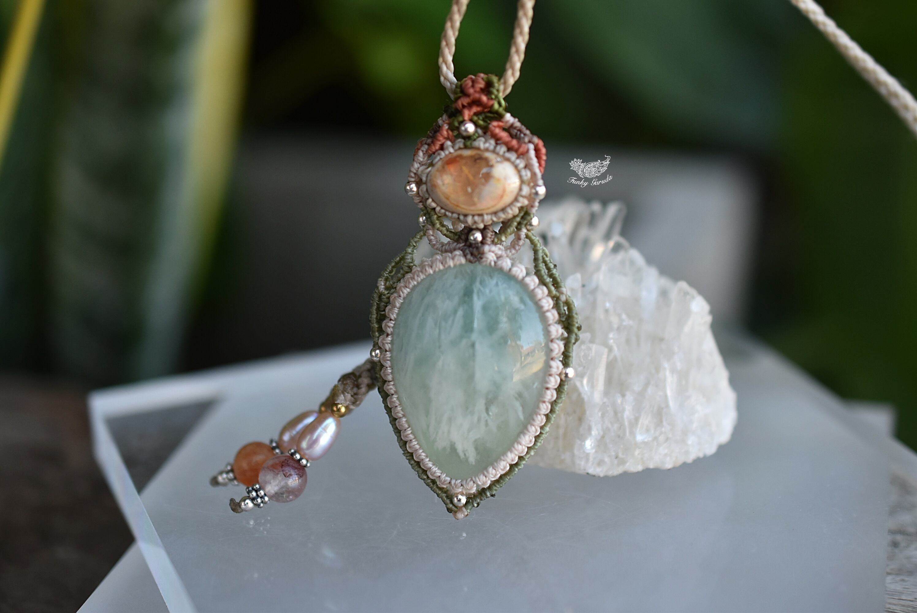 柿色の湖★カンテラオパール エンジェルフェザーフローライト マクラメネックレス1022
