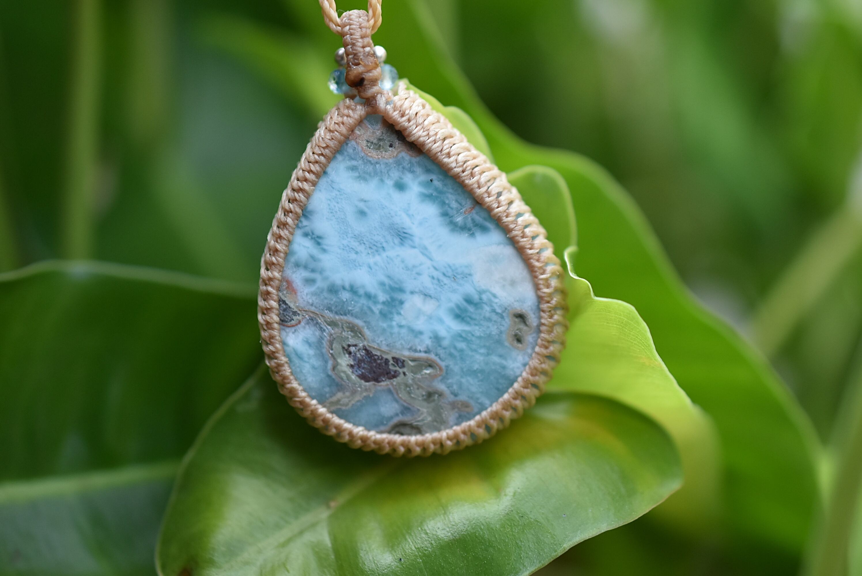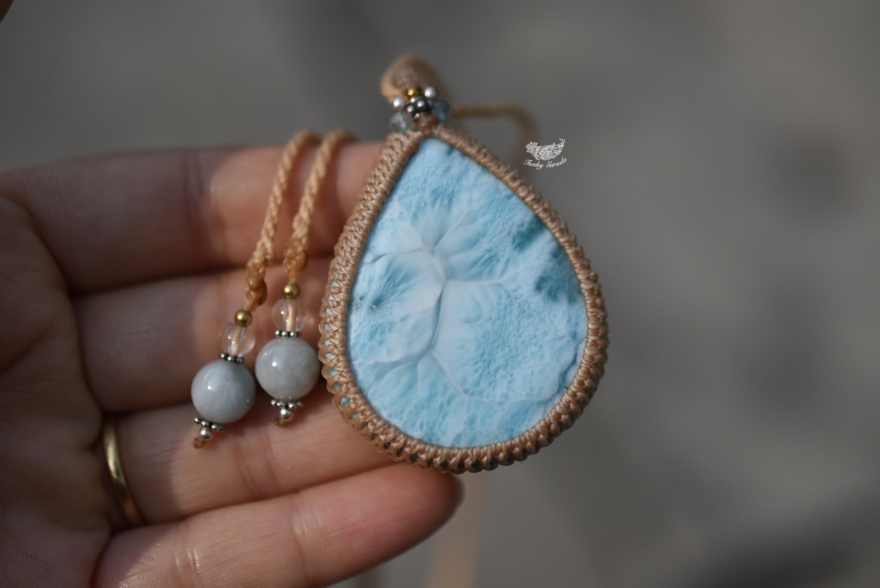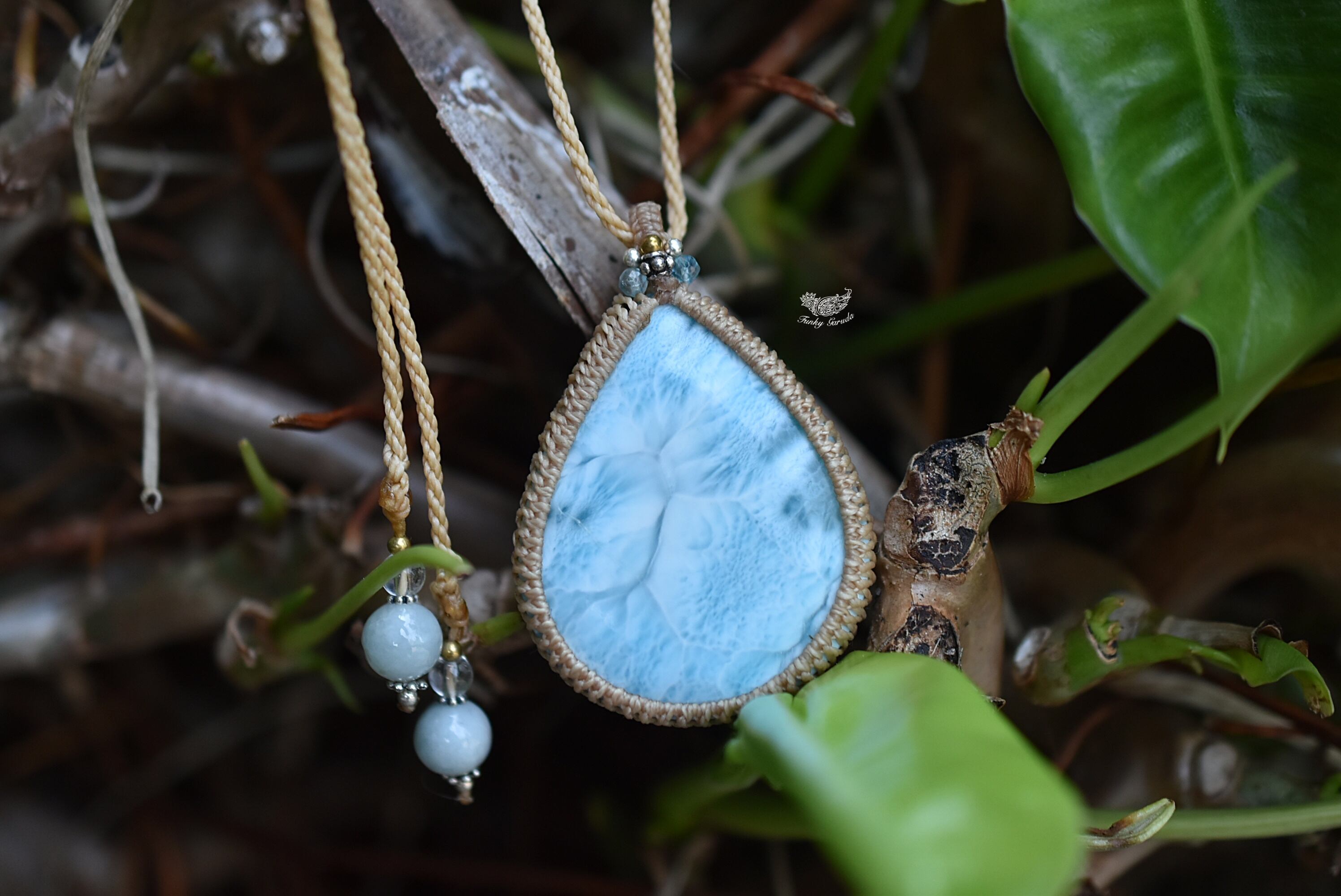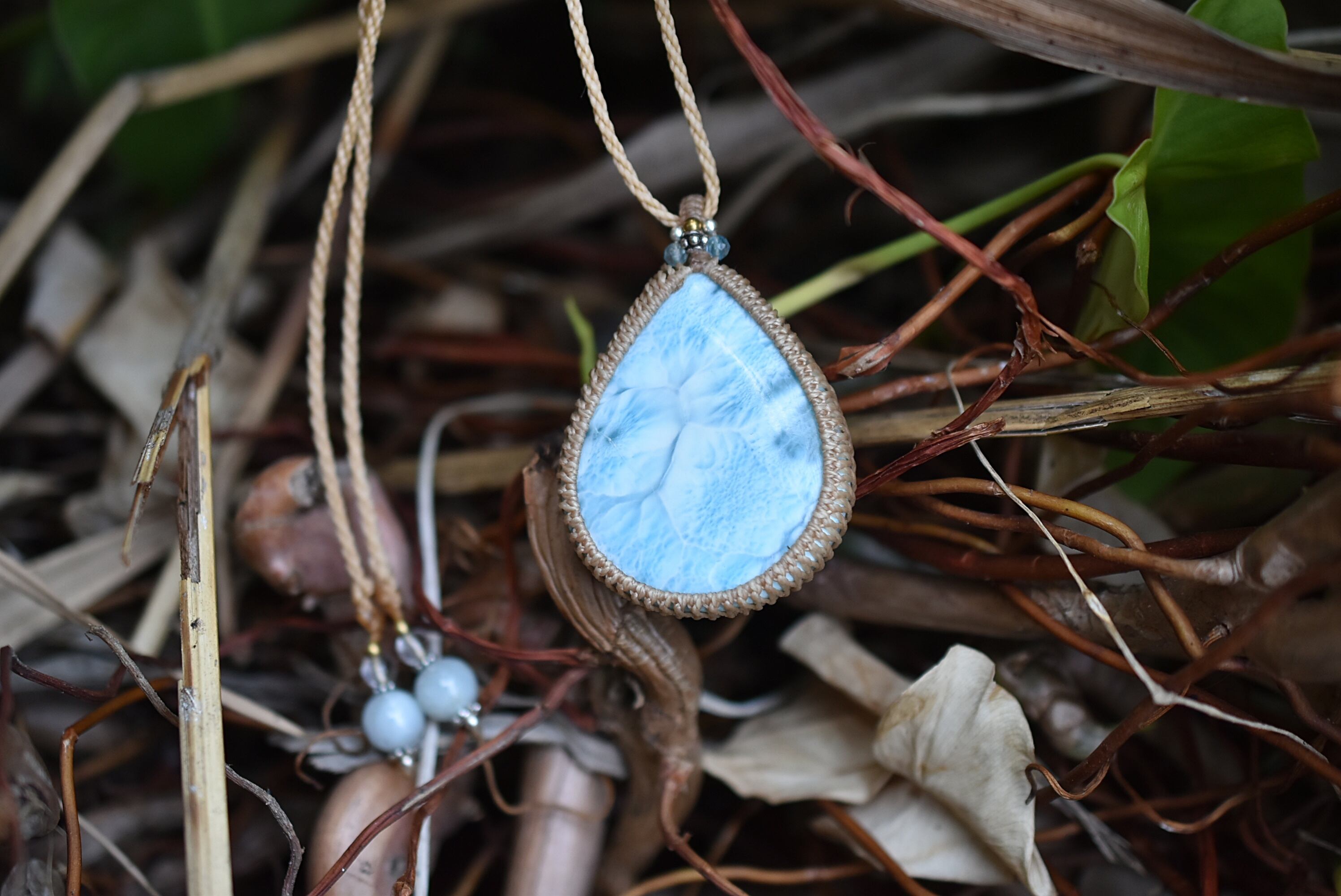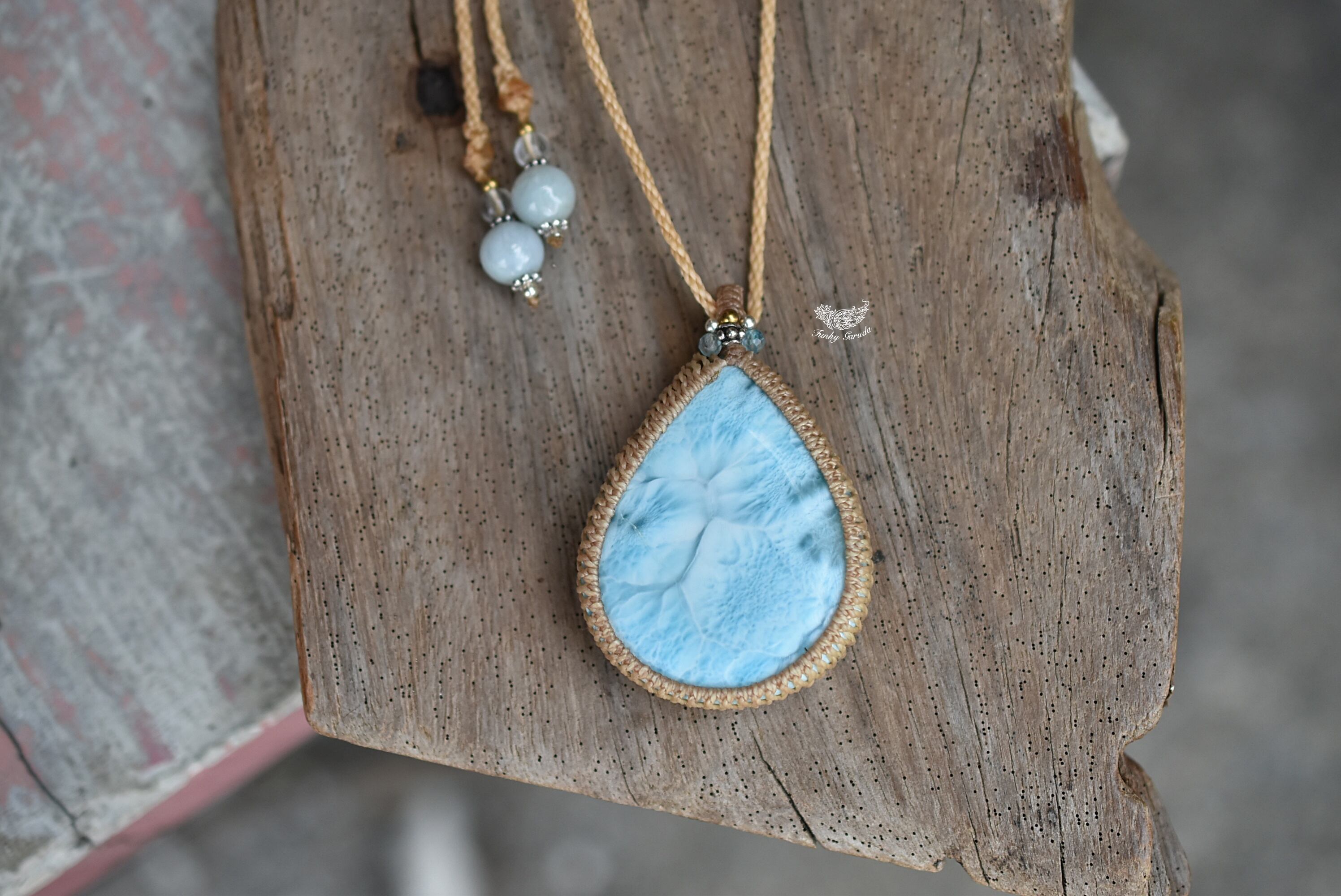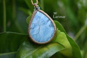 揺れる波★大粒★ラリマー マクラメネックレス1028