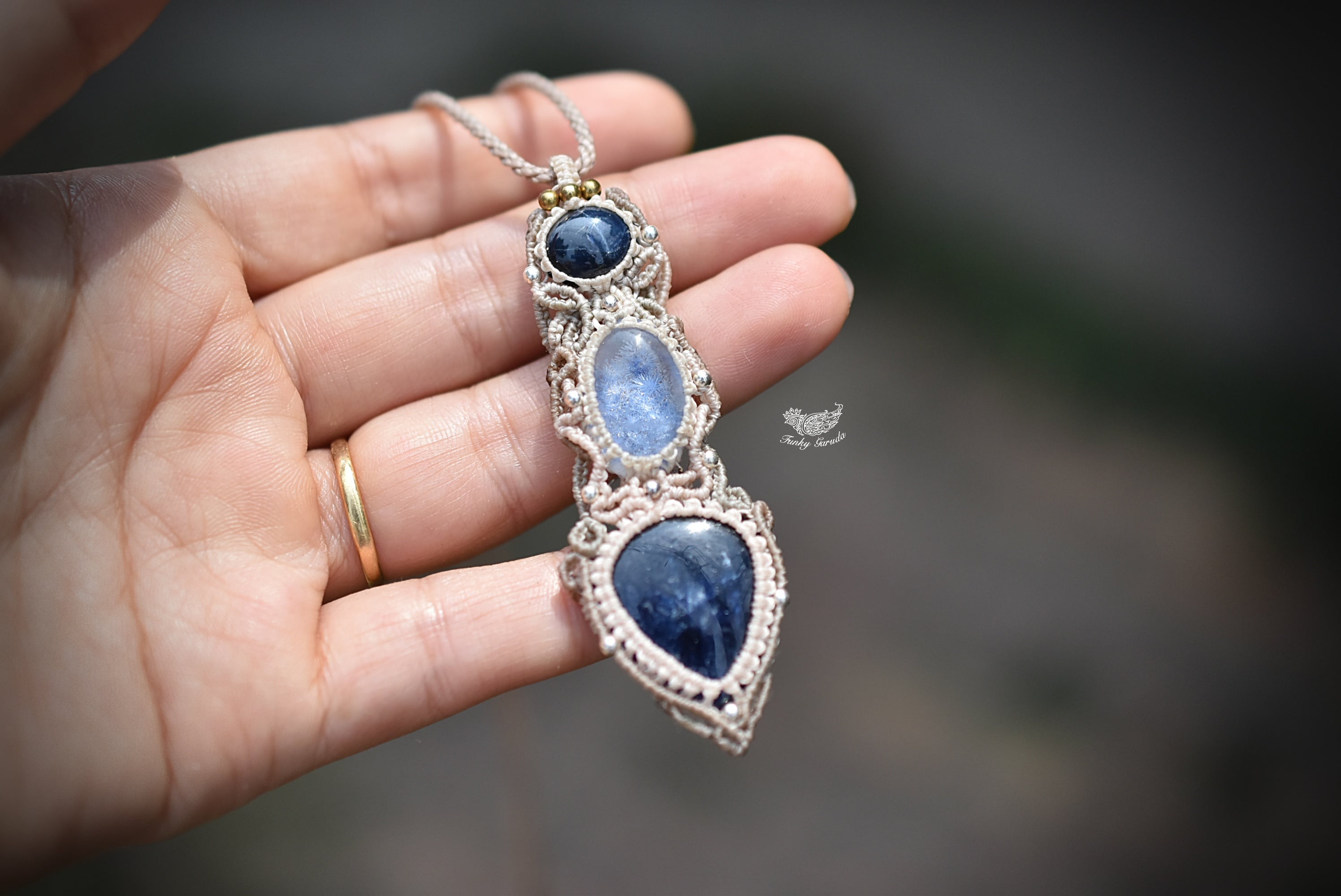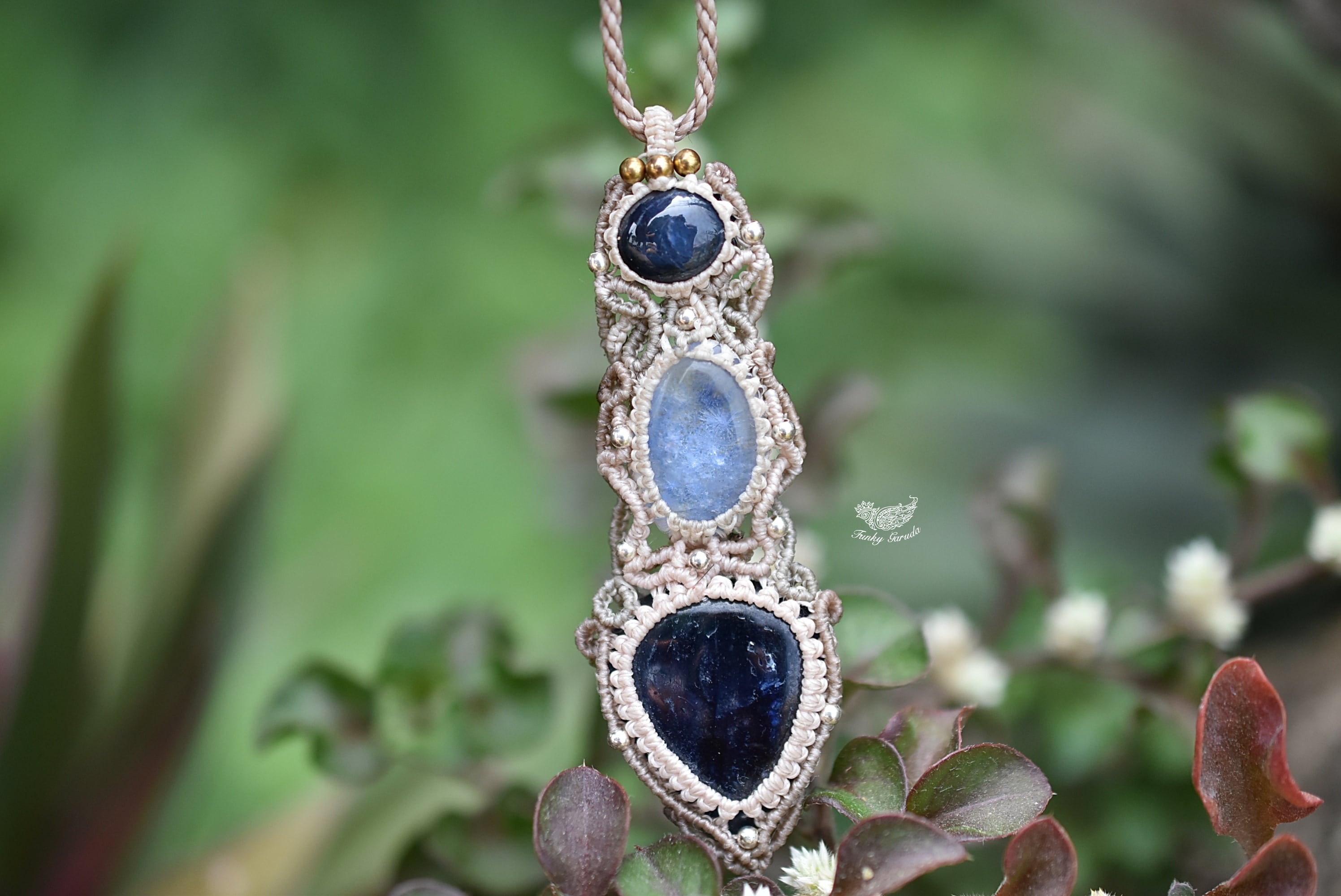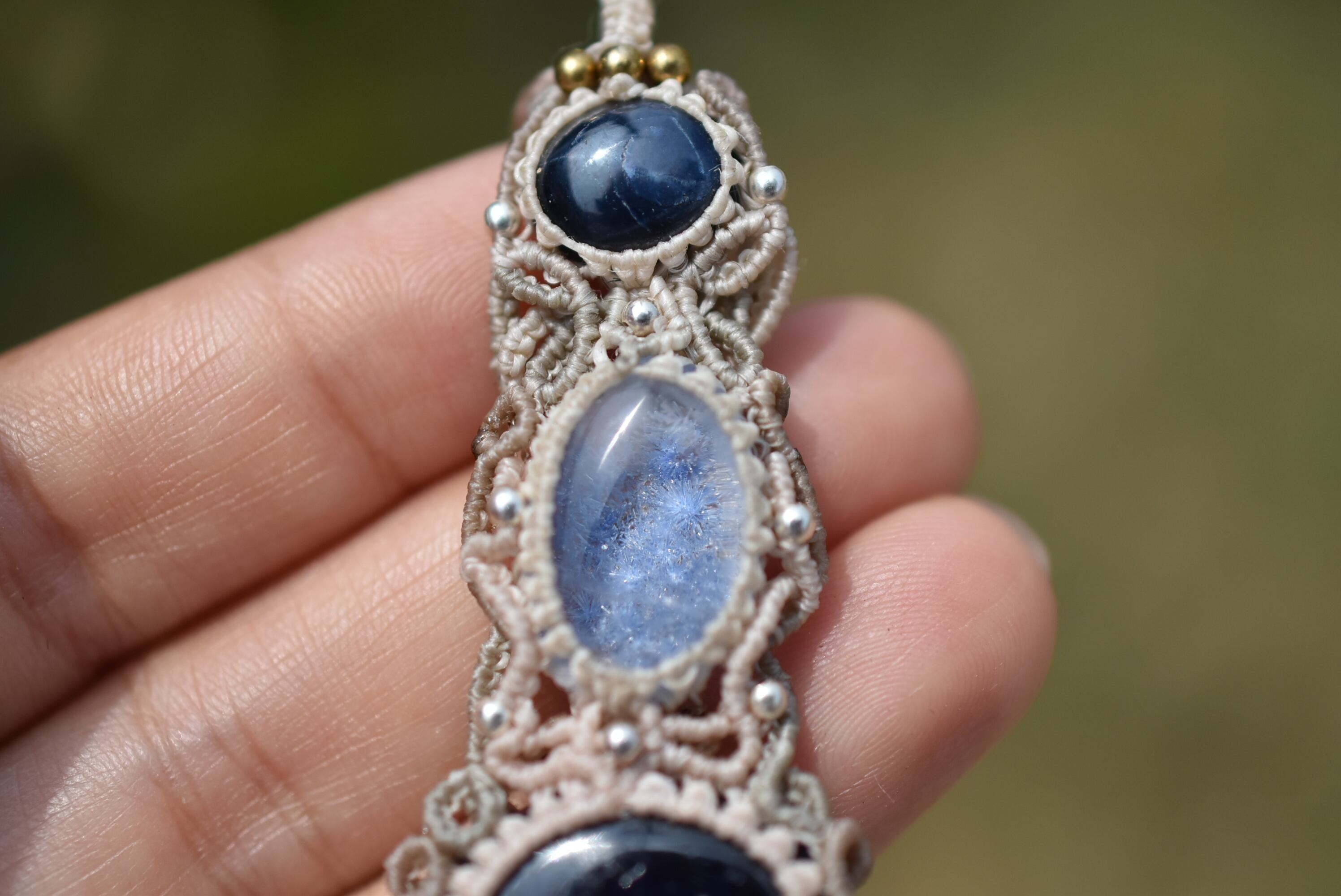 蒼運河と光★sappire デュモルチェライト マクラメネックレス1034