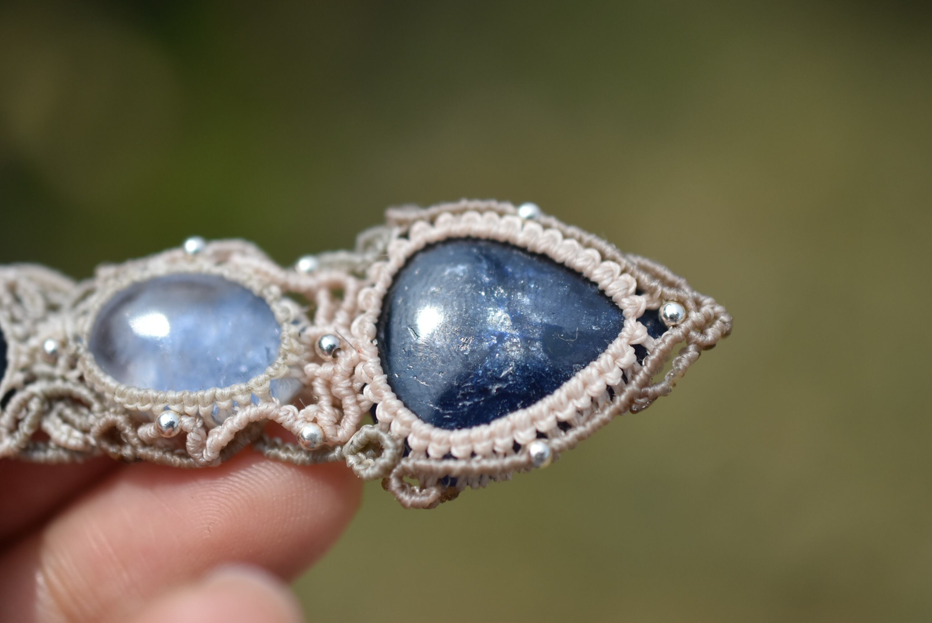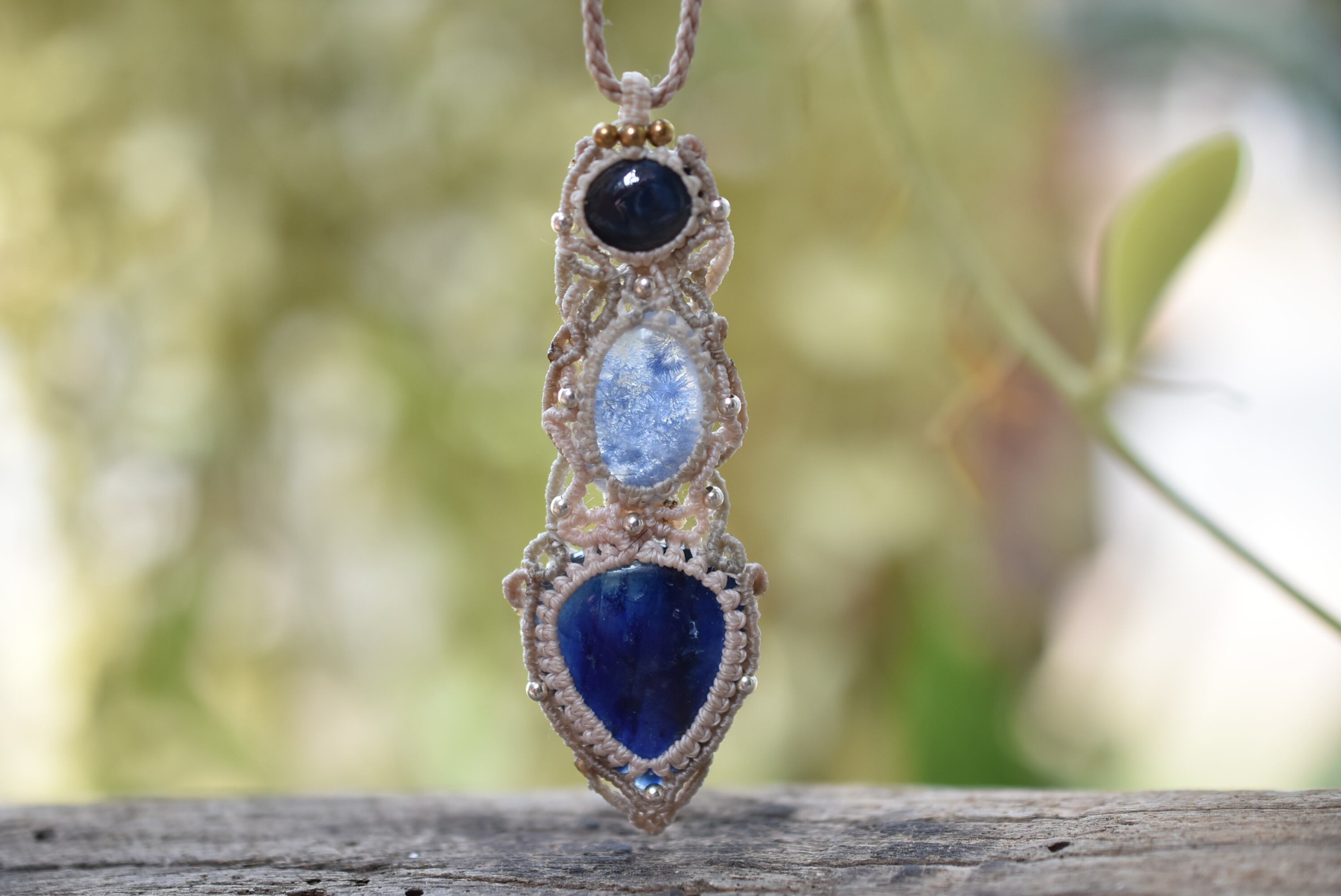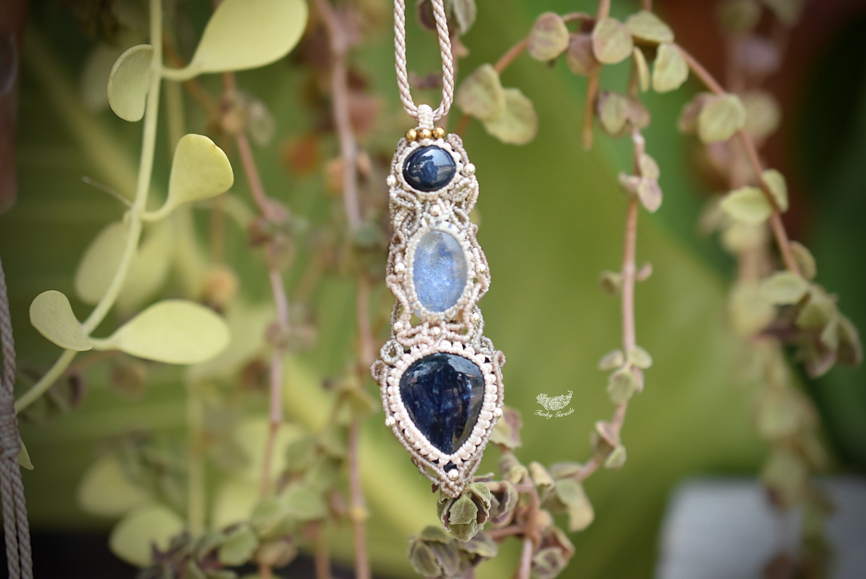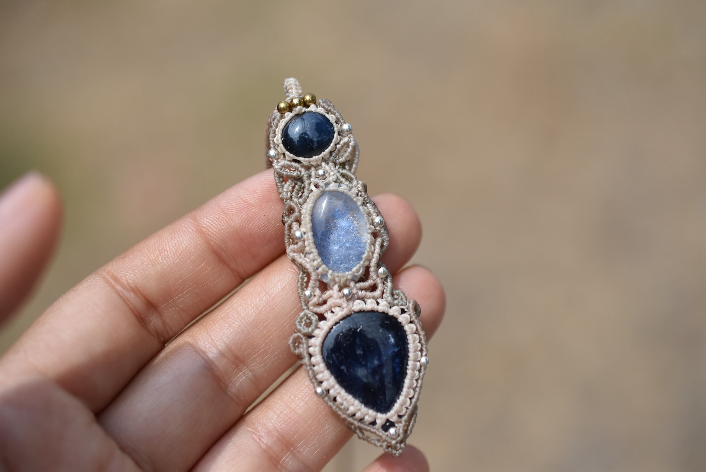 蒼運河と光★sappire デュモルチェライト マクラメネックレス1034