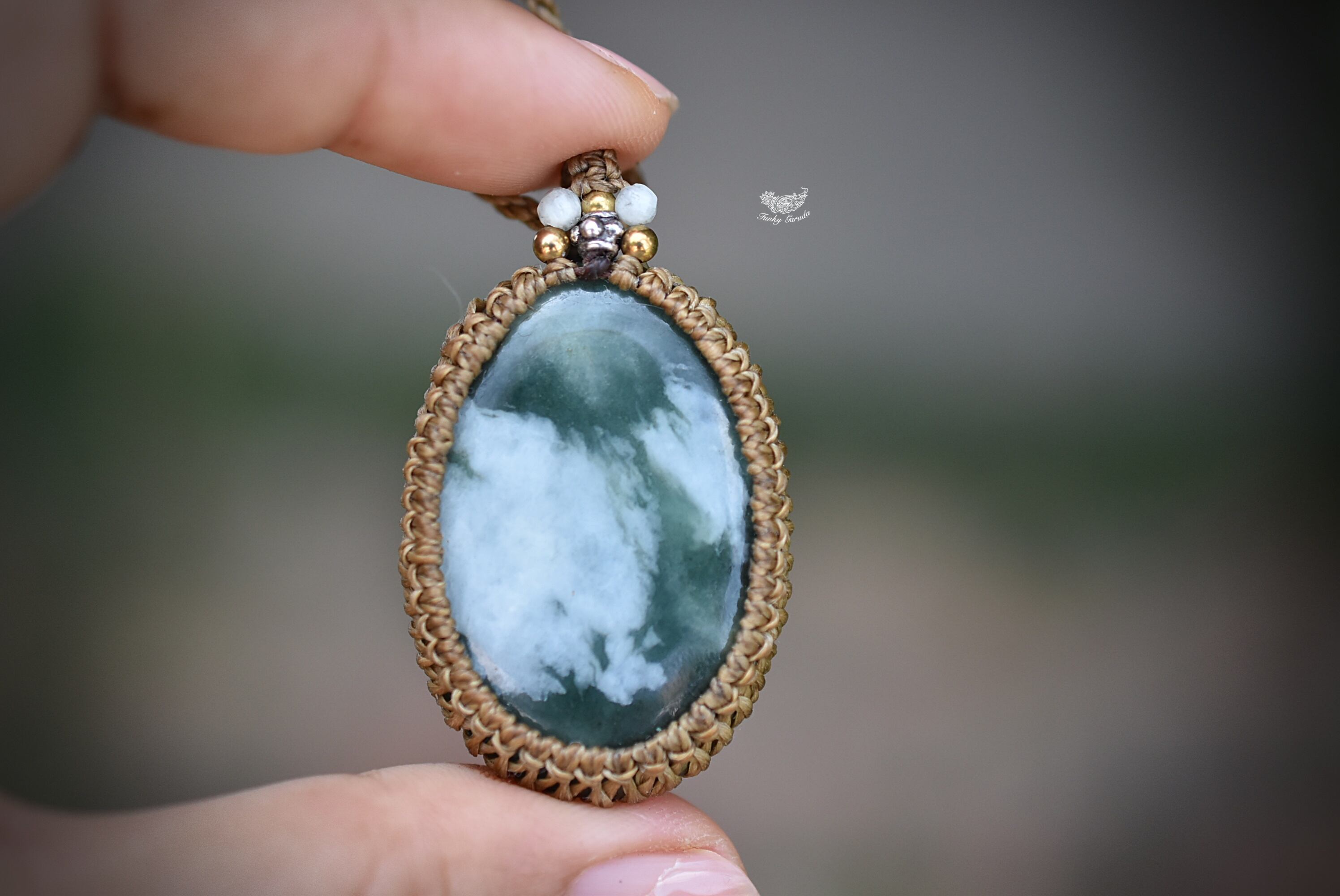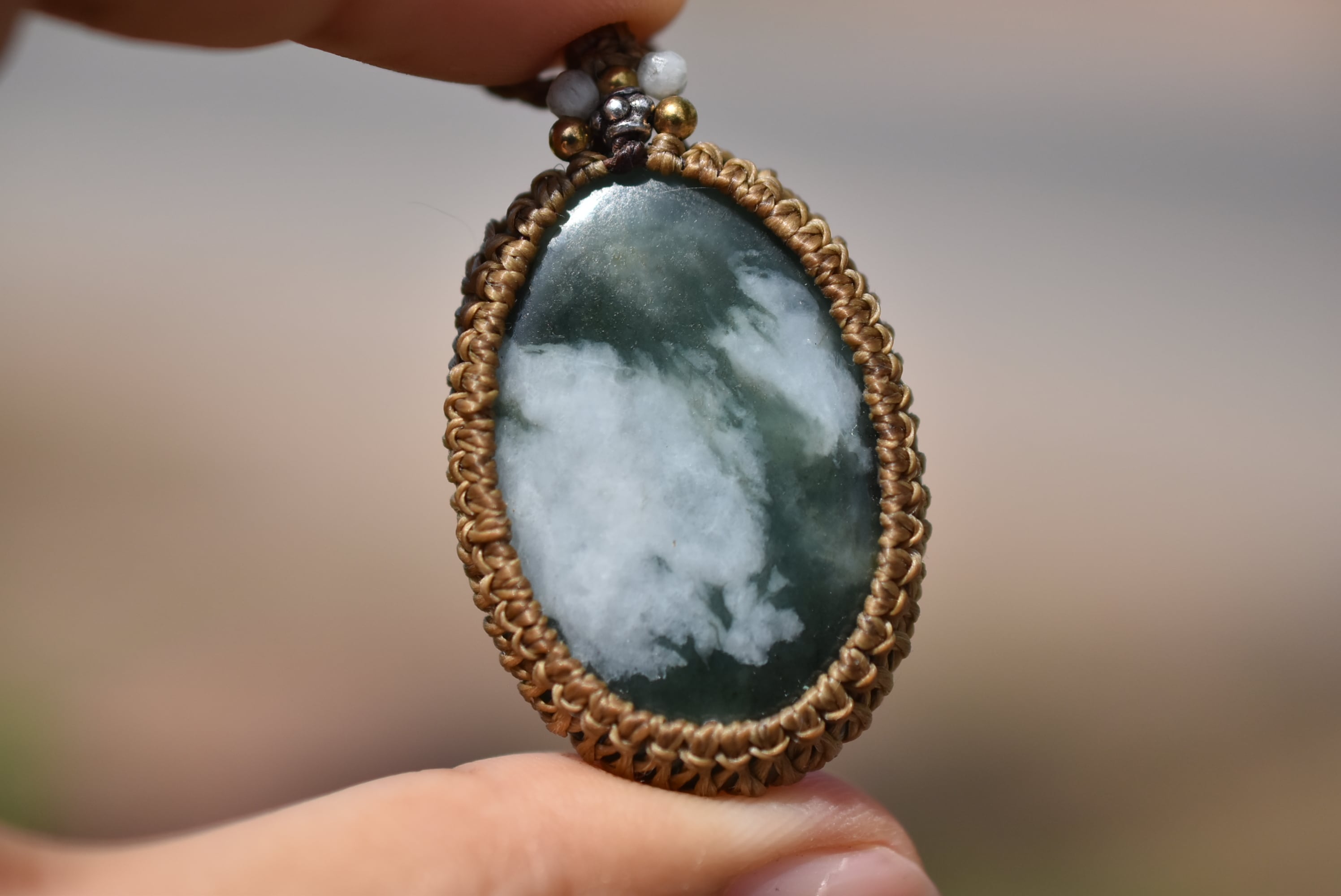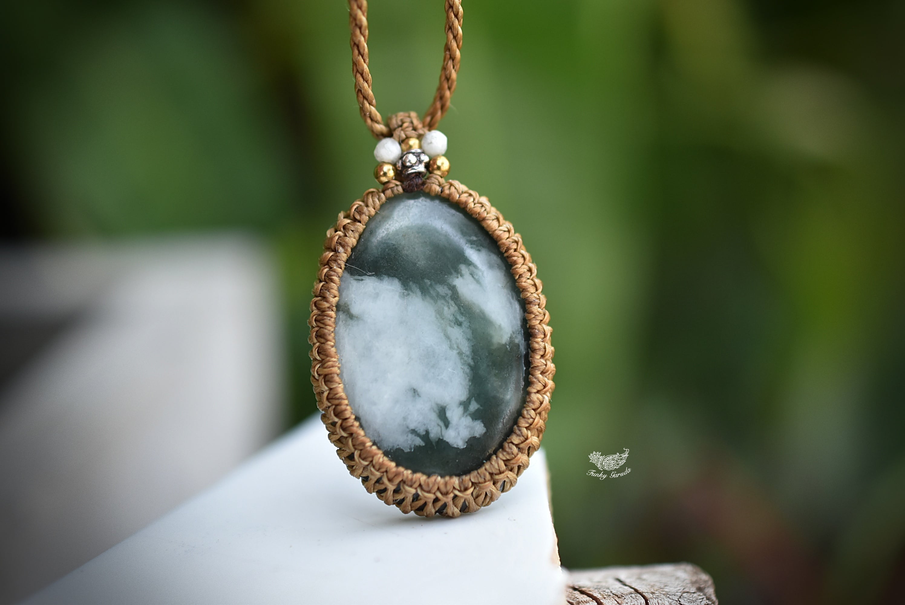 本翡翠★ミャンマー翡翠★マクラメネックレス1036