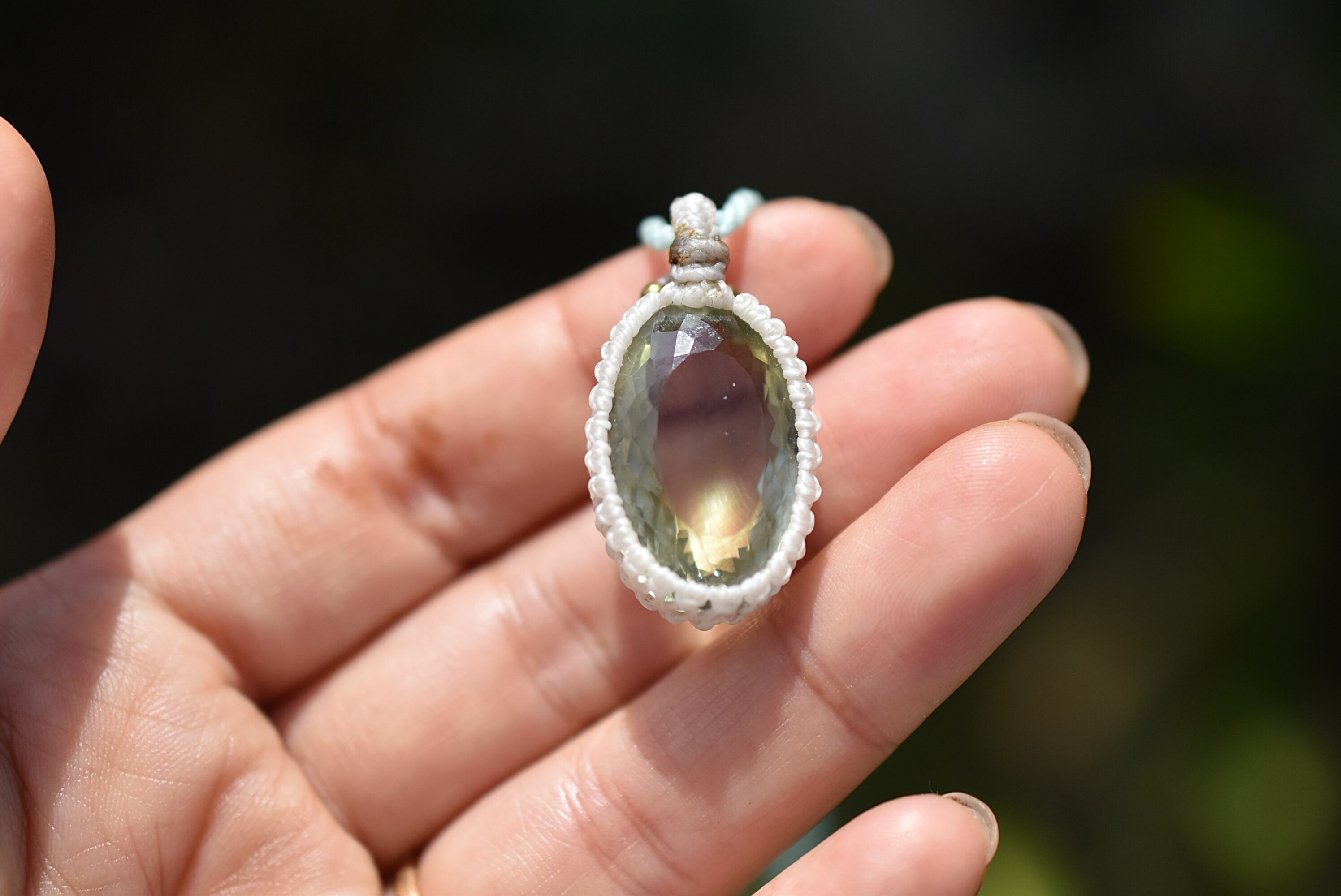 ファセットカット29 ctプラシオライト マクラメネックレス1038