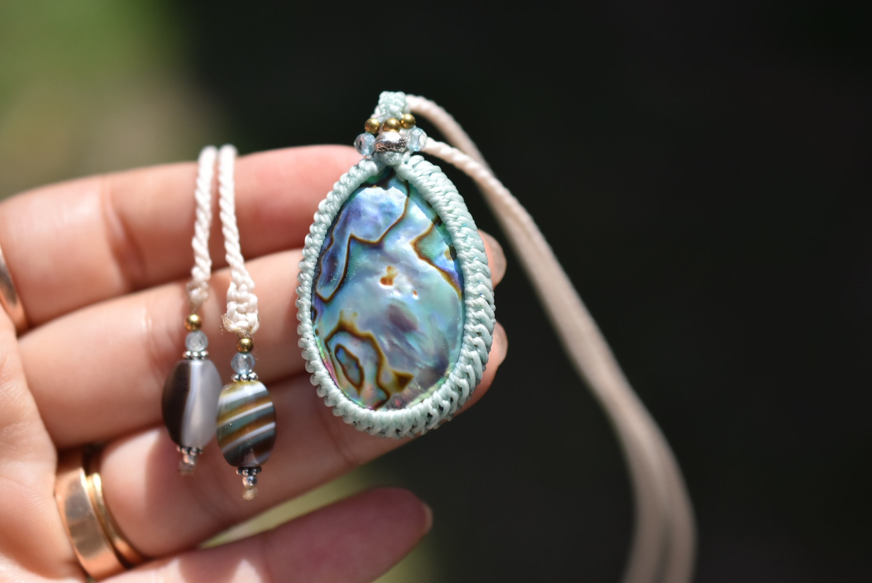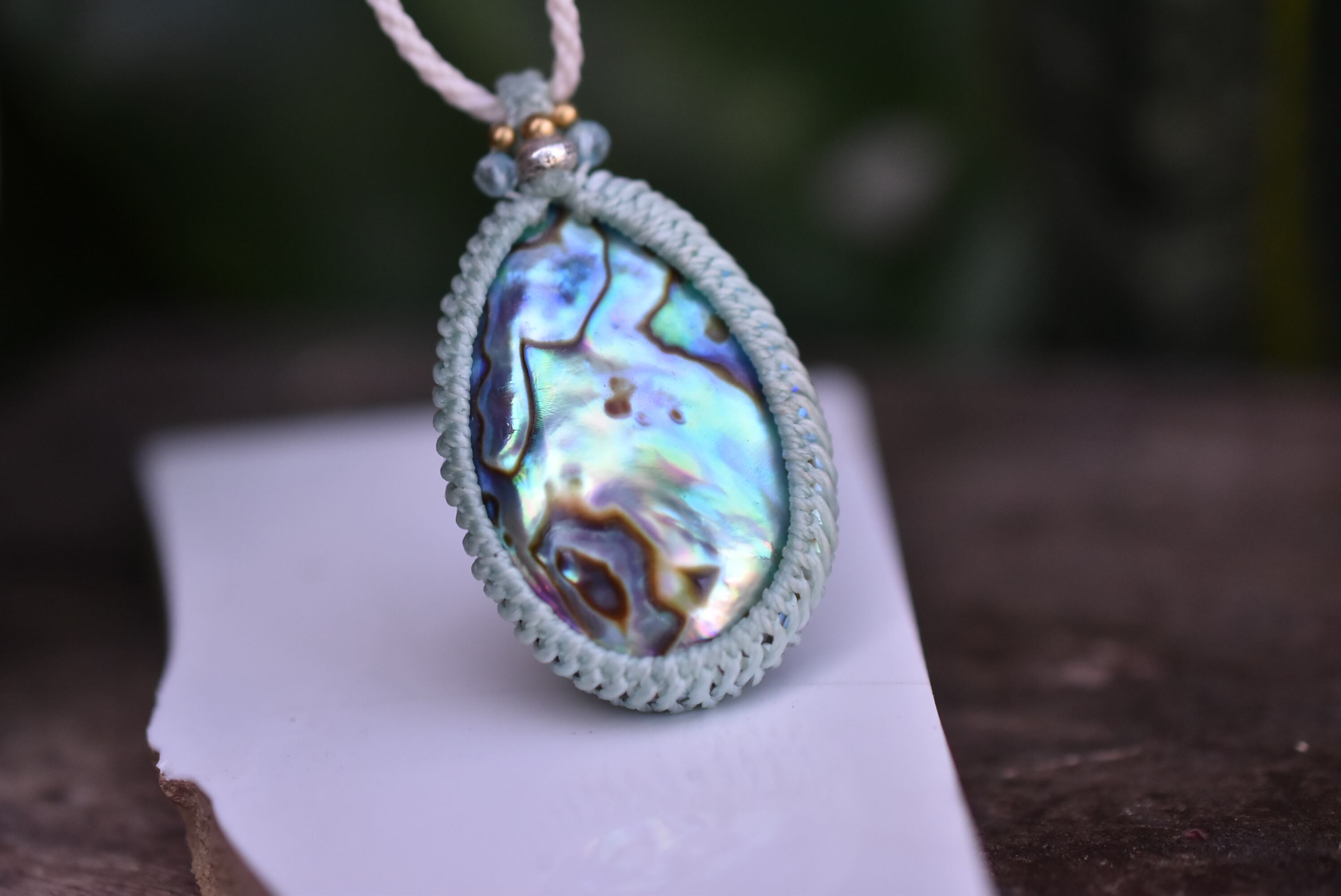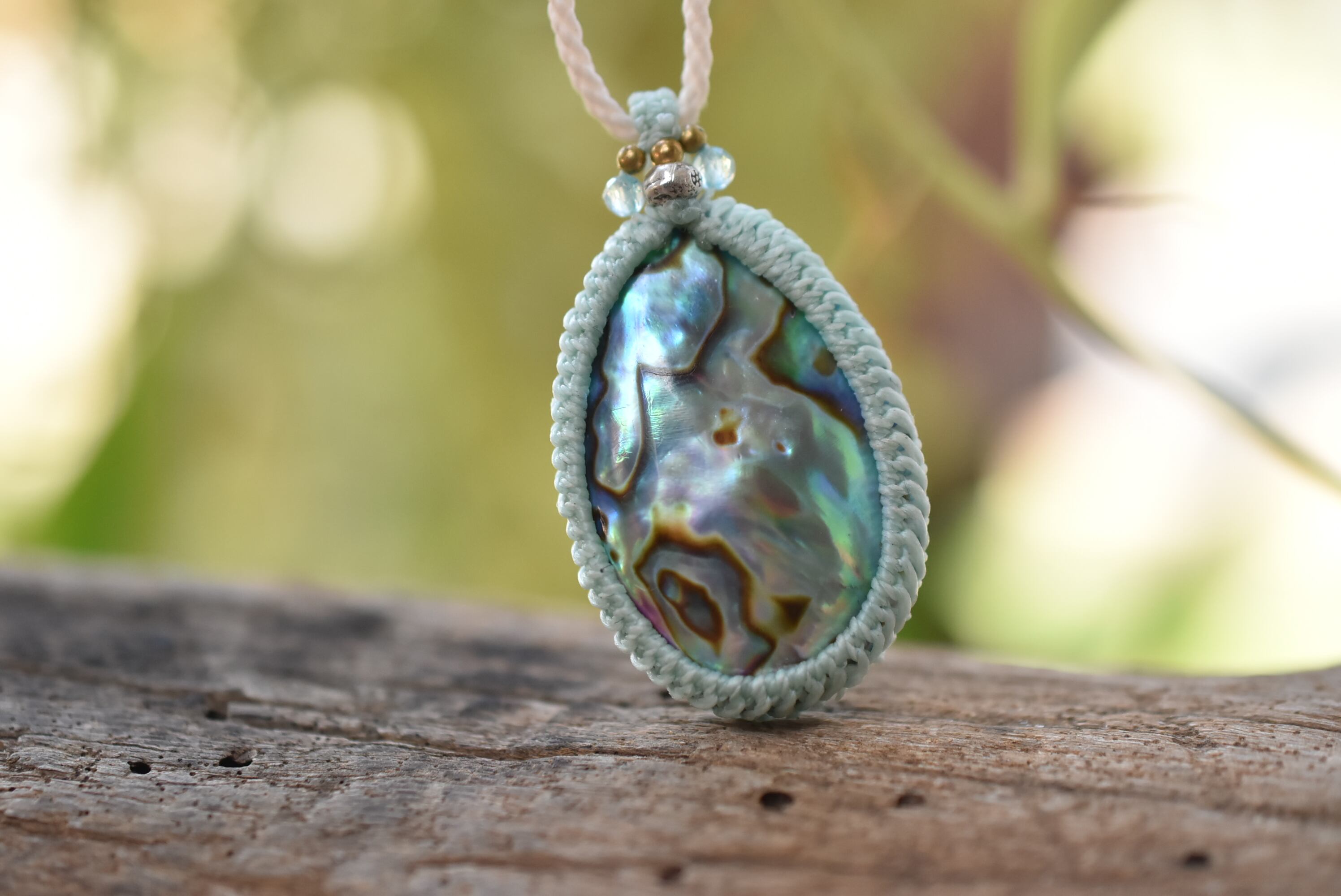 虹色★パワー★アバロンシェル マクラメネックレス1047
