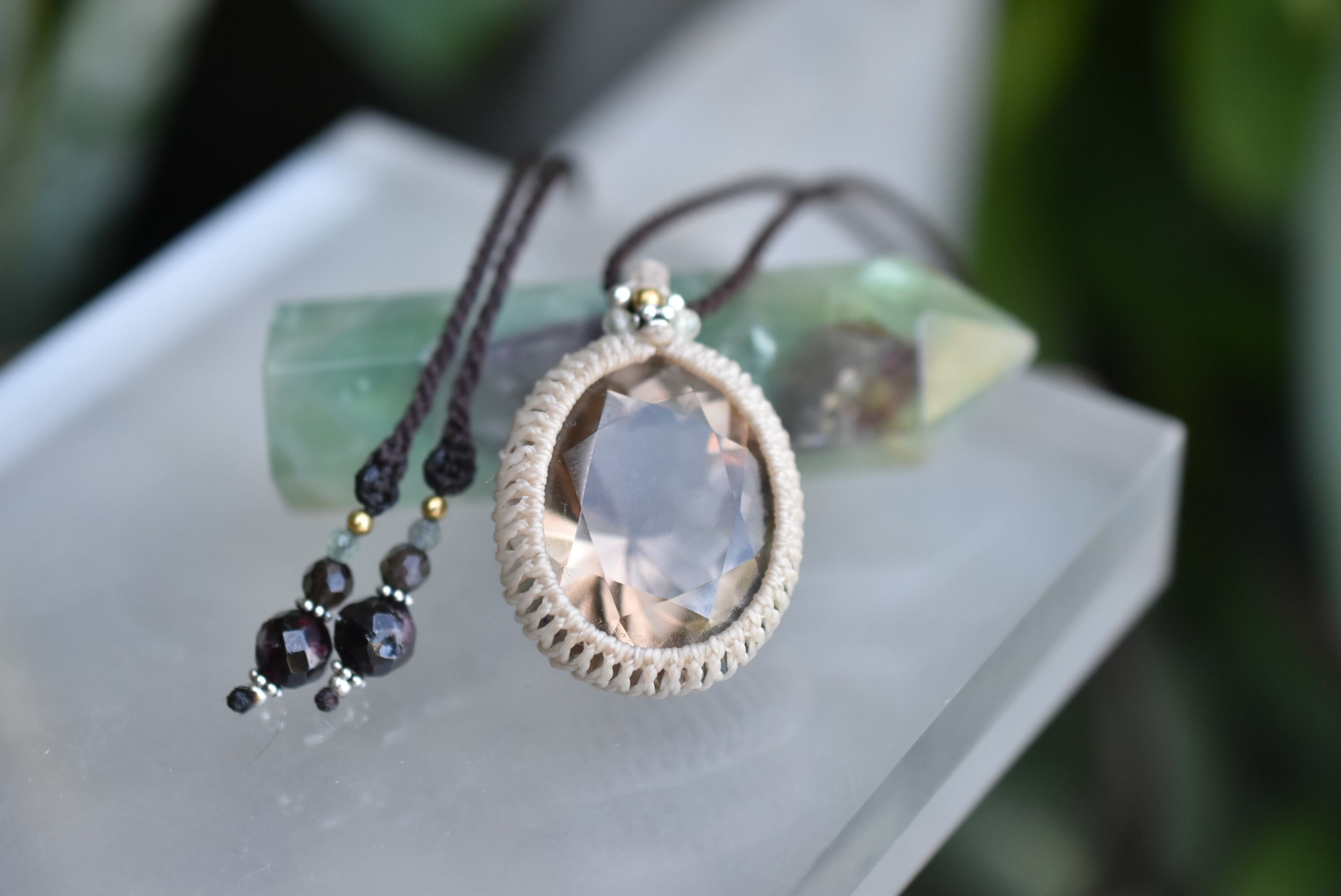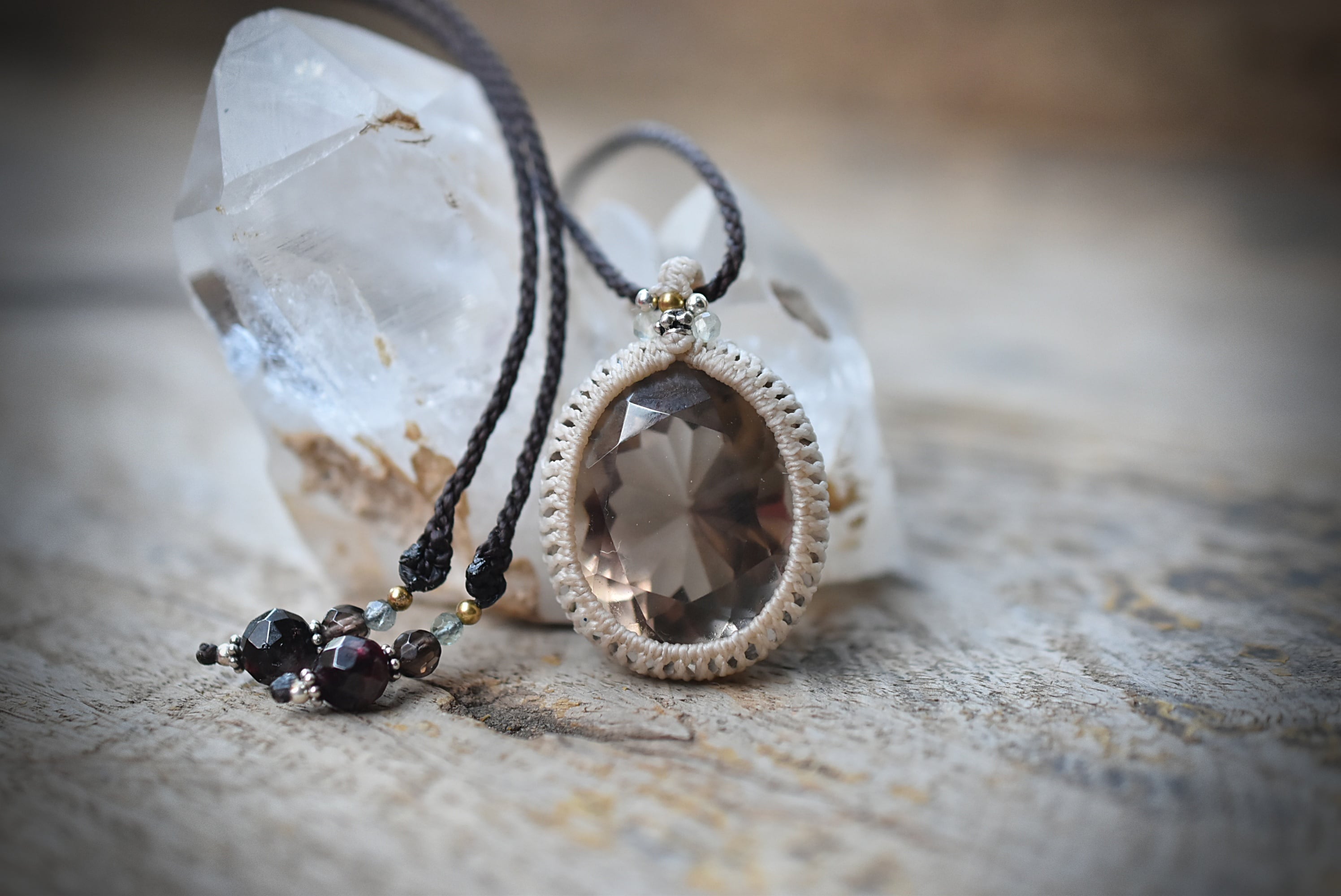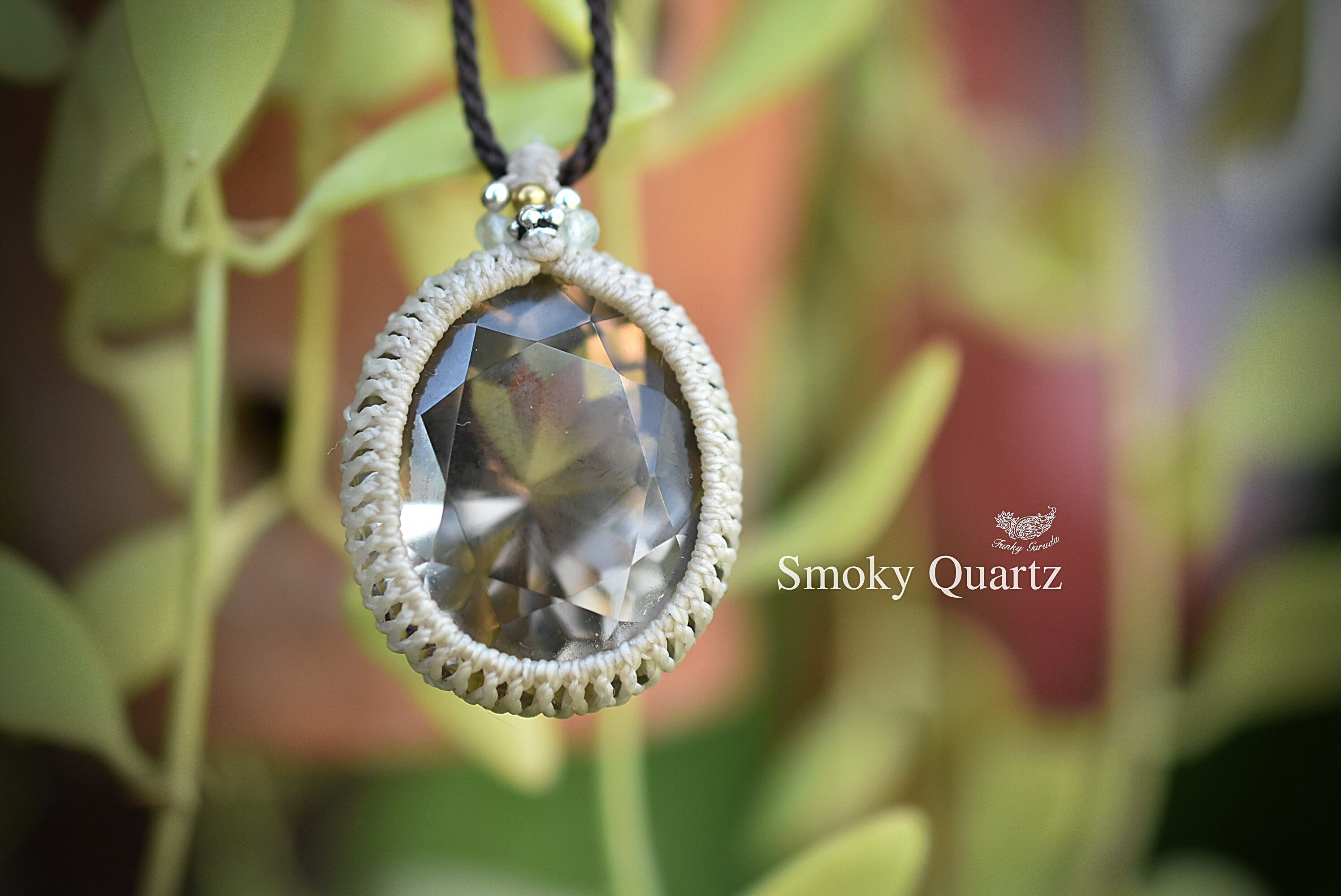 宝石ファセットカット★スモーキークォーツ マクラメネックレス1049
