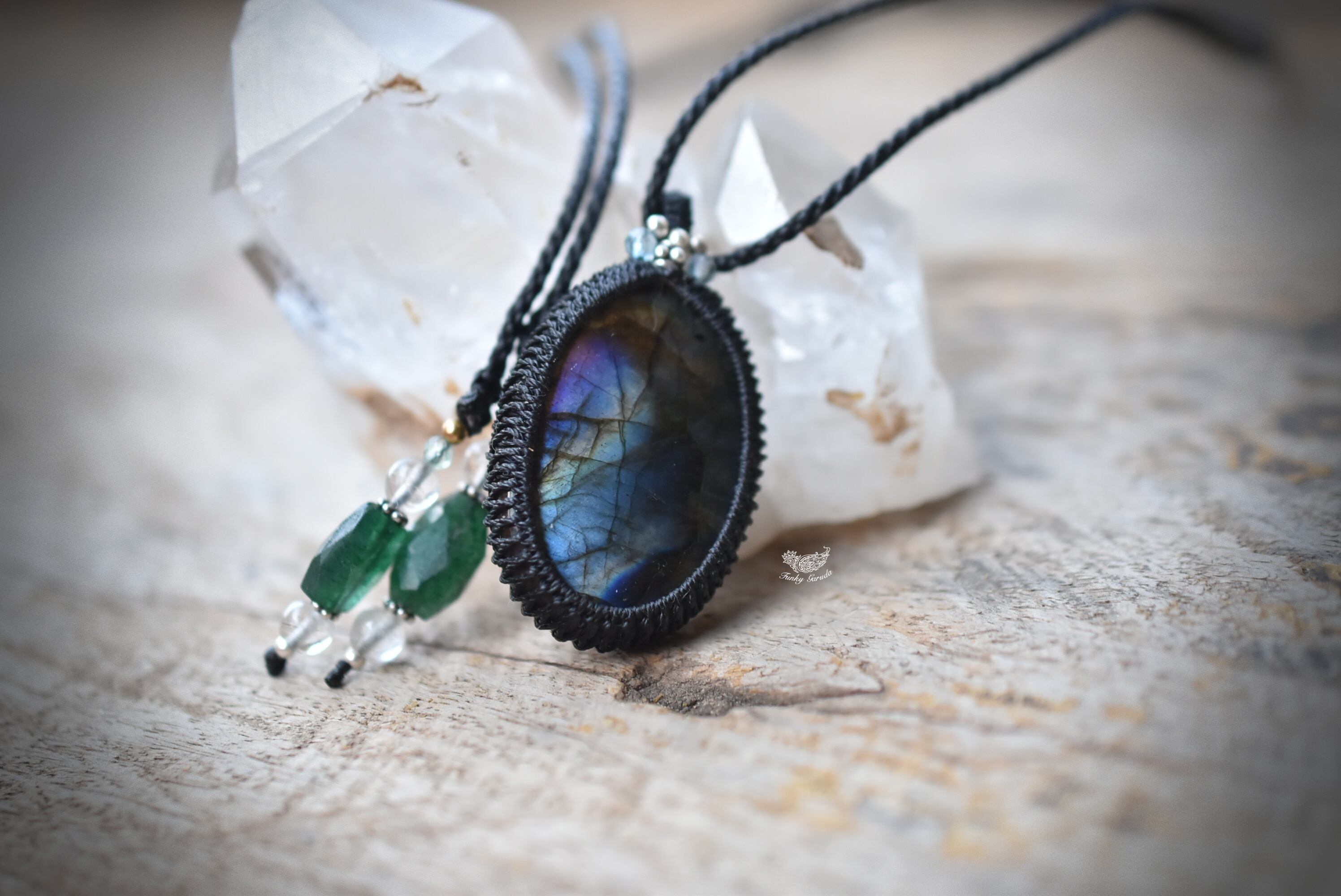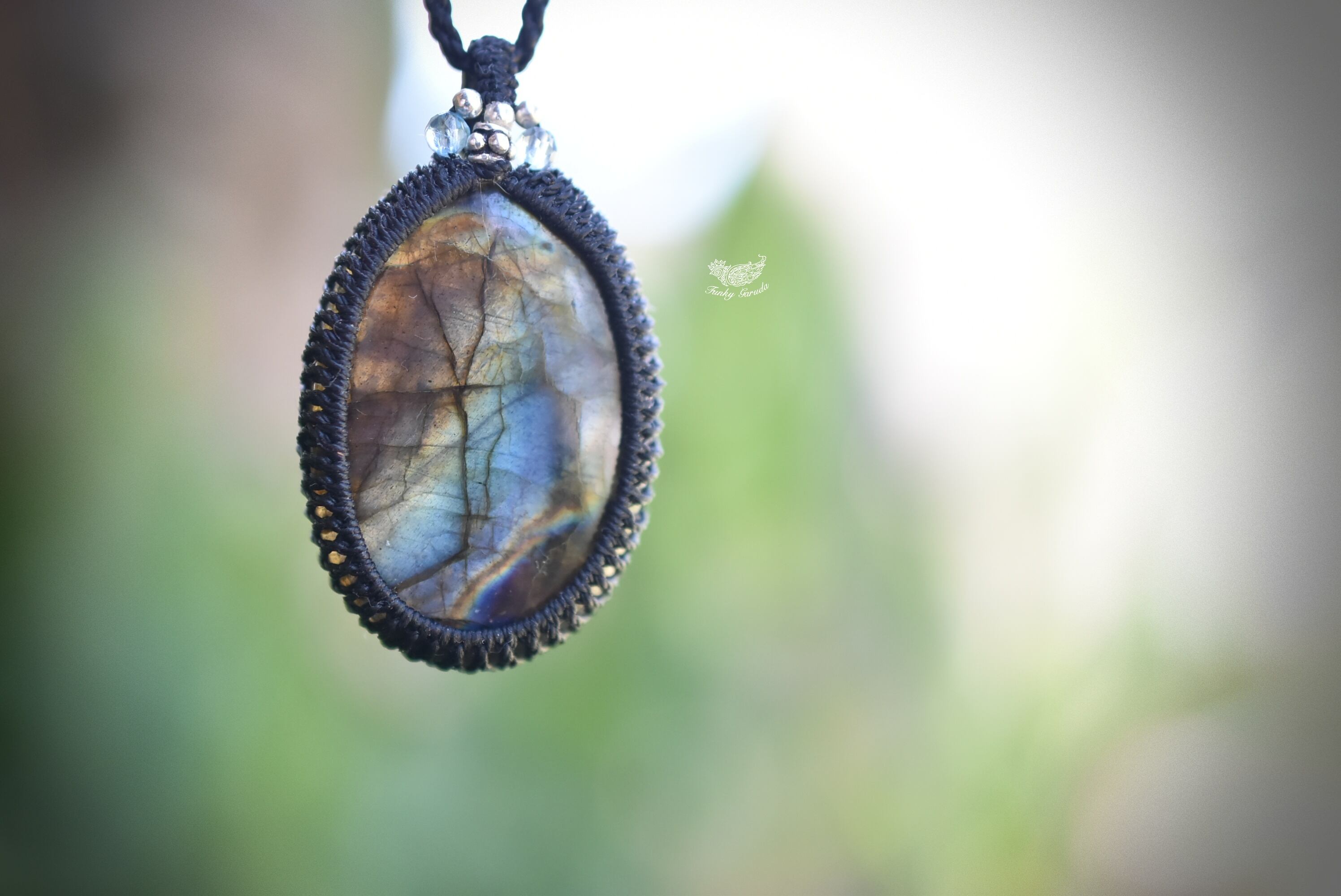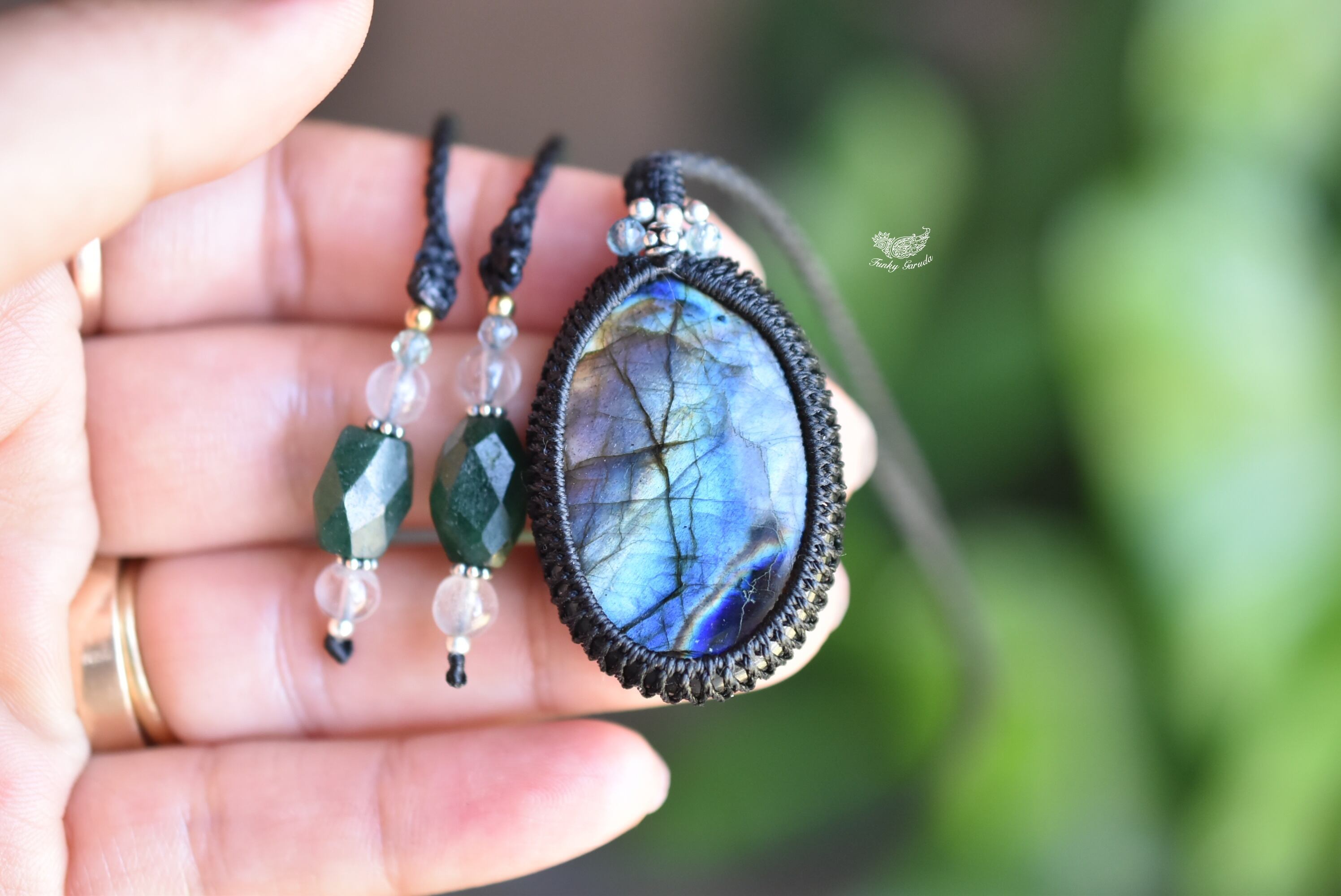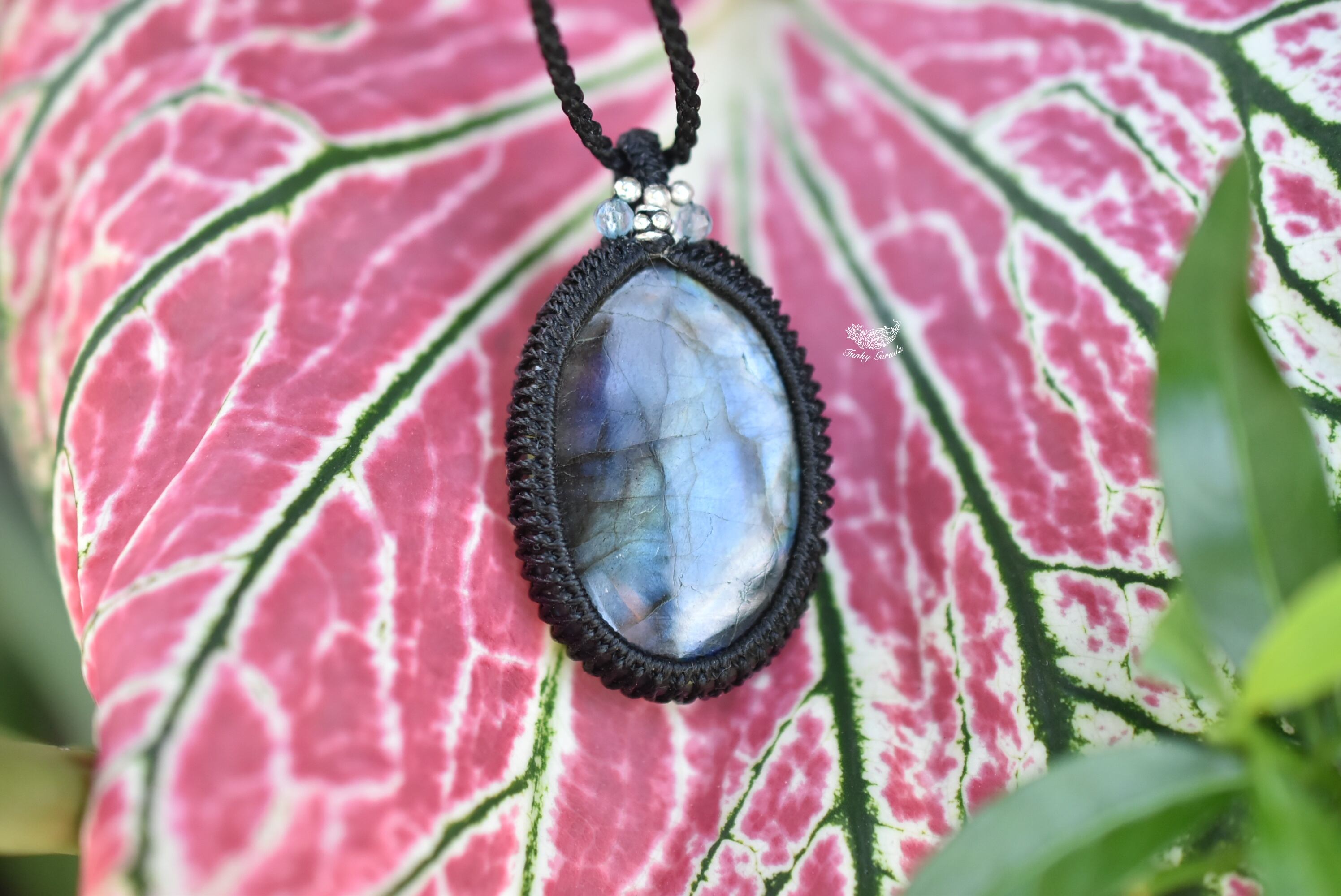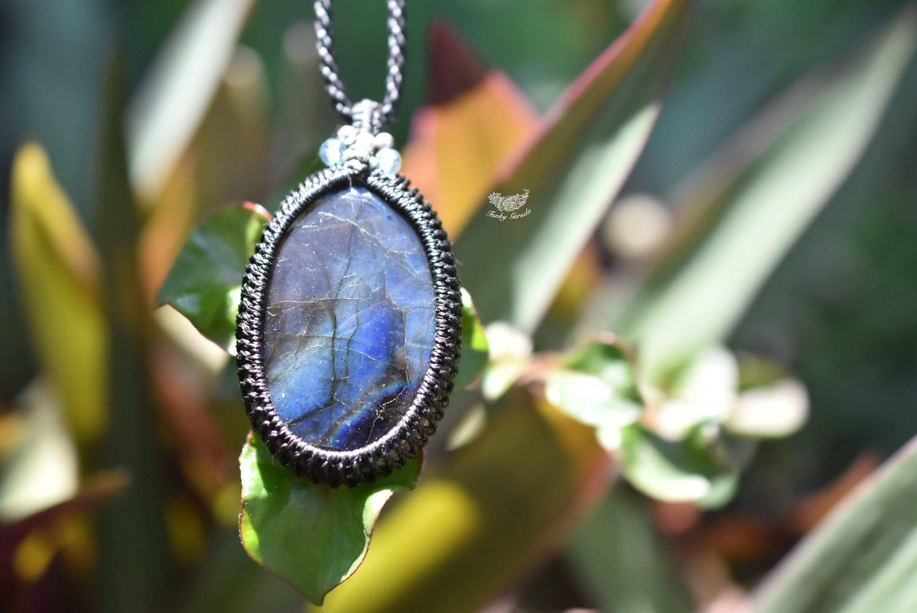 紫と青★マルチカラーラブラドライト マクラメネックレス1051