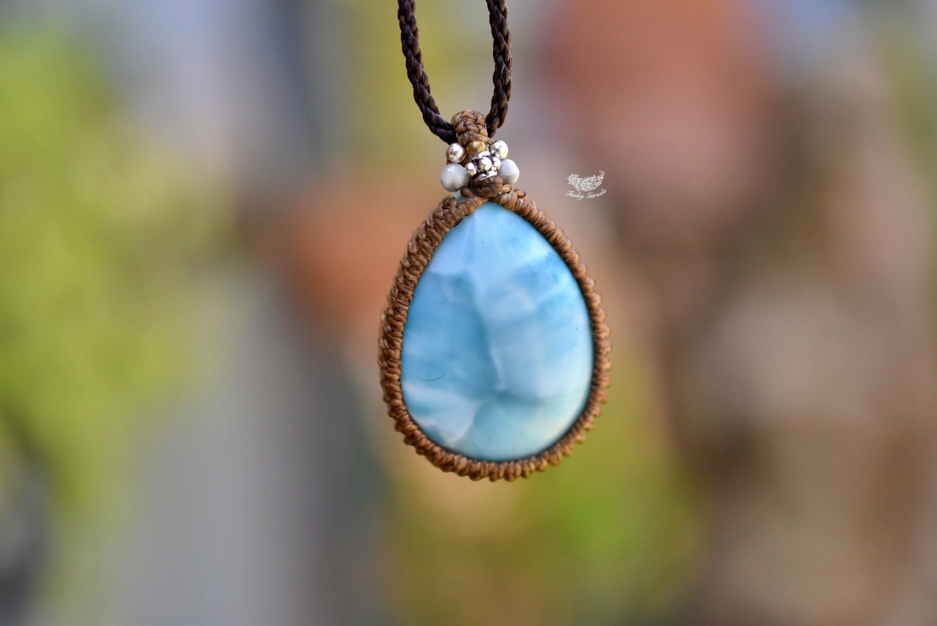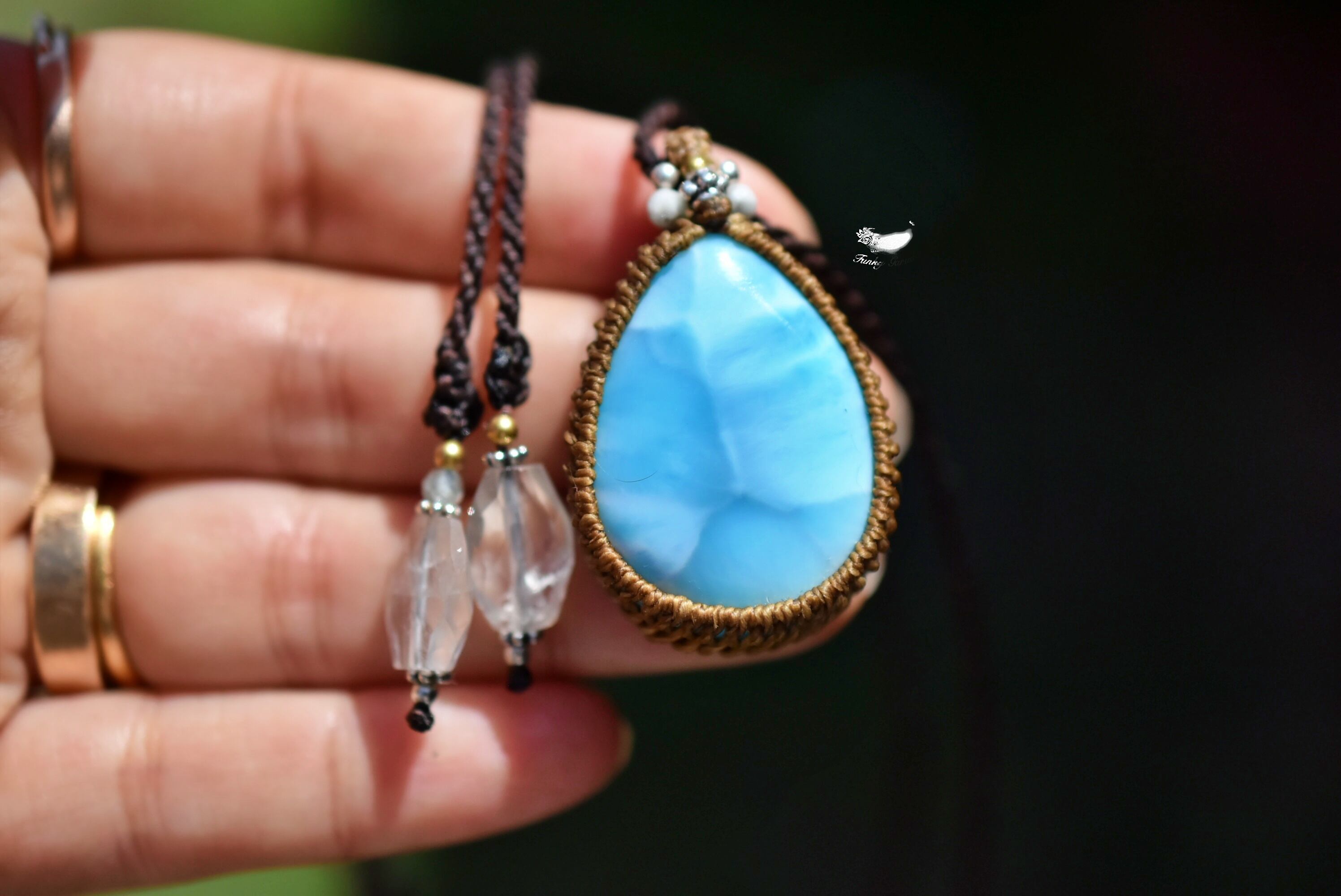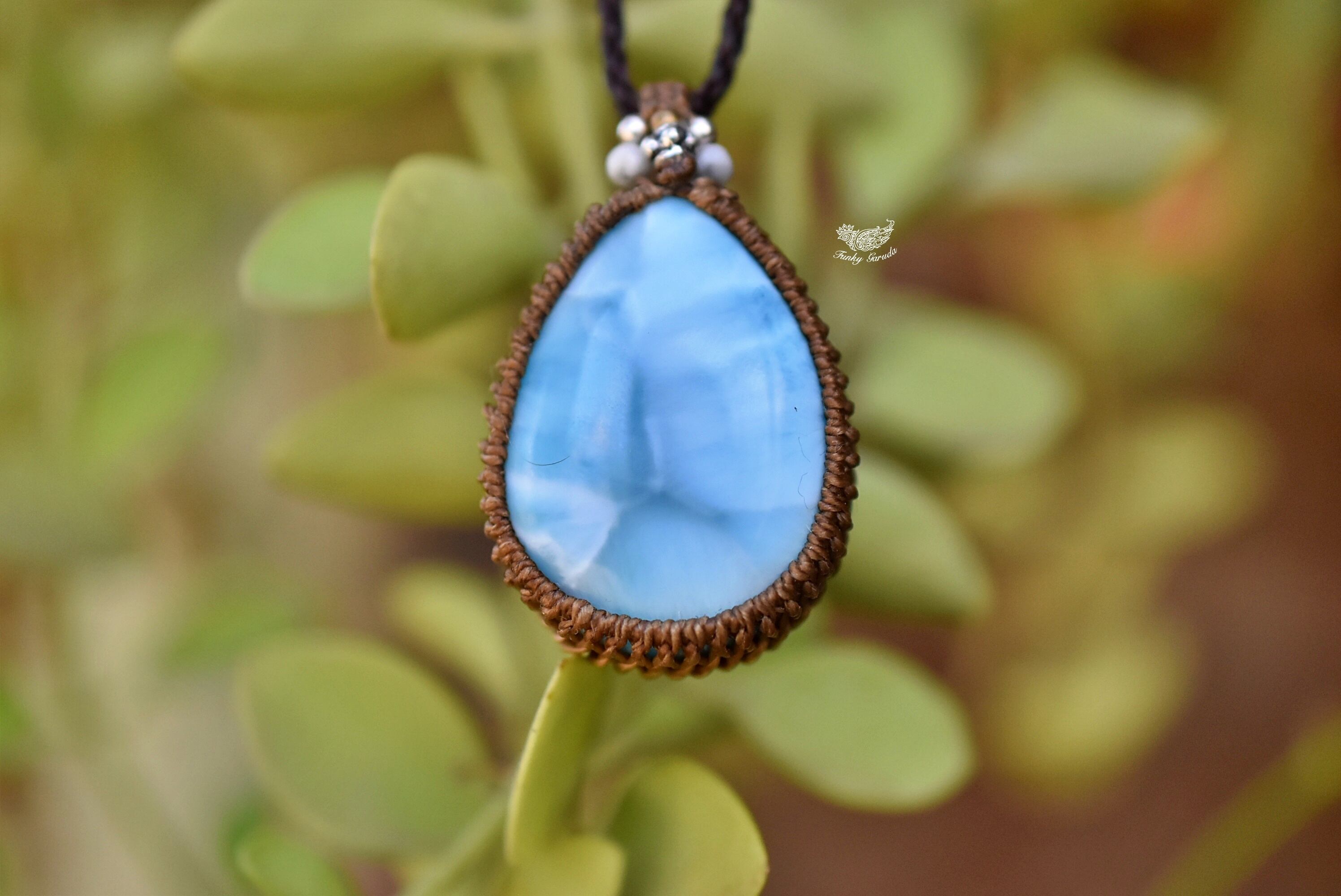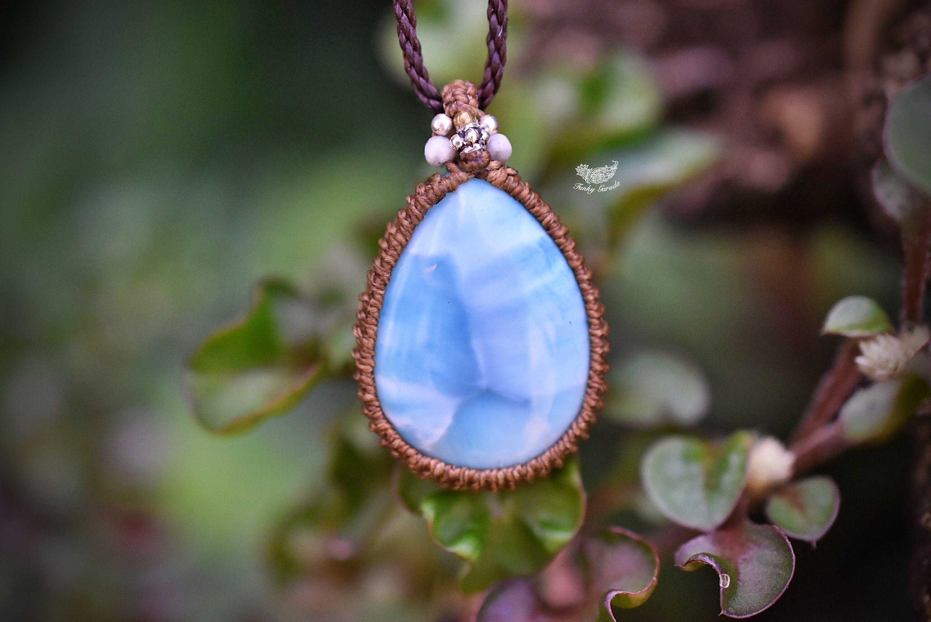 ◆このたびはゴールドブラウン、ダークブラウン色の蝋引き糸を使用しマクラメ編み装飾を施しました。