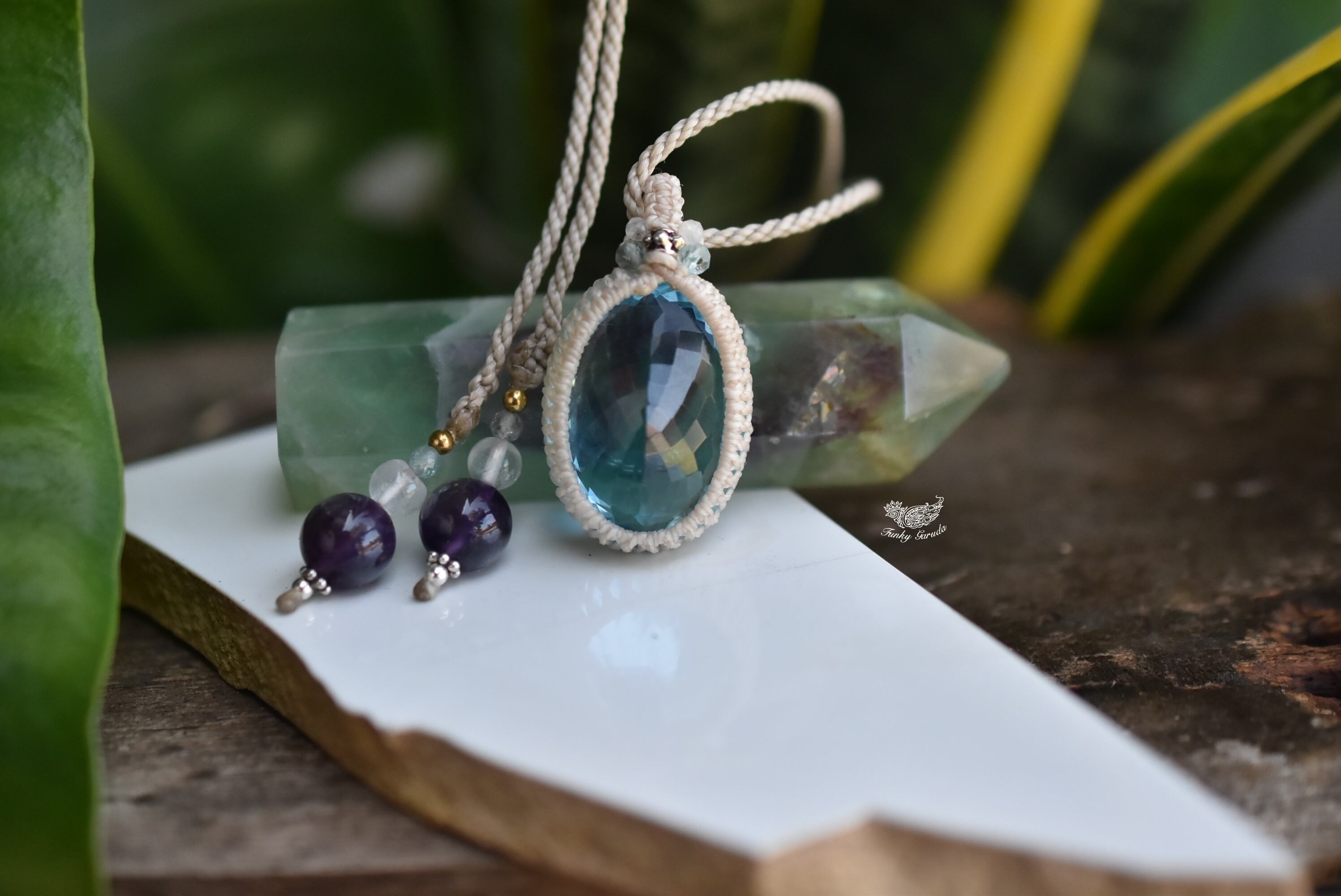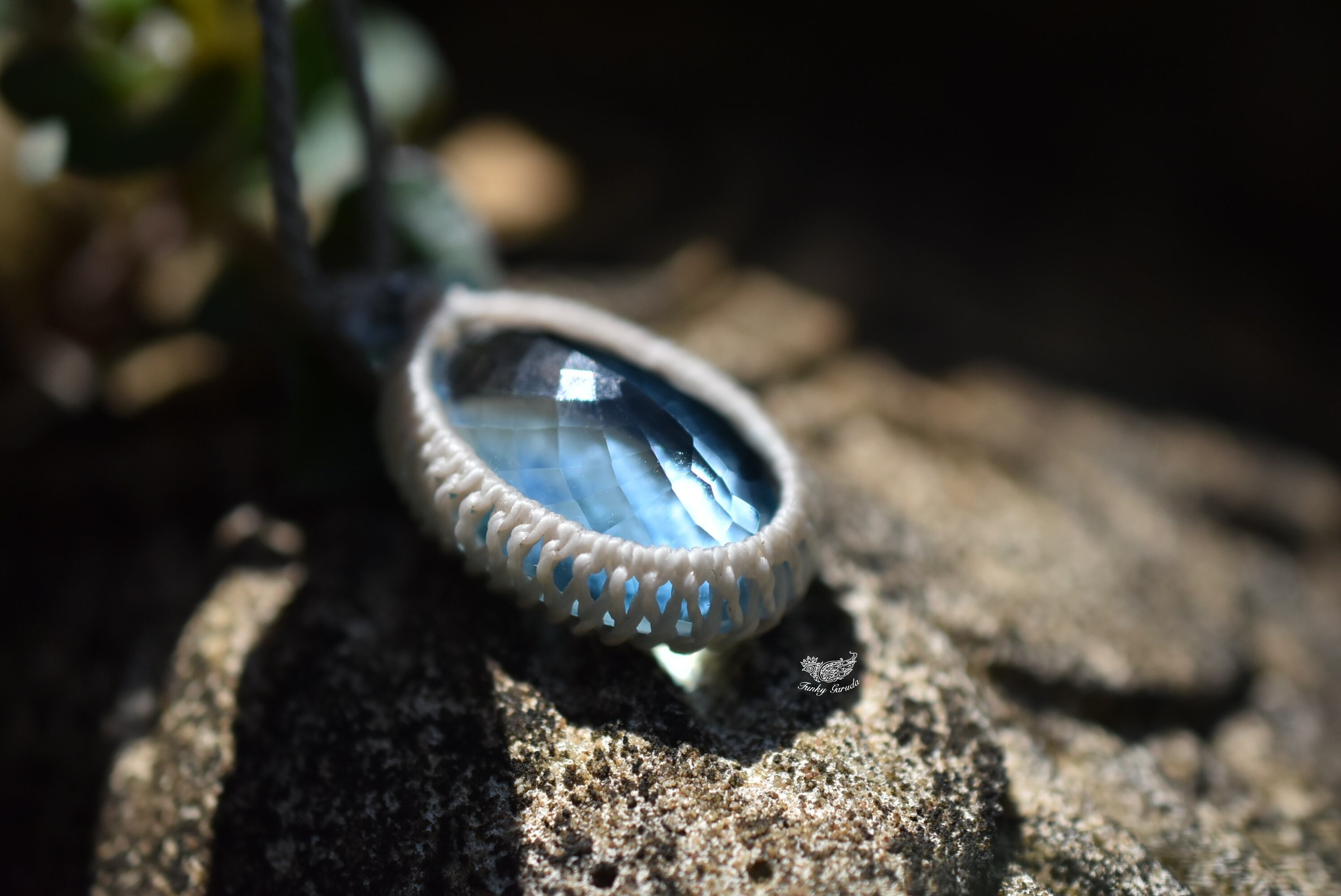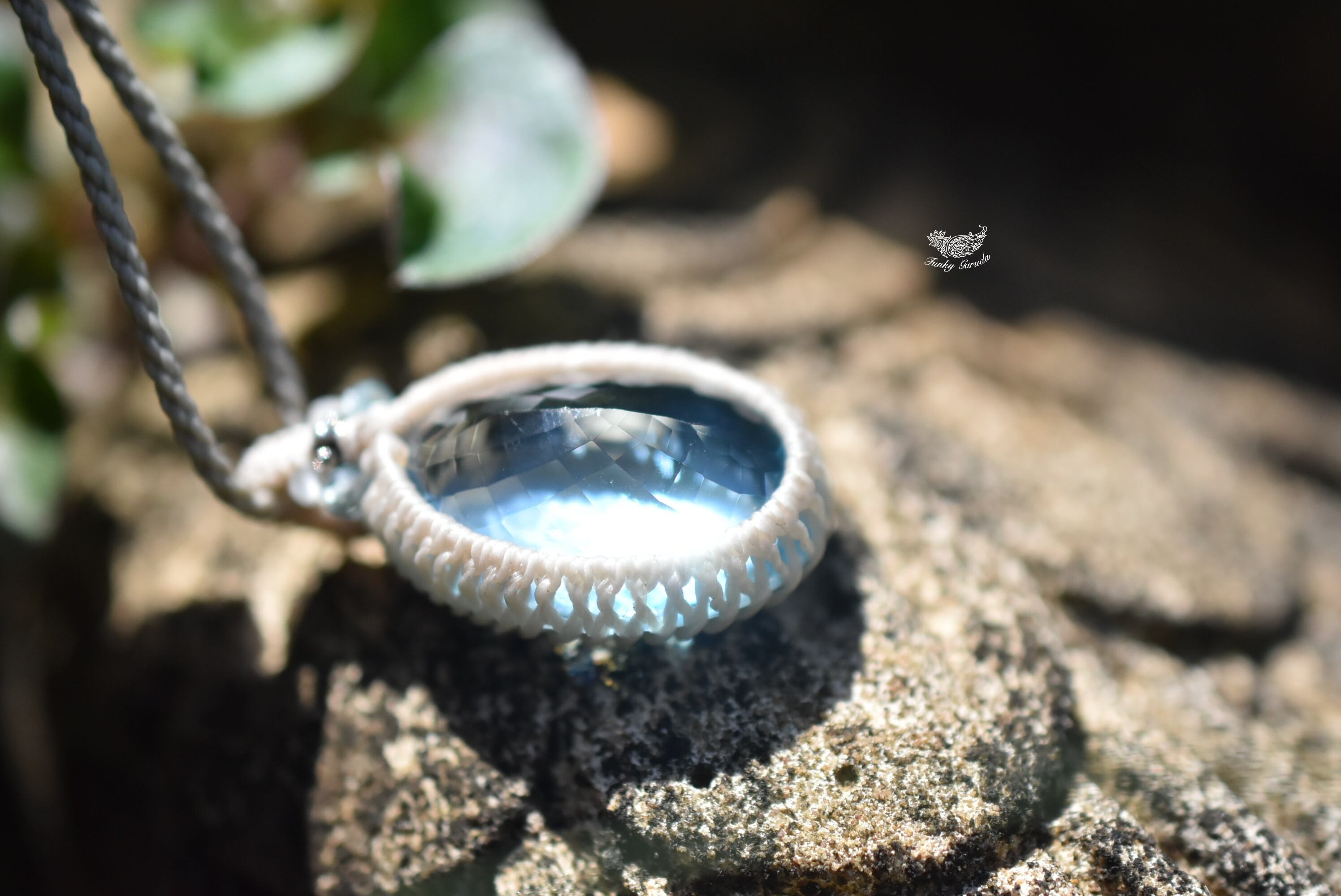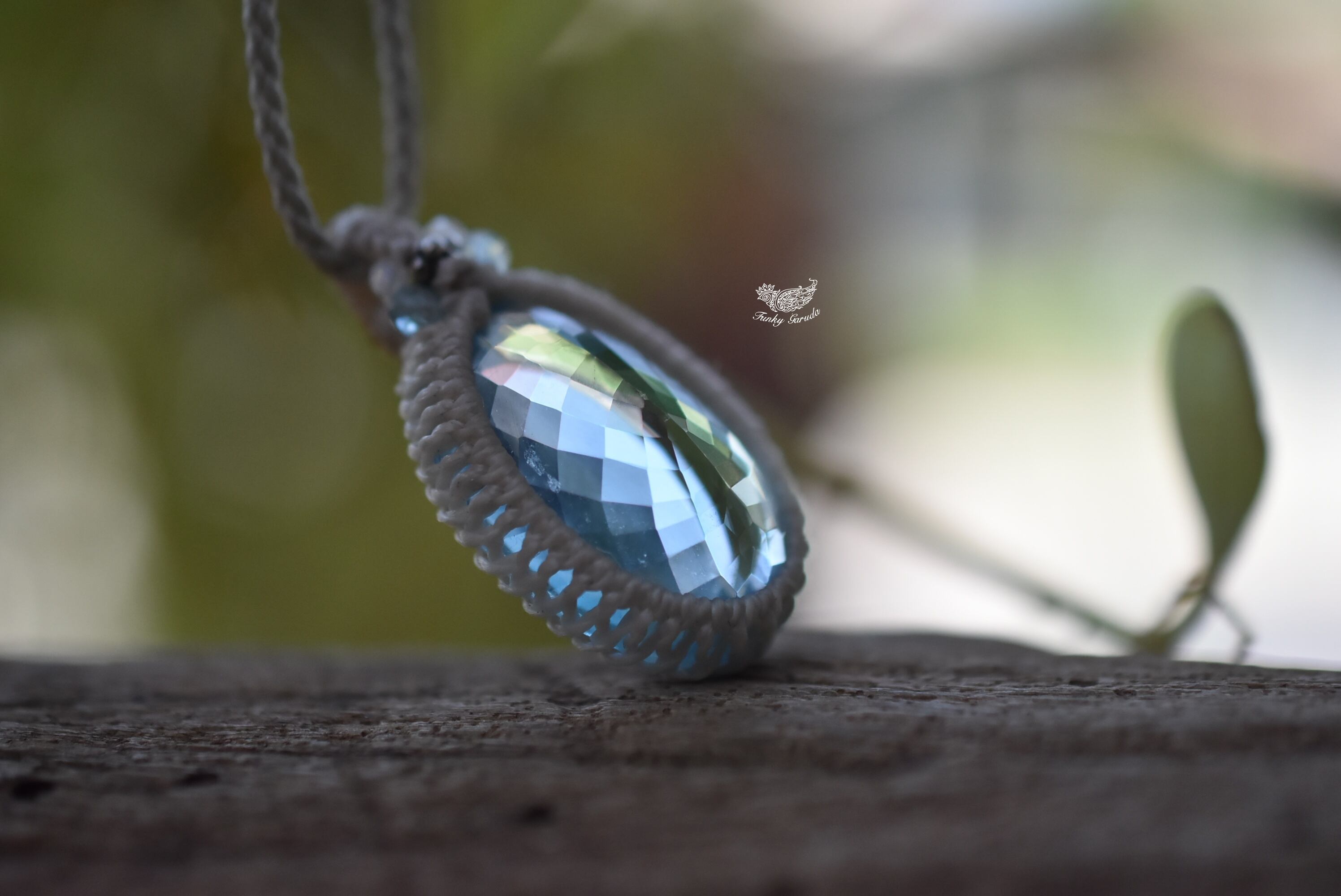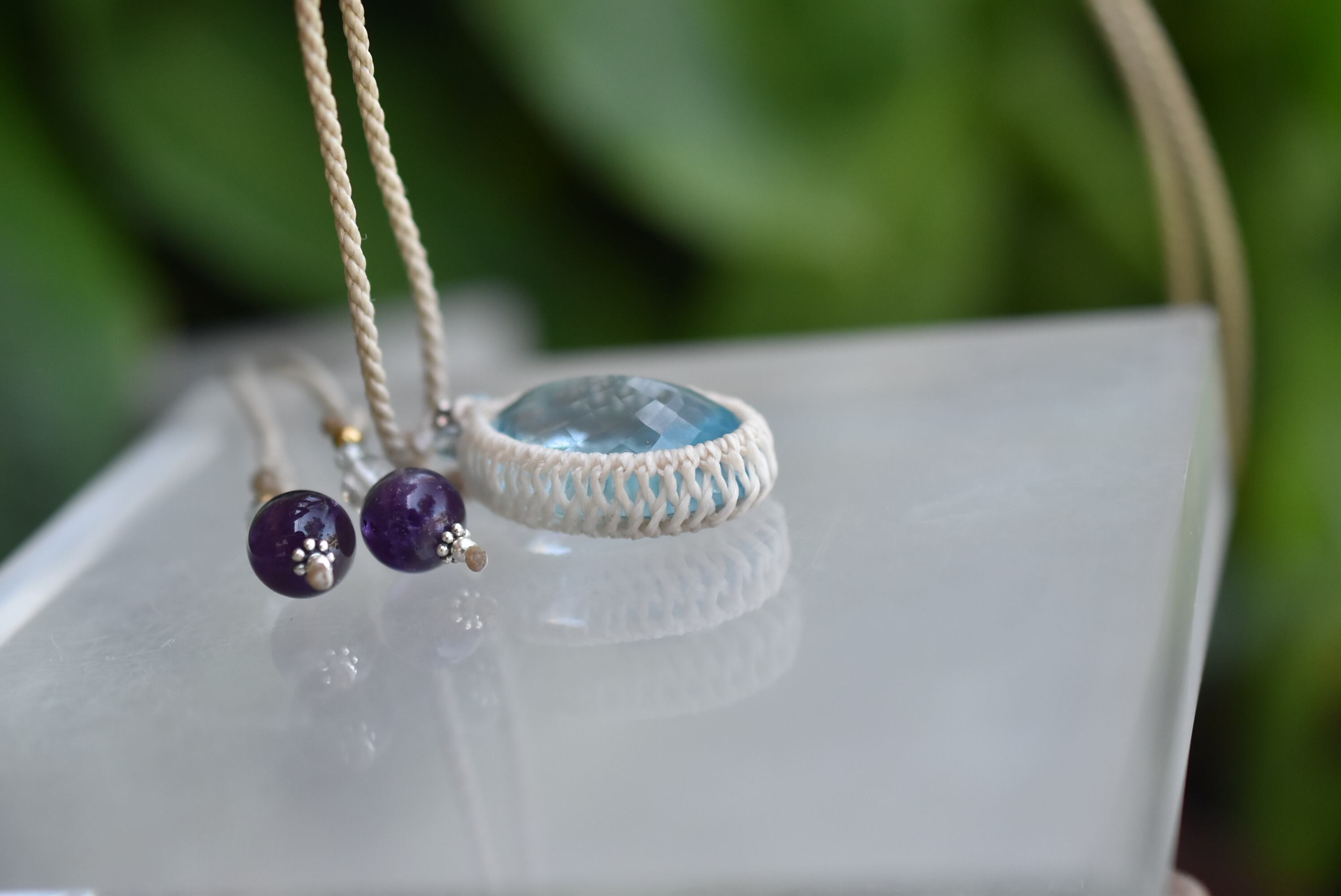 43ct.宝石★ブルートパーズ マクラメネックレス1053