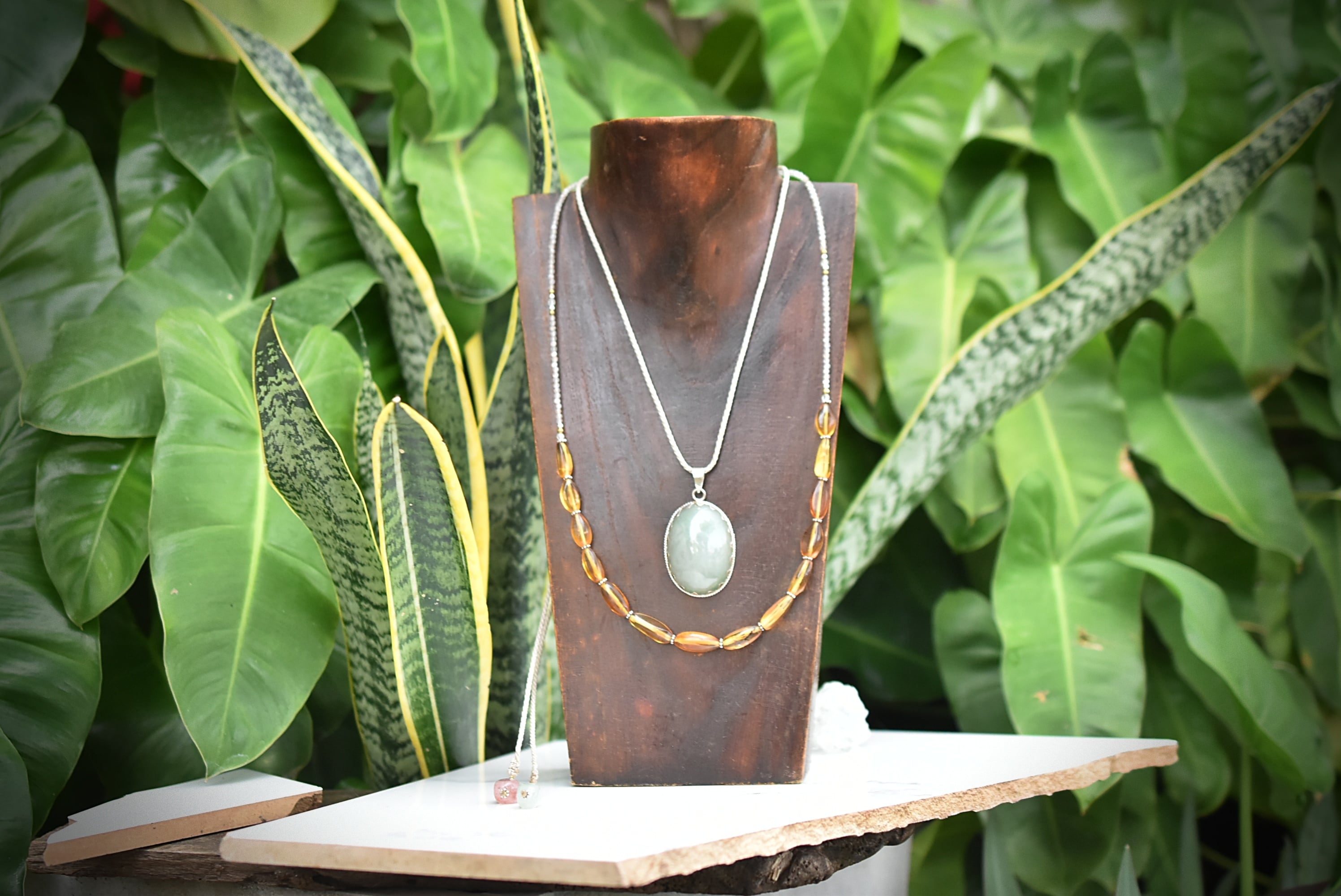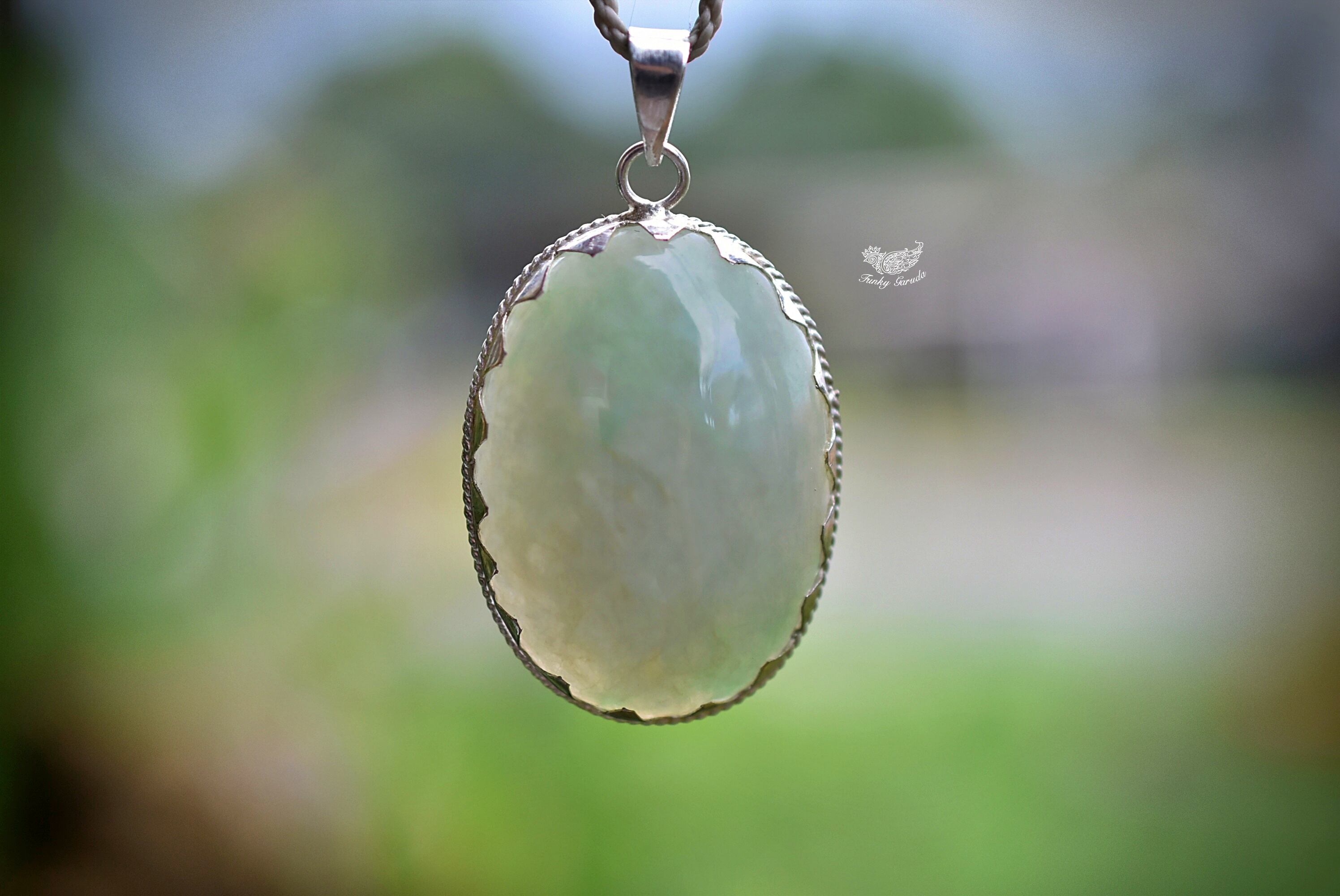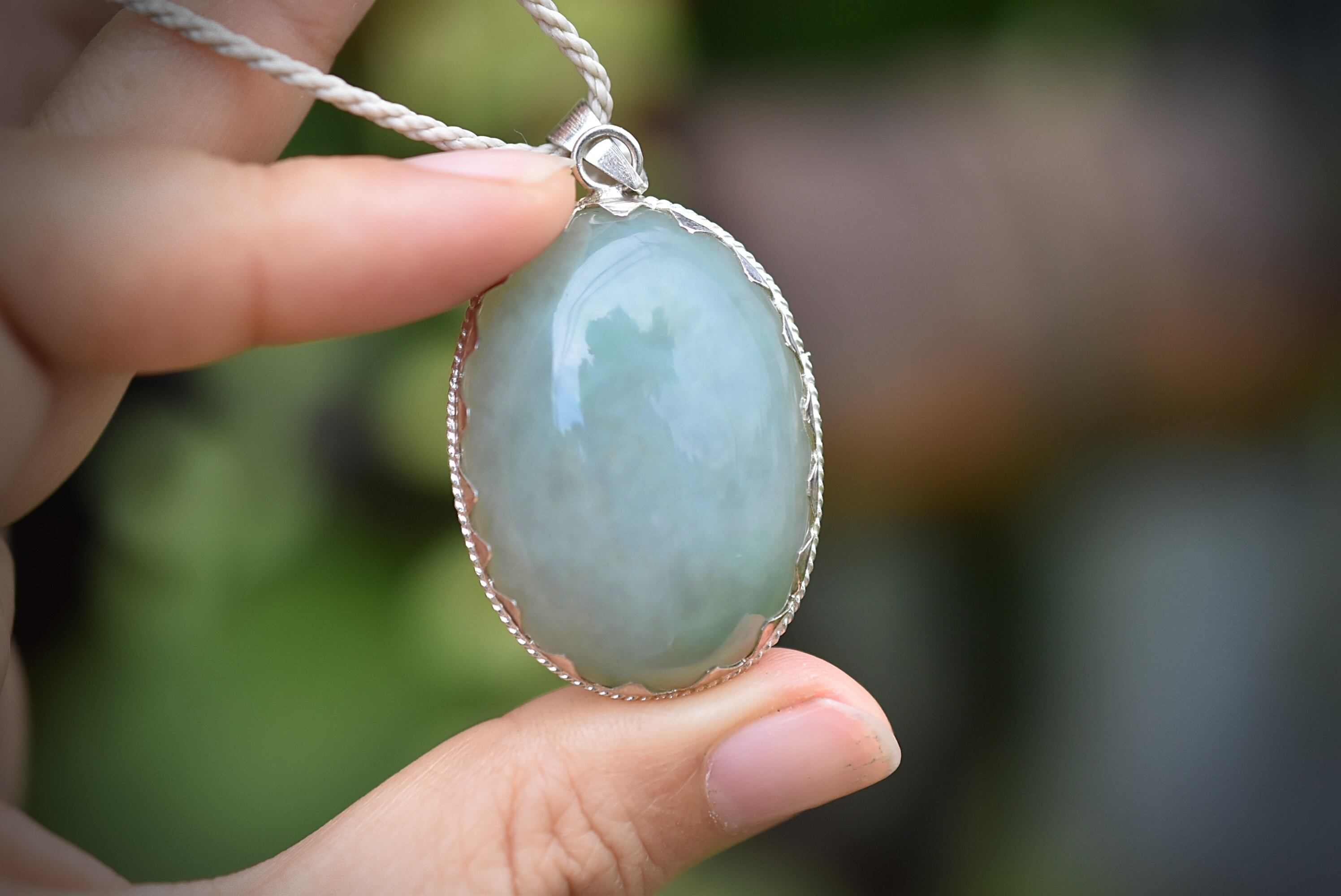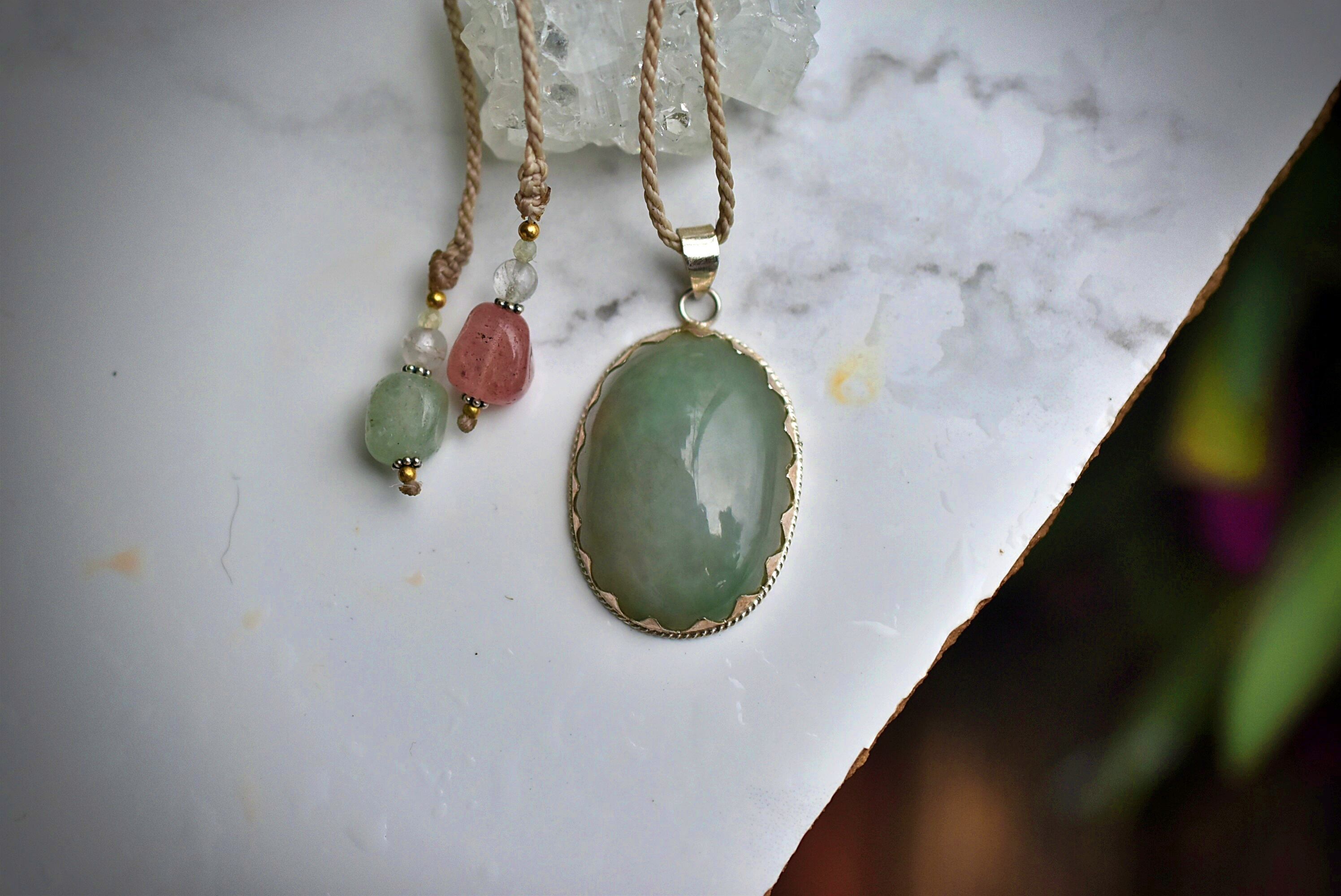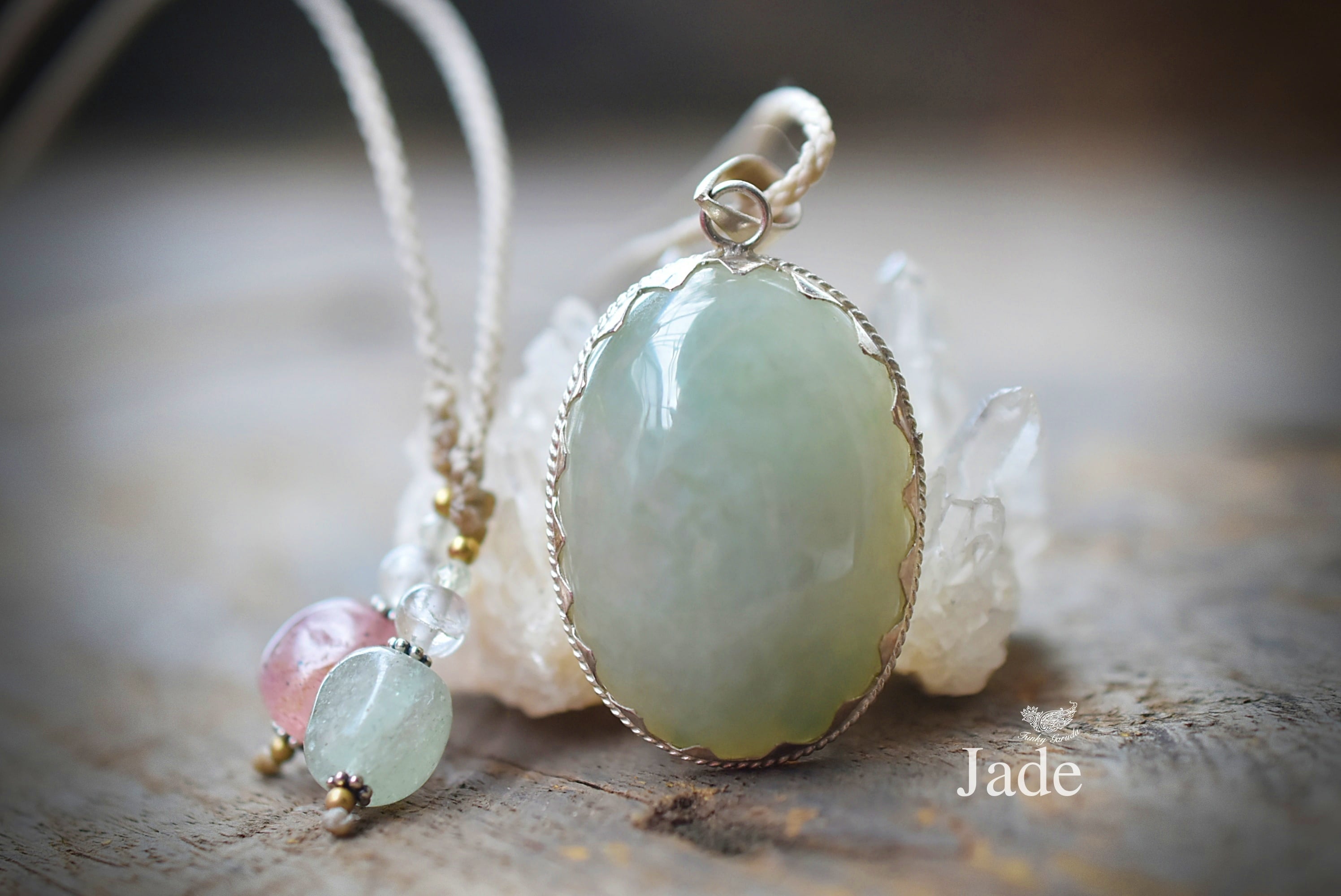 大粒★シルバー★ミャンマー翡翠★マクラメネックレス1070