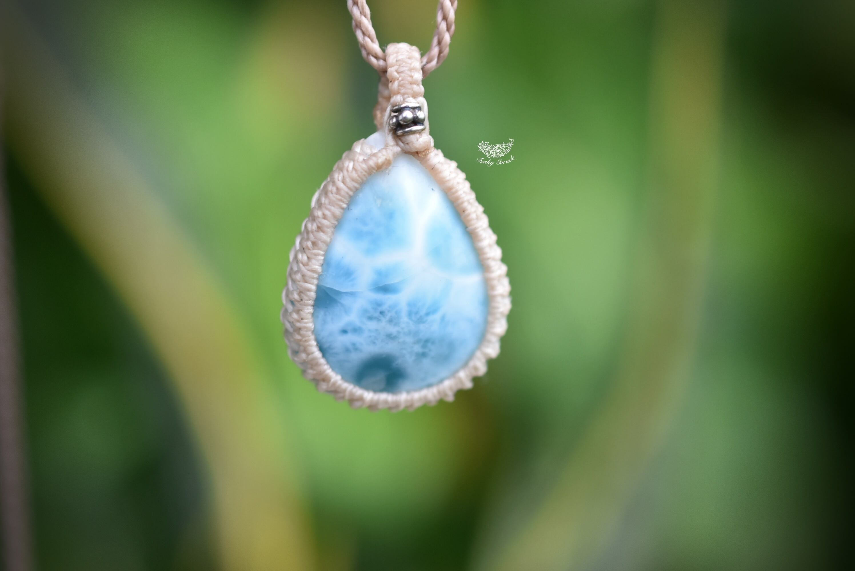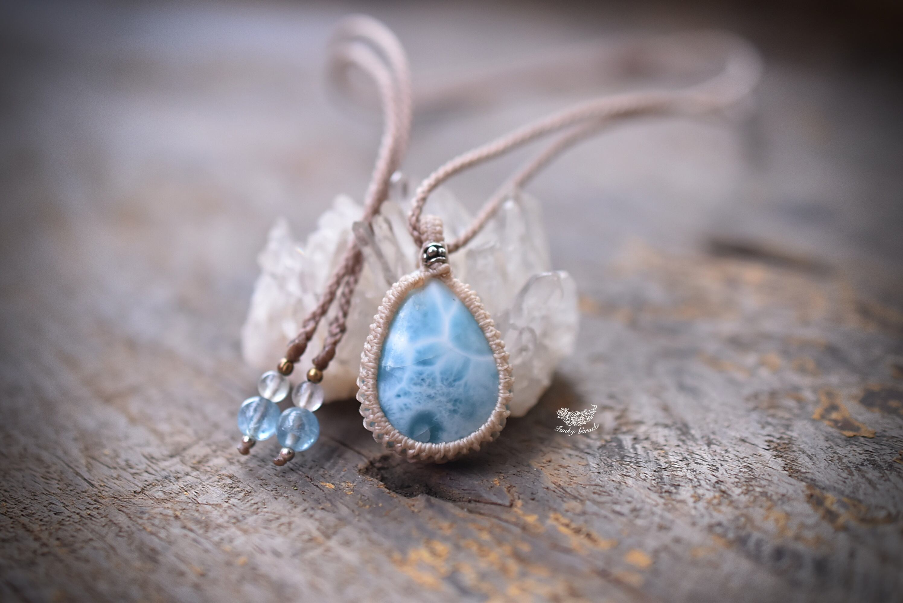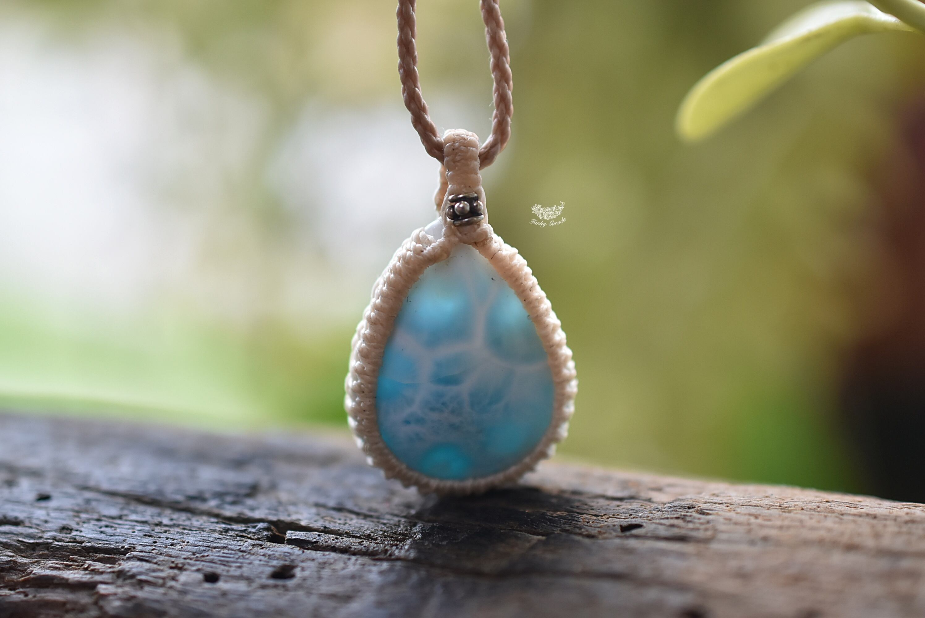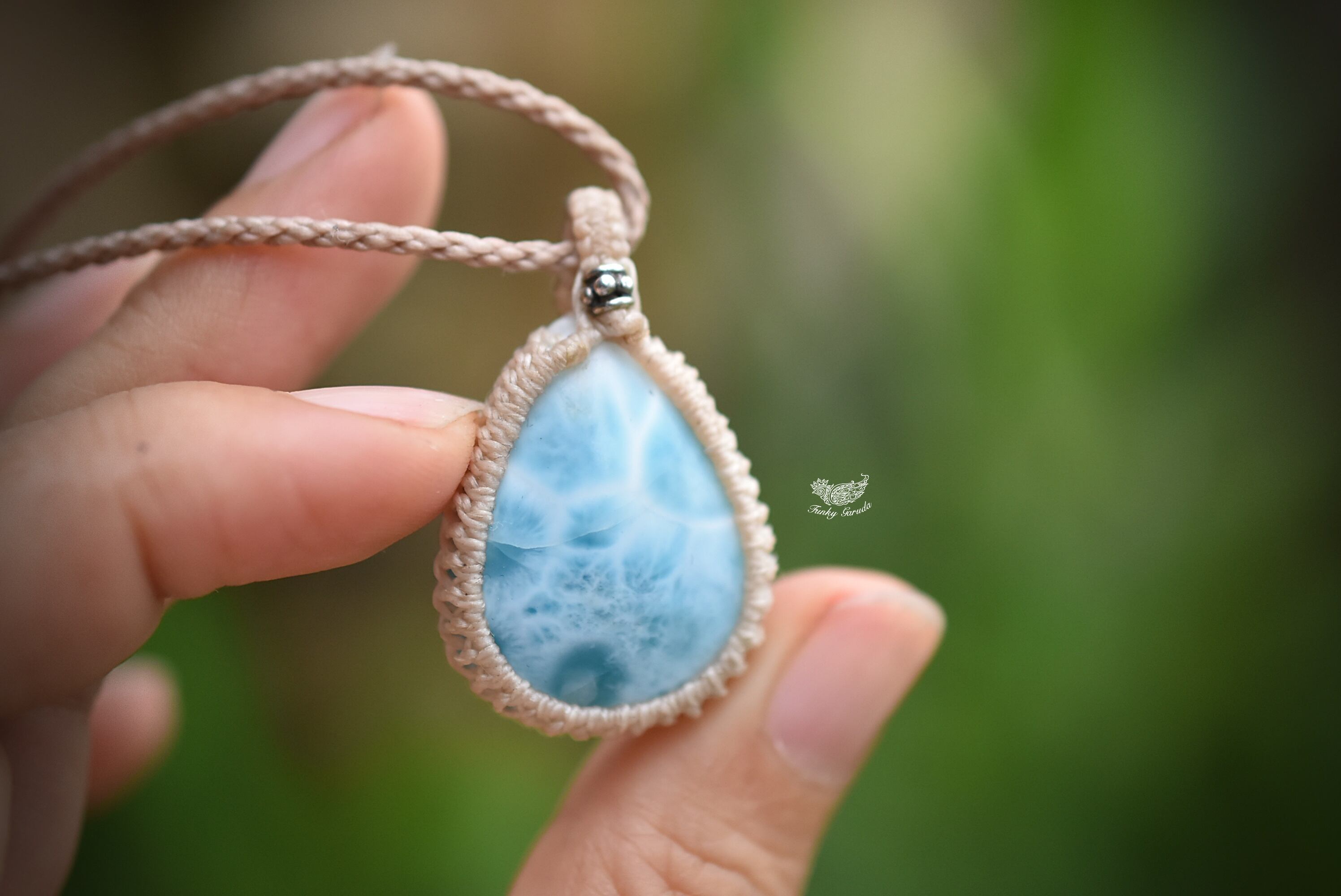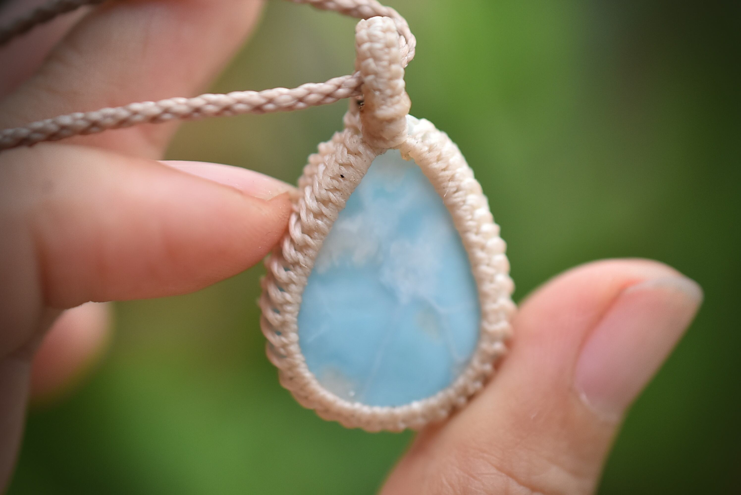 ◆このたびはナチュラルホワイト、カフェオレ色の蝋引き糸を使用しマクラメ編み装飾を施しました。