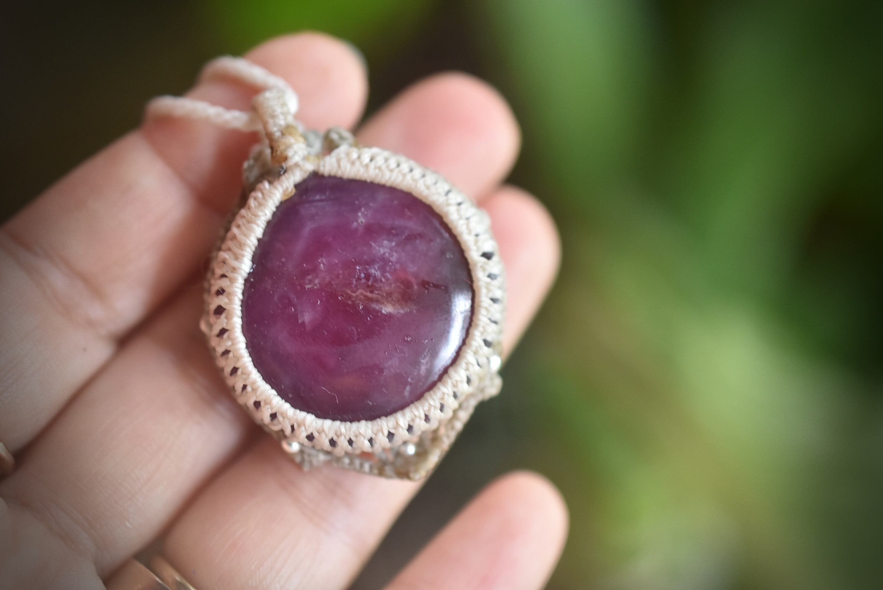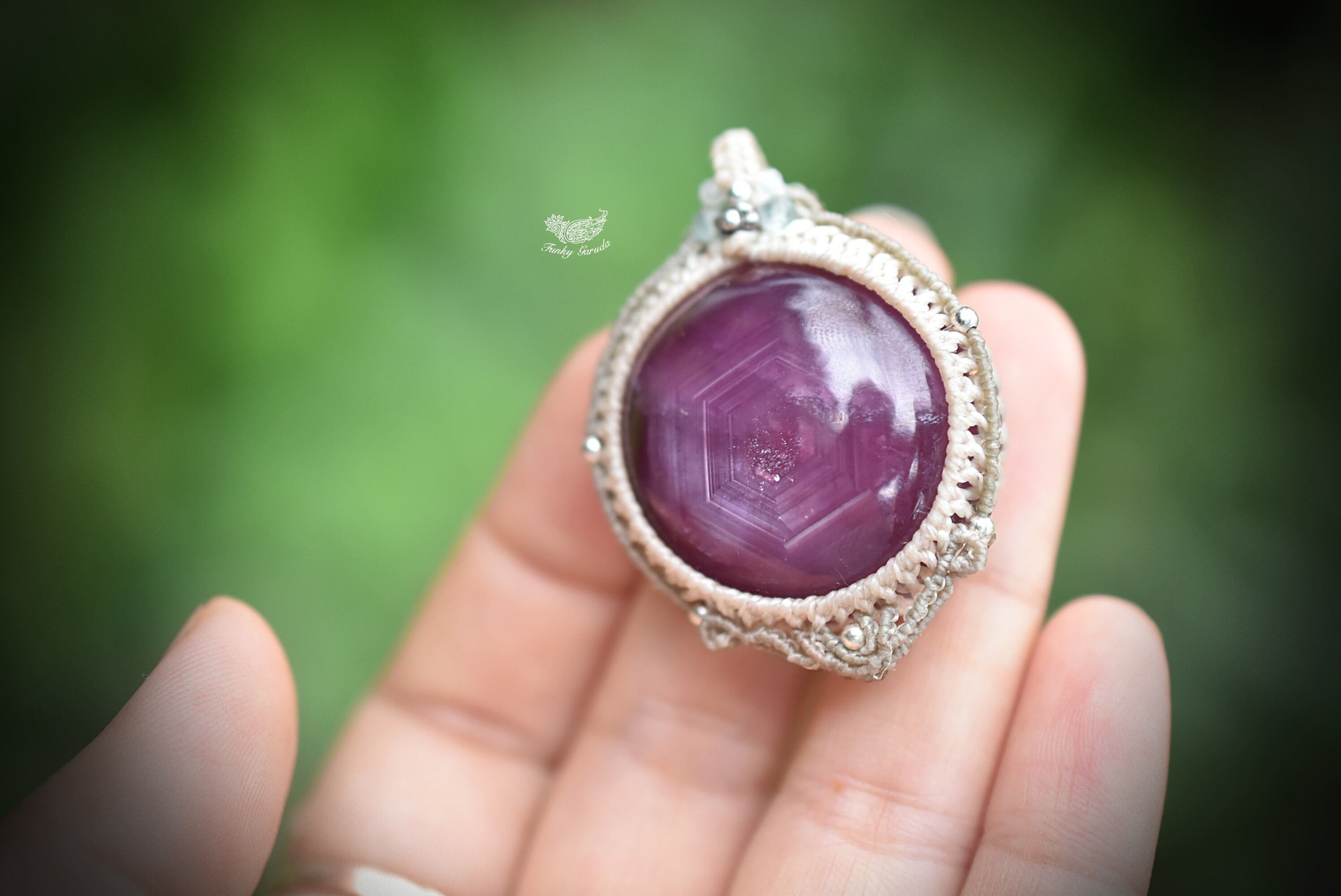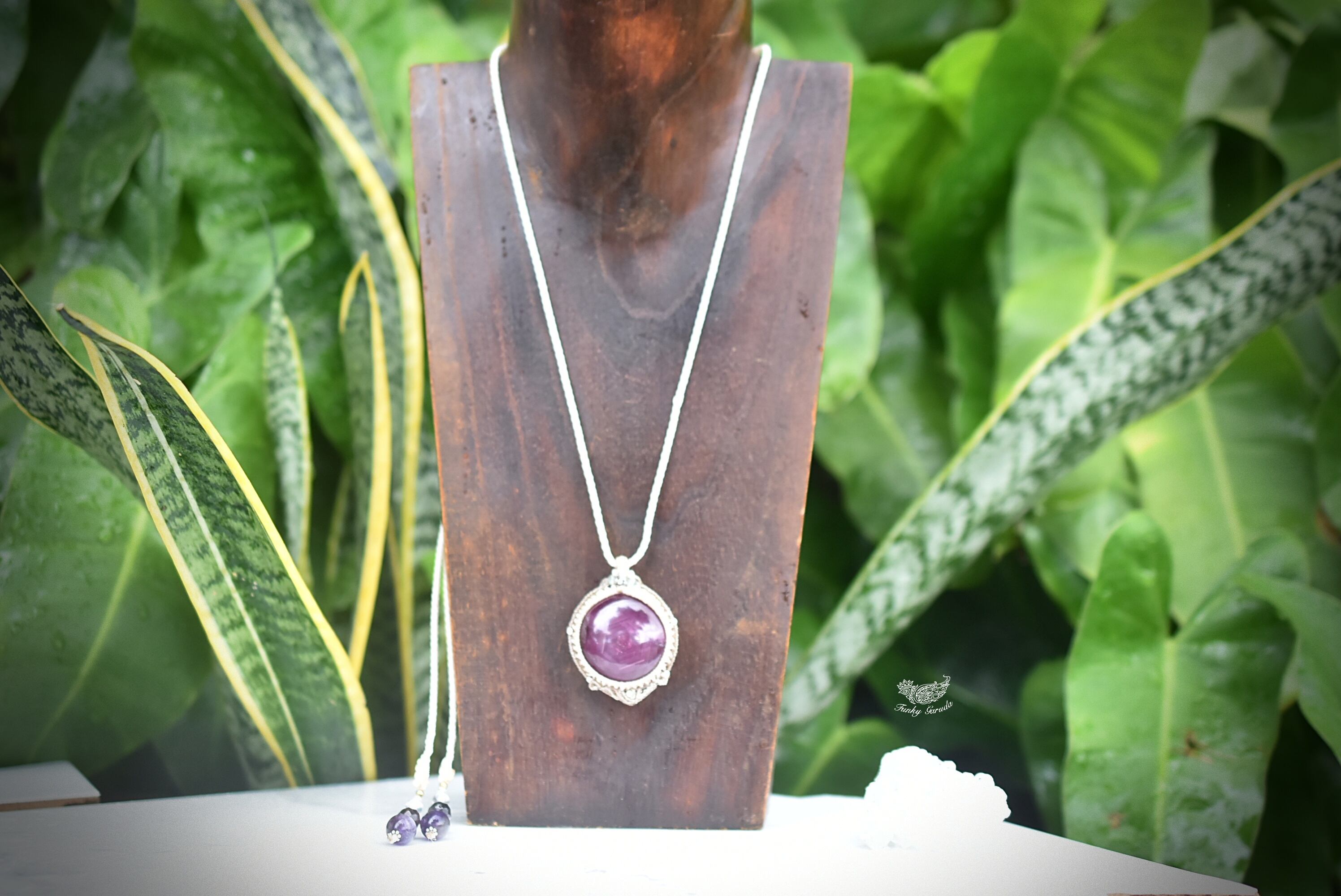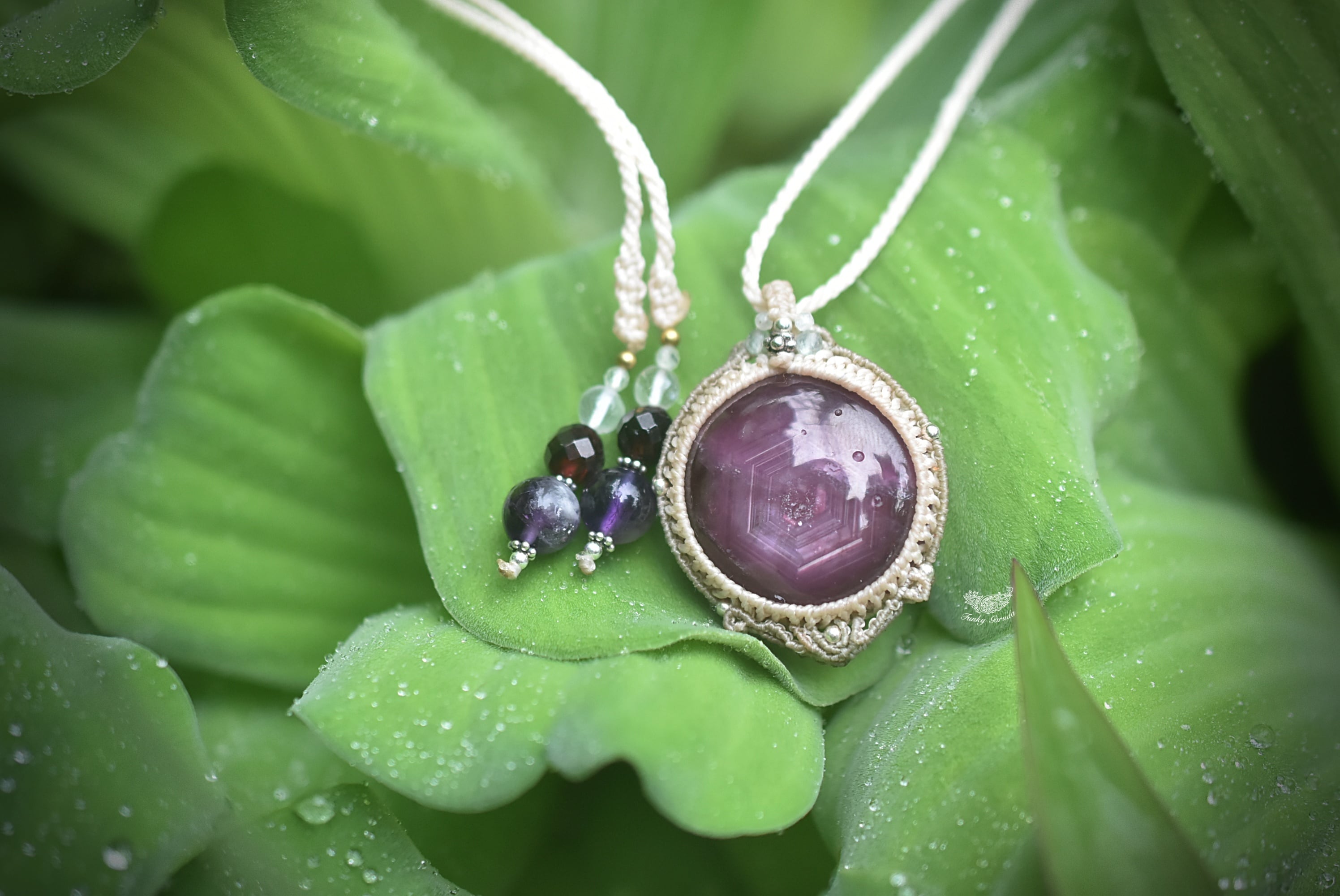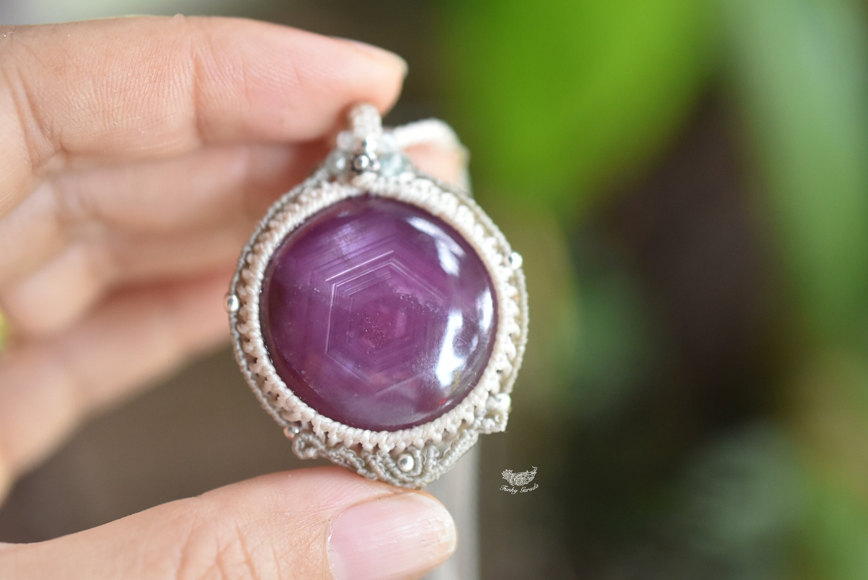 希少★成長コランダム★ヘキサゴン★ナチュラルルビー マクラメネックレス1079