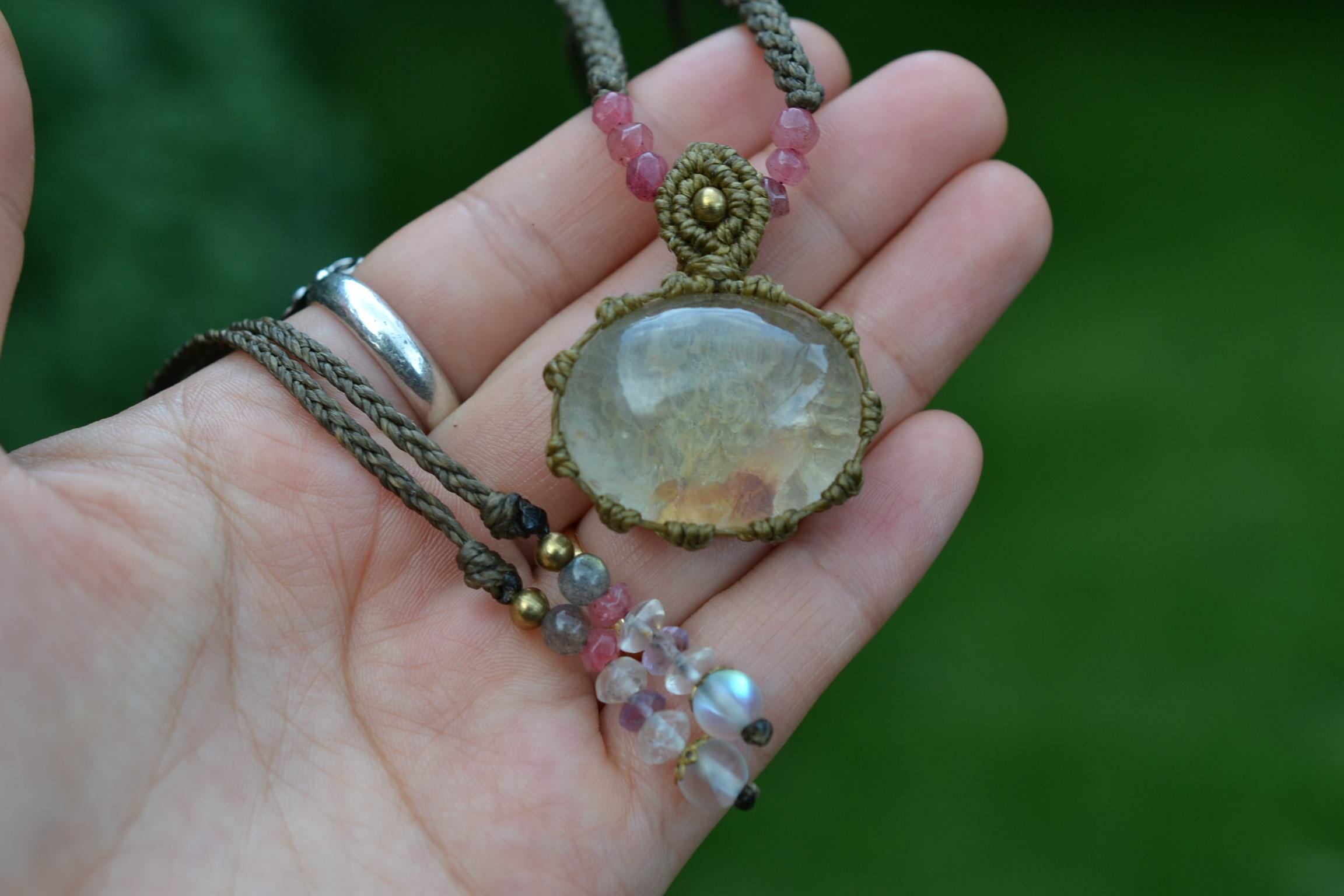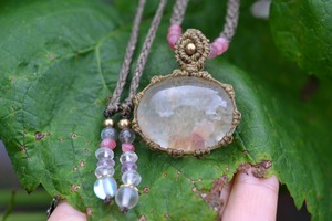 ピンクの鱗★ガーデンクォーツ マクラメペンダント
