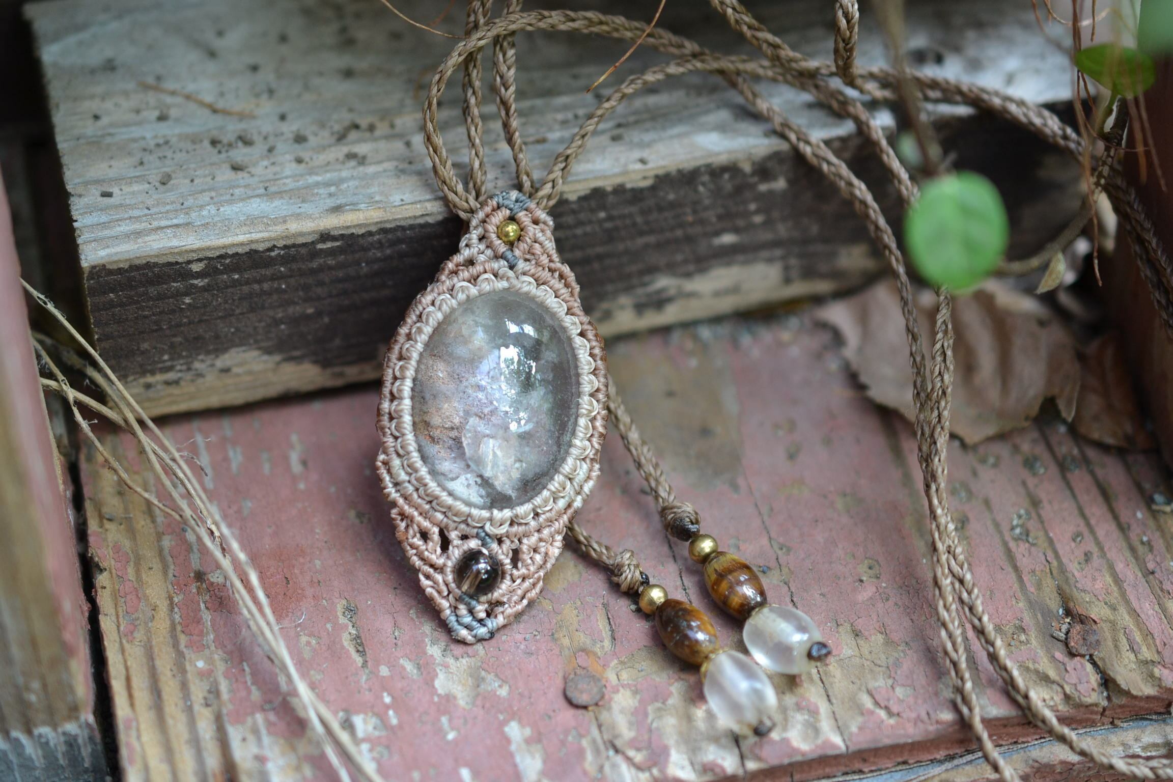 ピンクの結晶★ガーデンクォーツマクラメペンダント