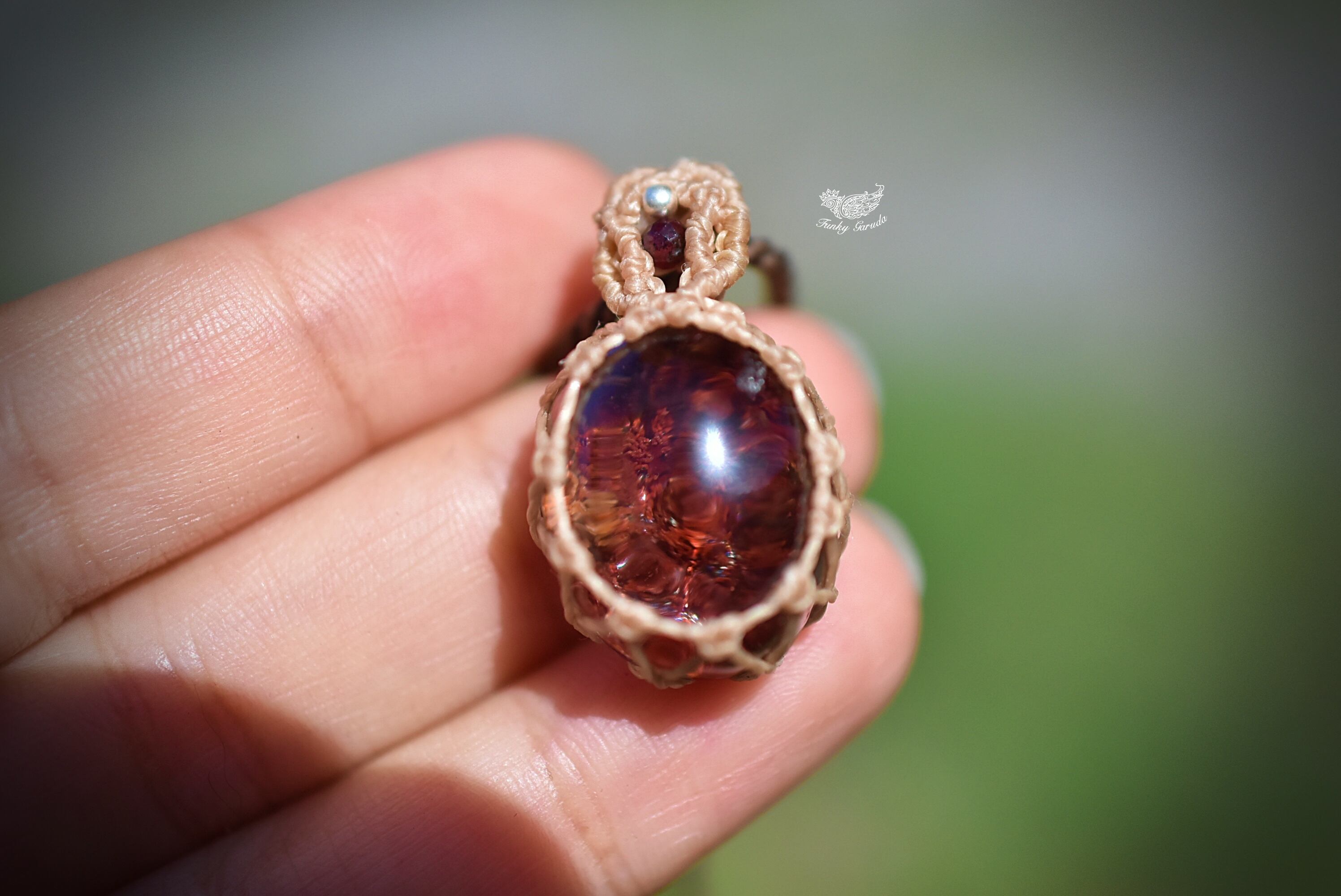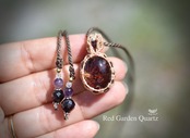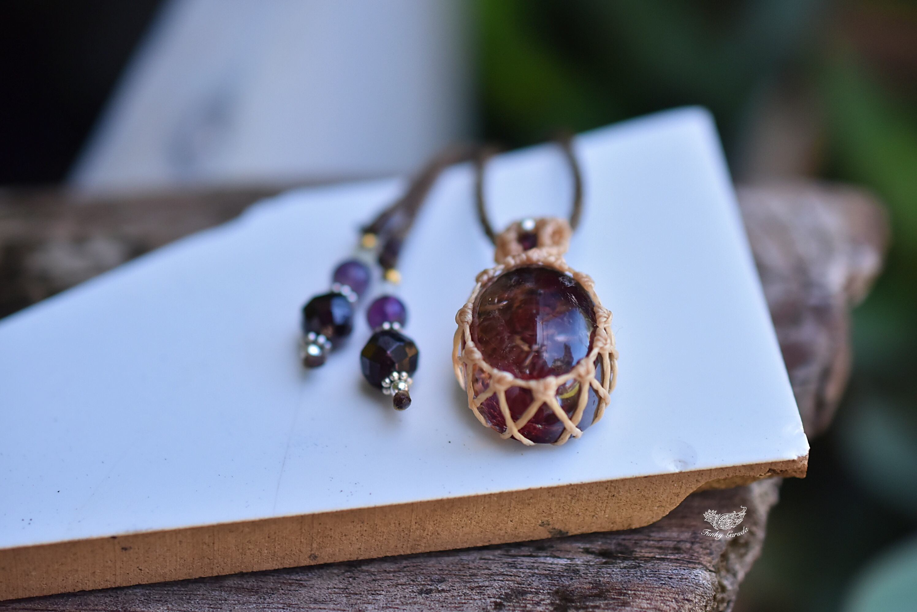 赤い紅葉★ブラジル産 ガーデンクォーツ マクラメネックレス1080