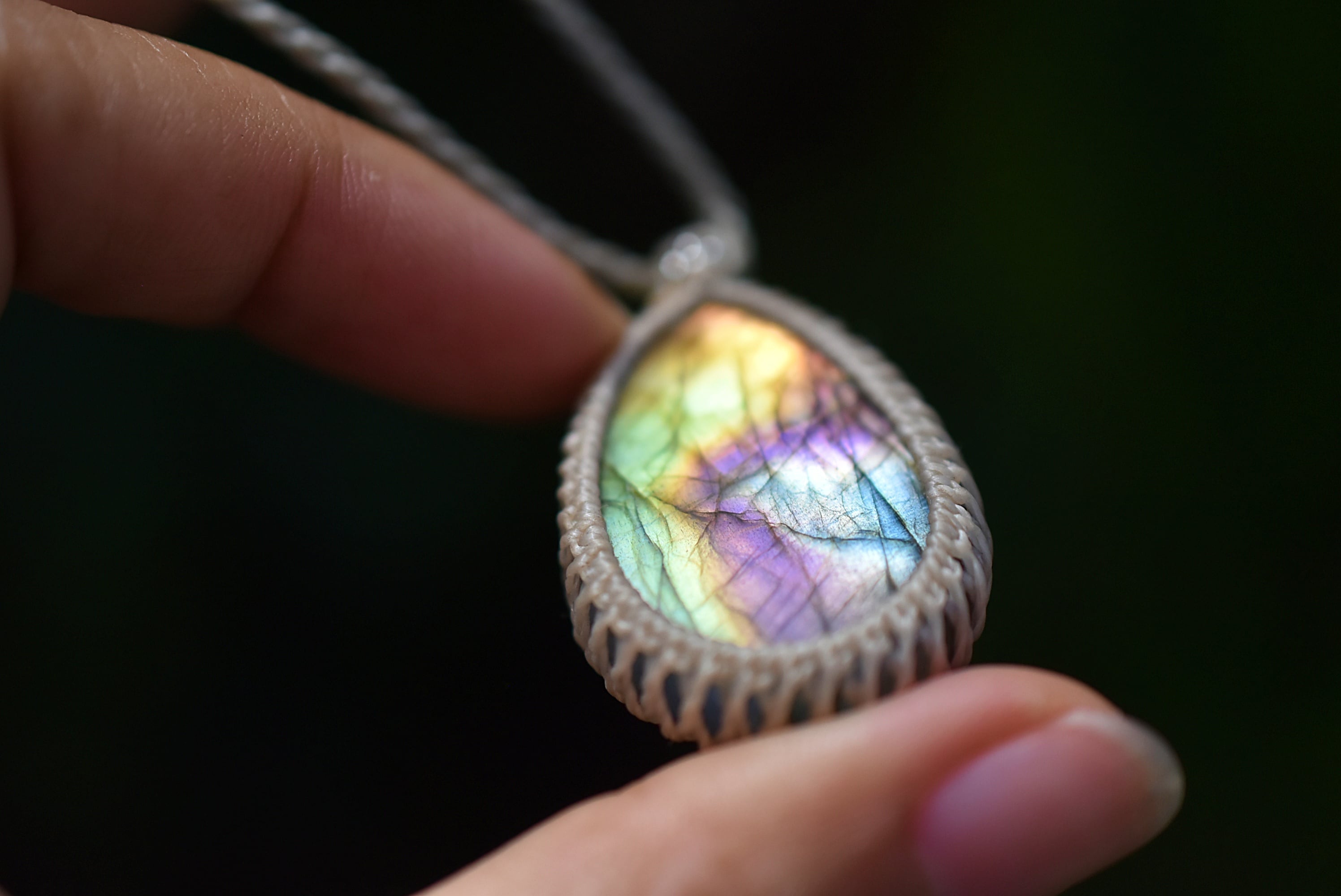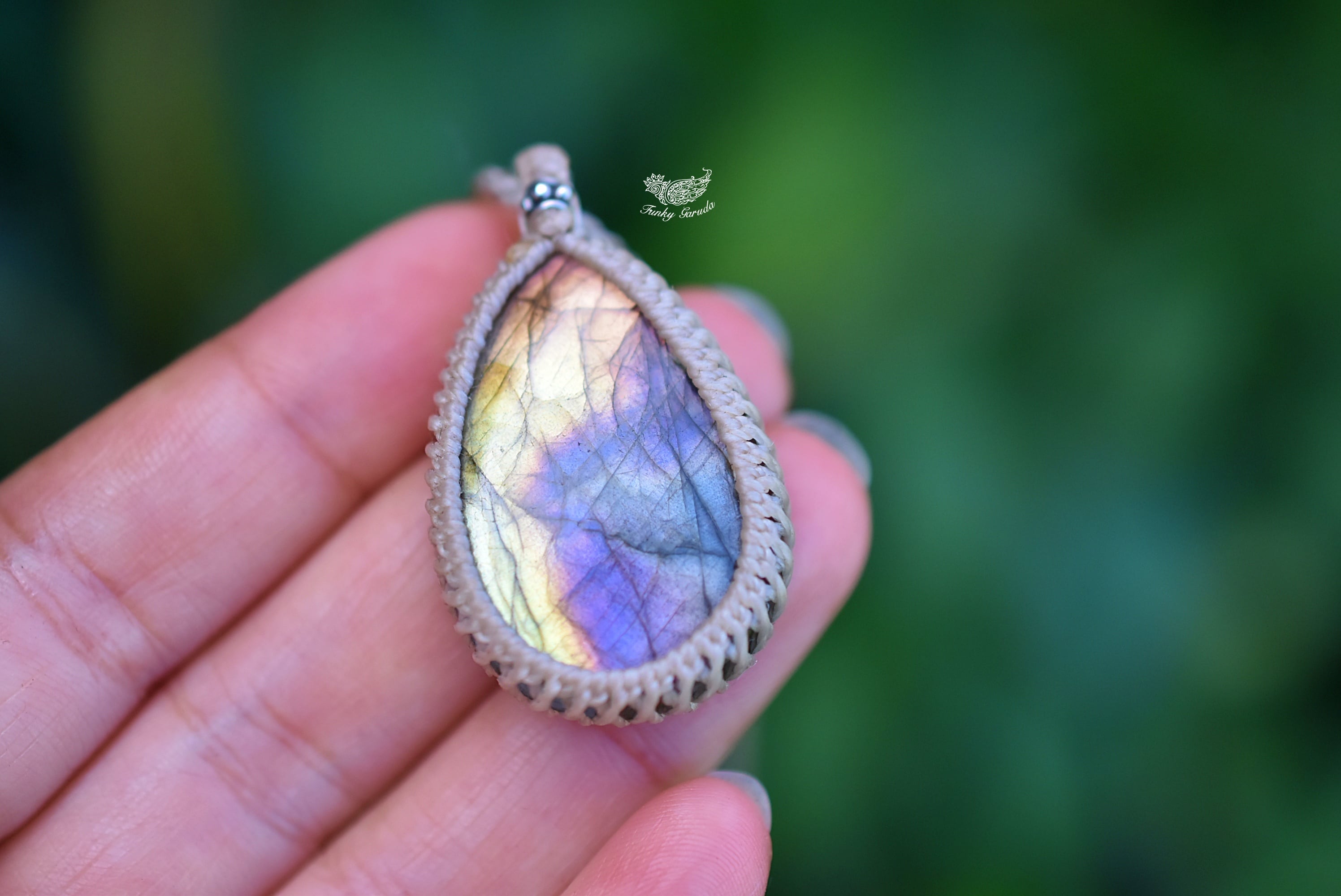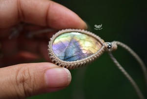 黄金と紫!★パープルラブラドライト マクラメネックレス1084