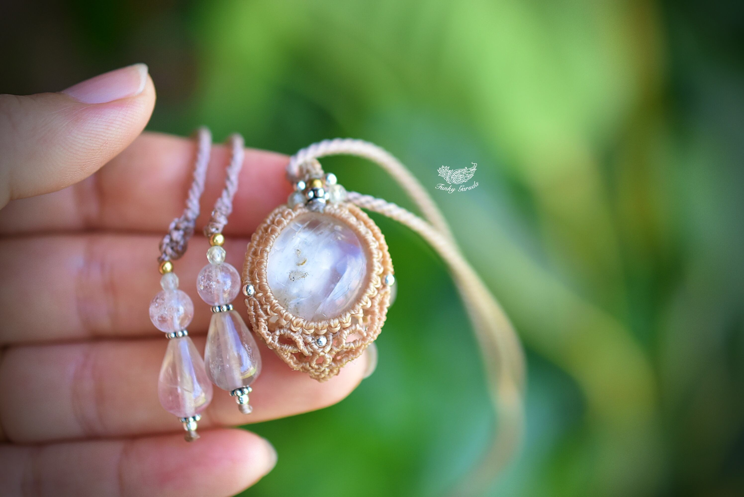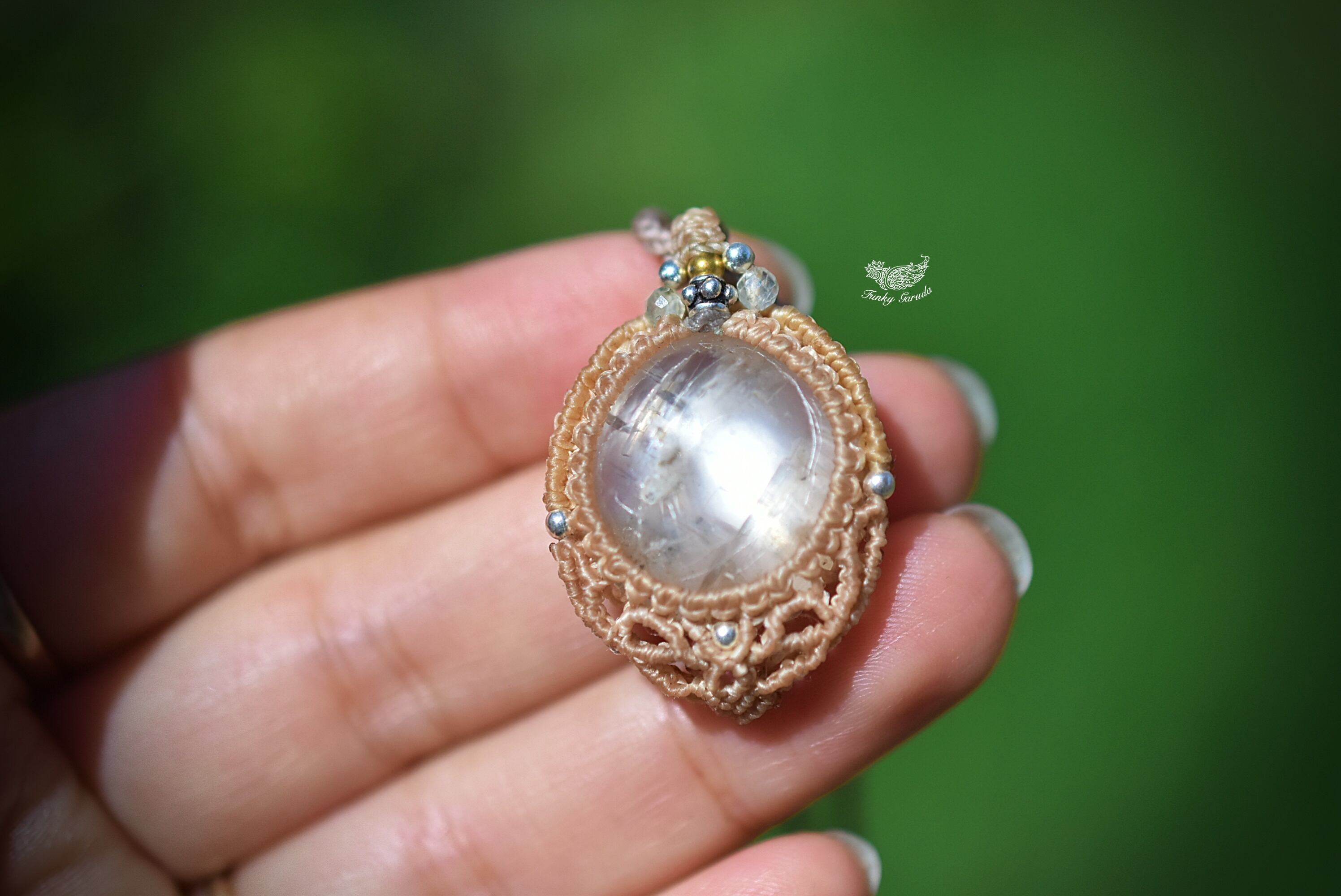 シルキーホワイト★ミャンマー産★ムーンストーン マクラメネックレス1087