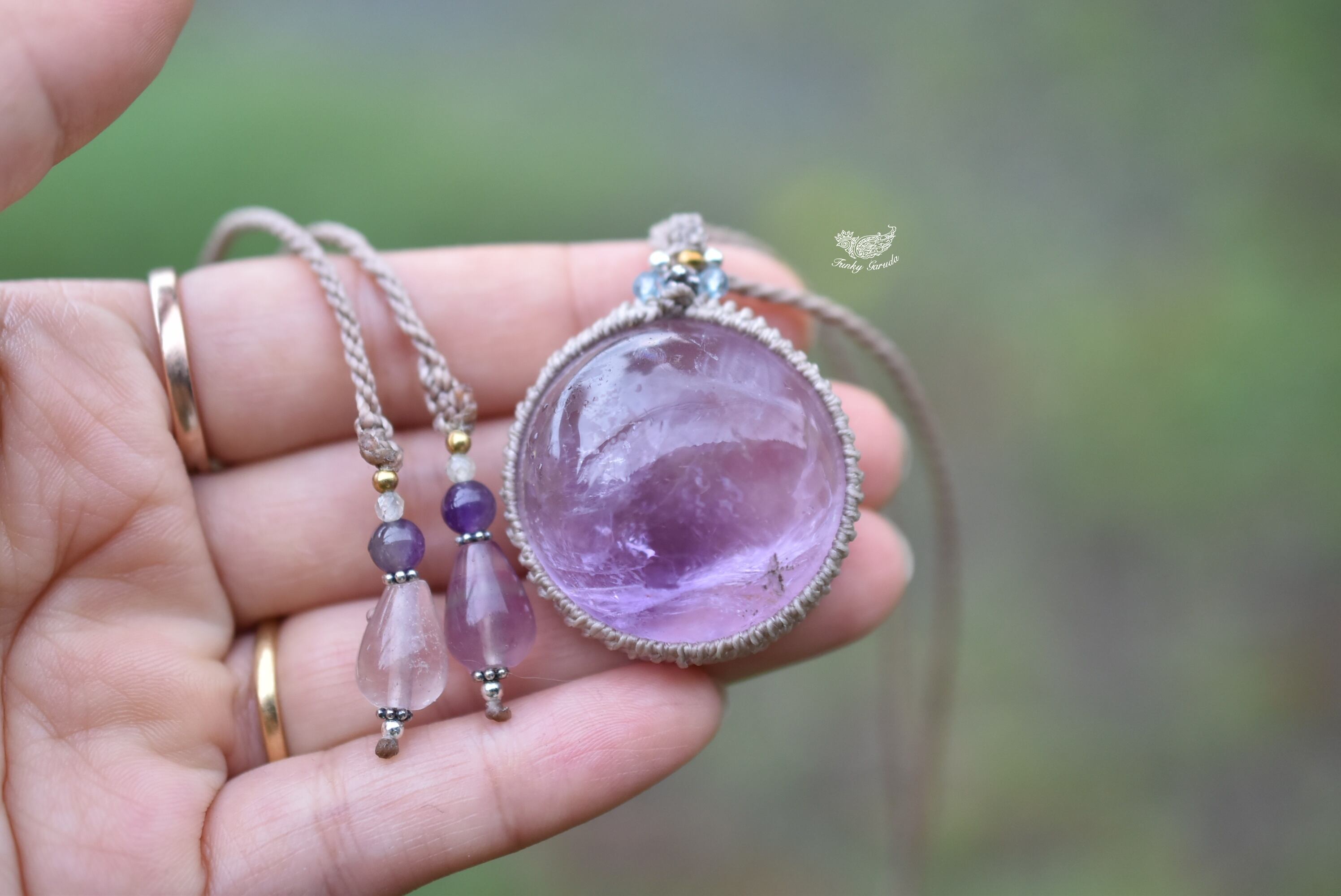 大粒★小さな虹★アメシスト マクラメネックレス1100