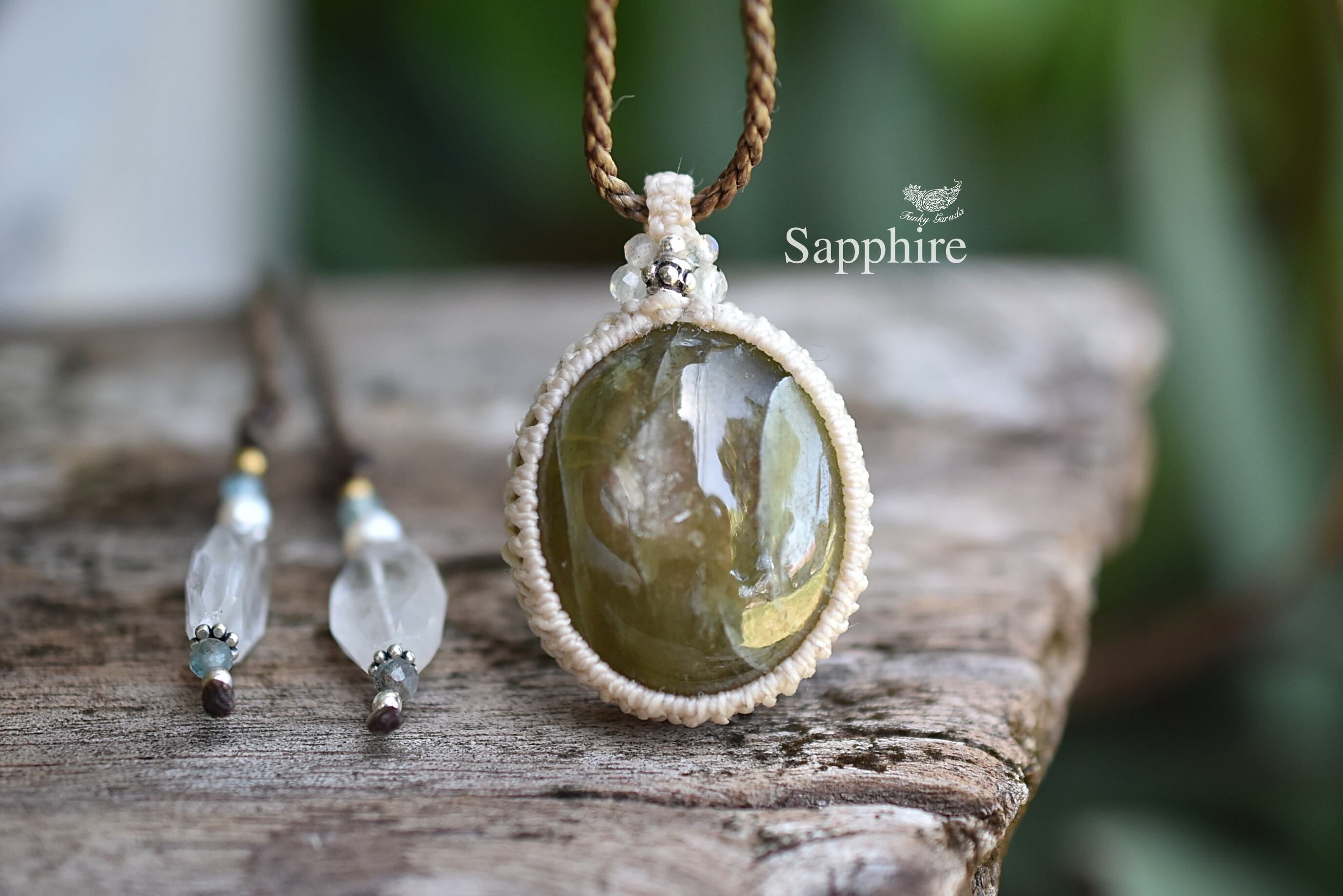 イエローグリーン★コランダム★sapphire マクラメネックレス1118