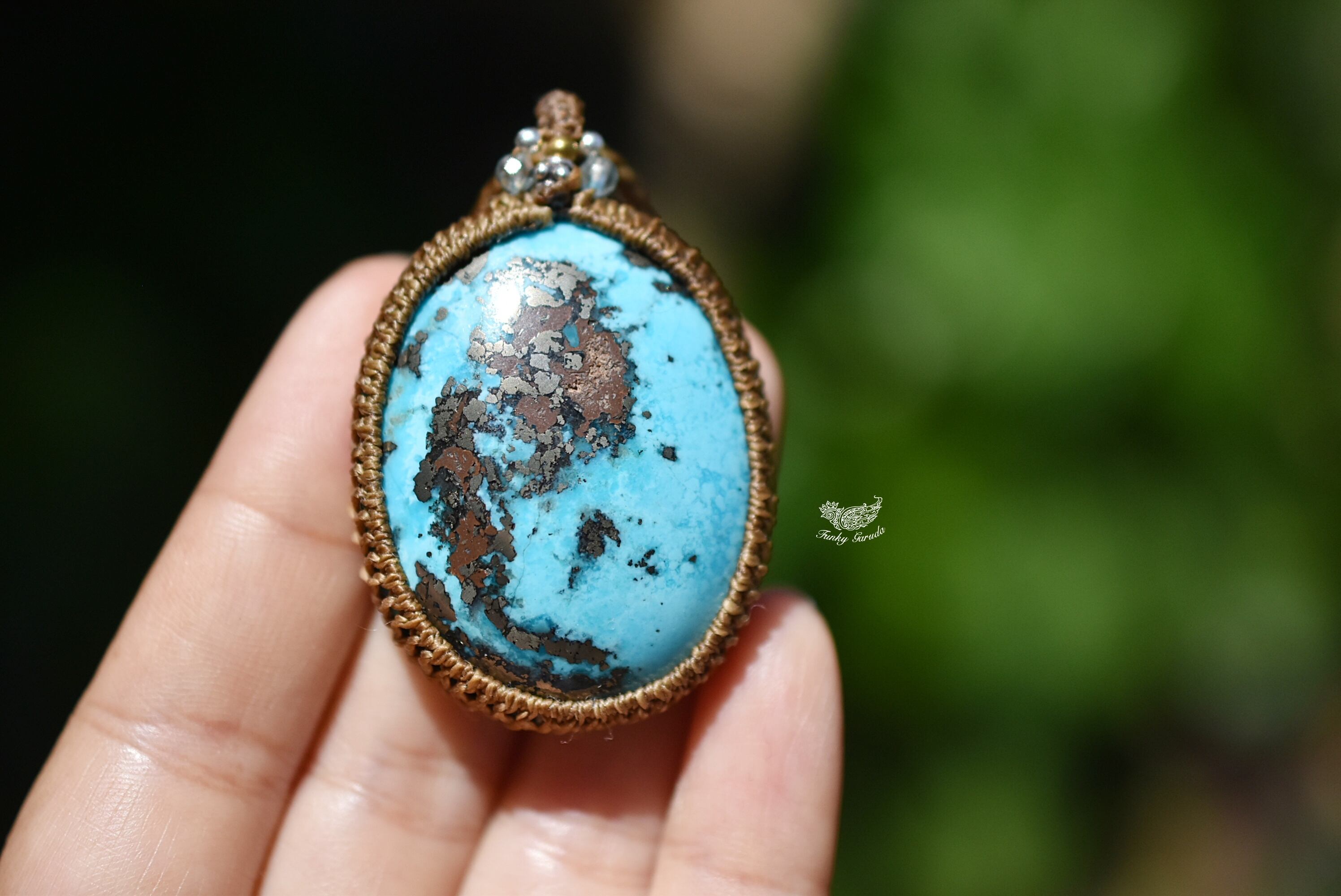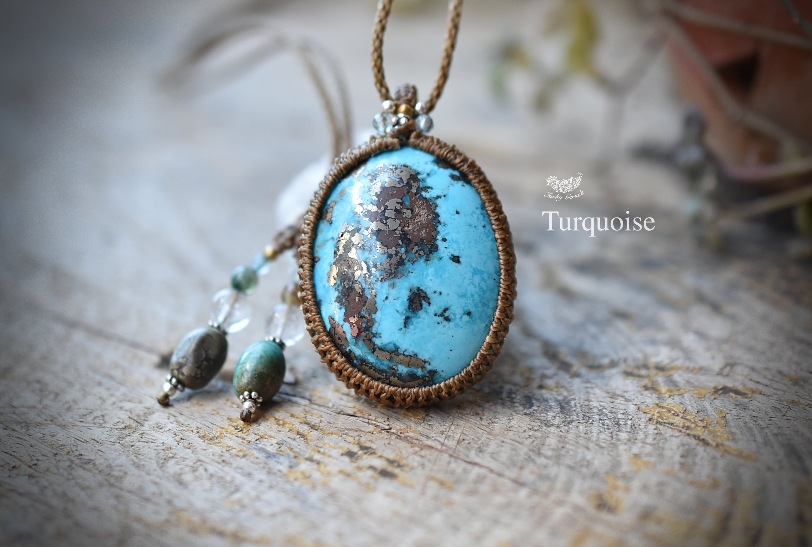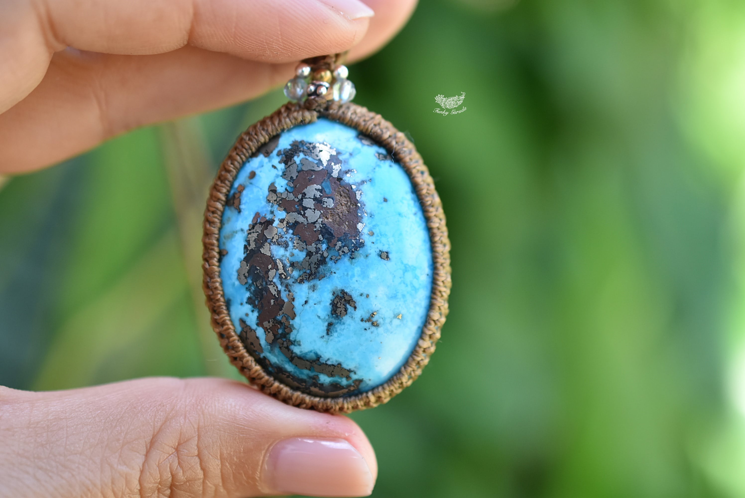 地図パイライト★大粒★ターコイズ マクラメネックレス1127
