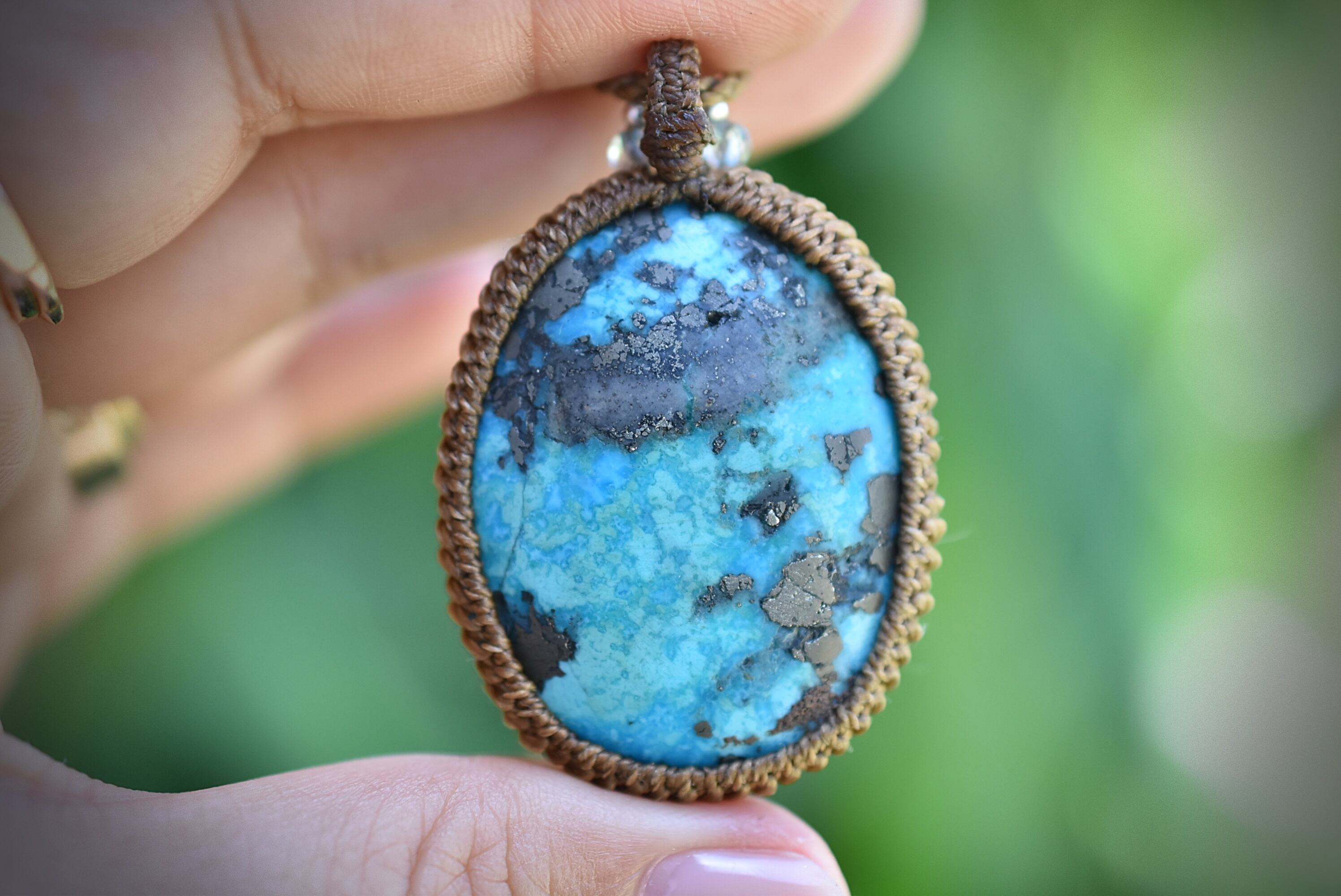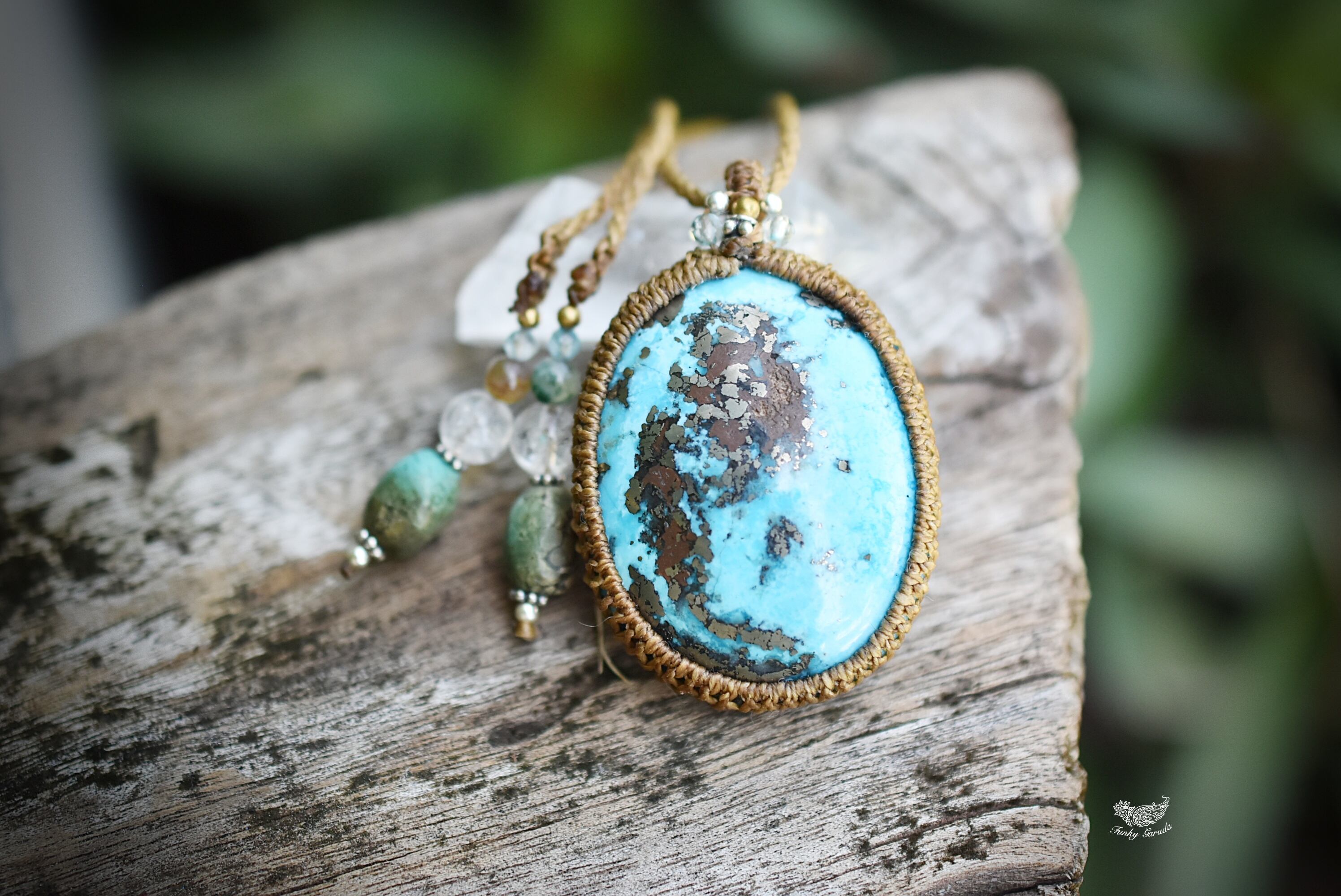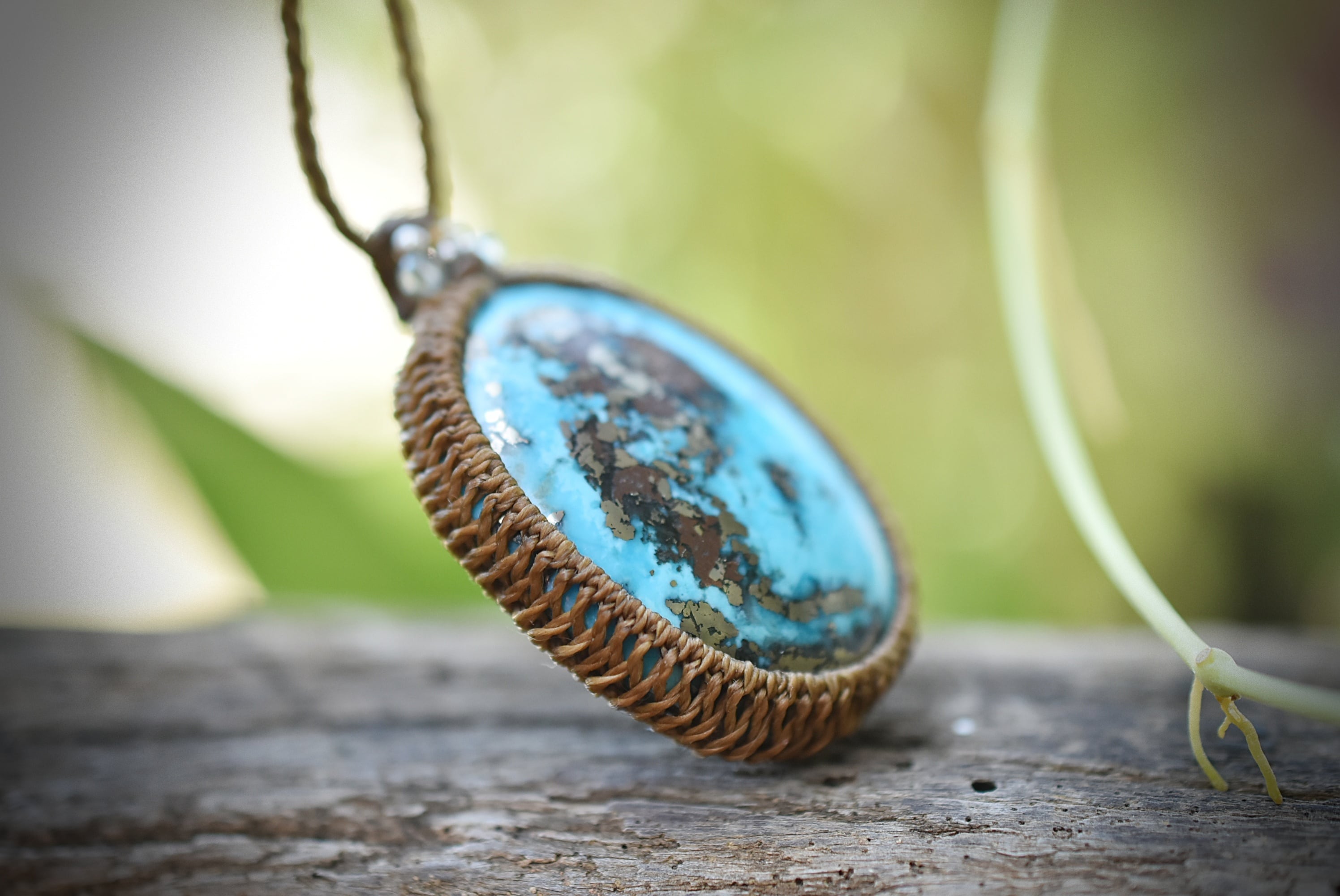 地図パイライト★大粒★ターコイズ マクラメネックレス1127