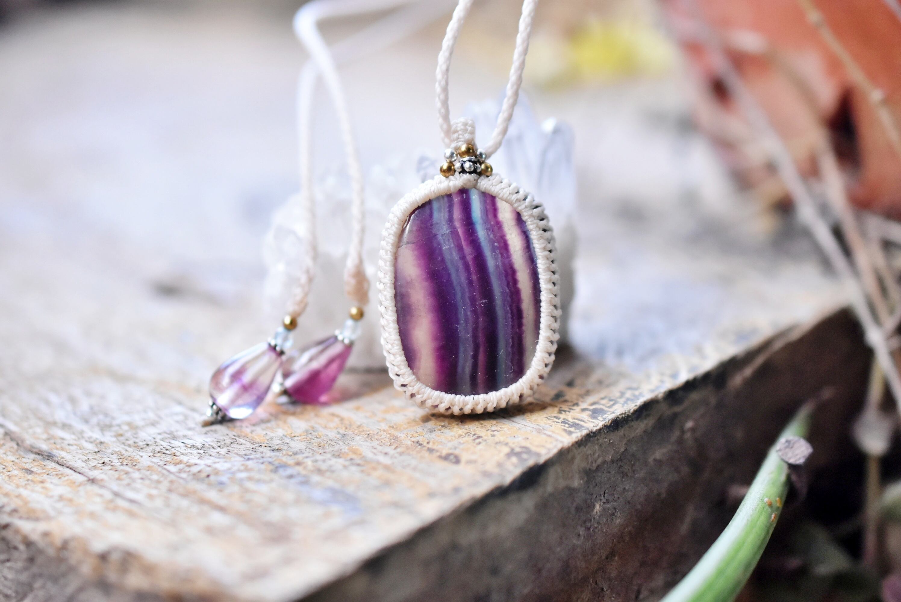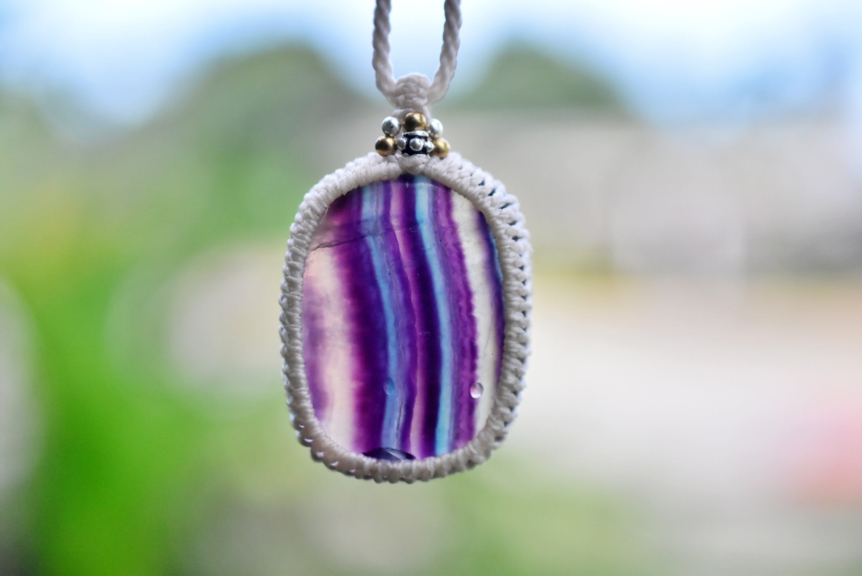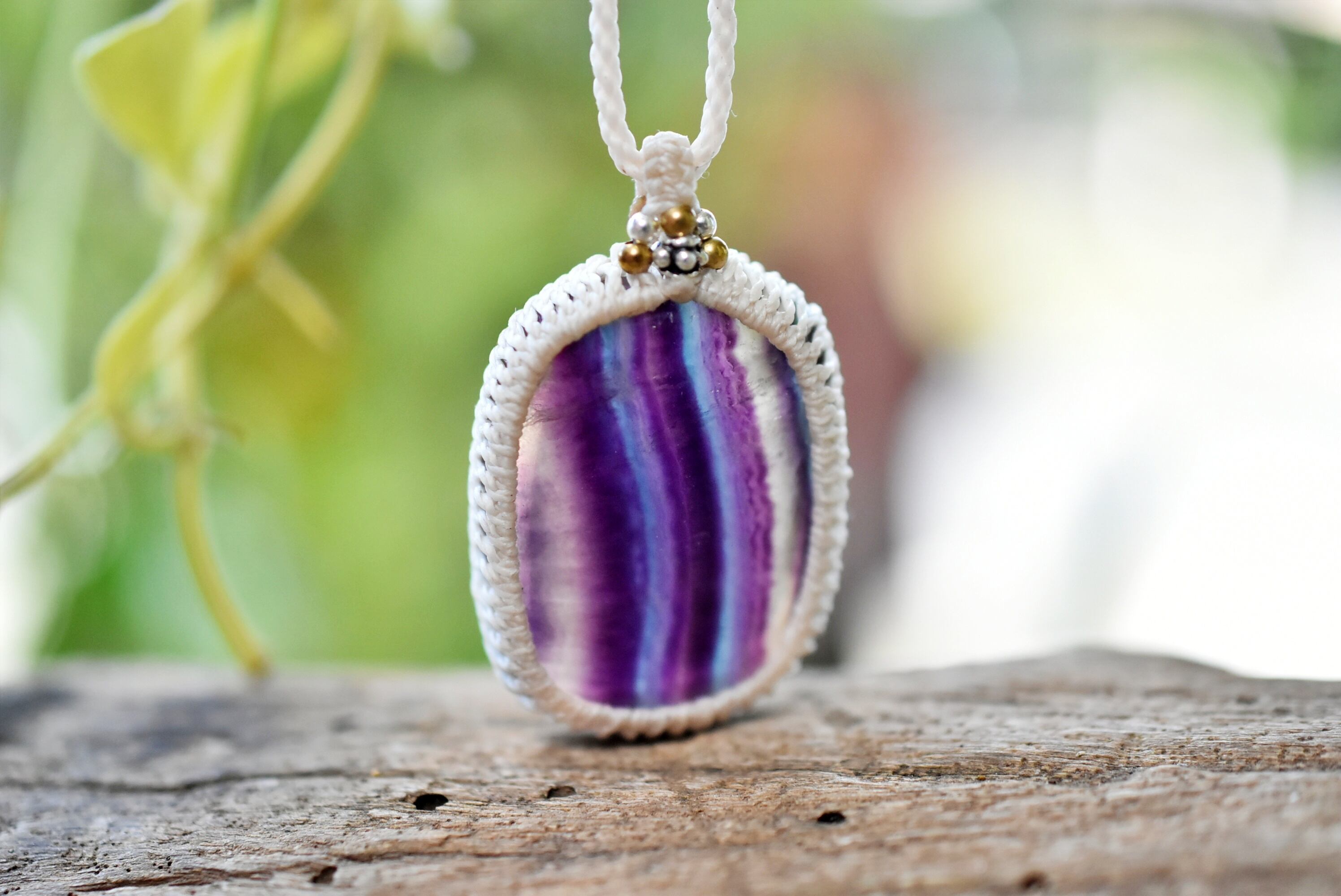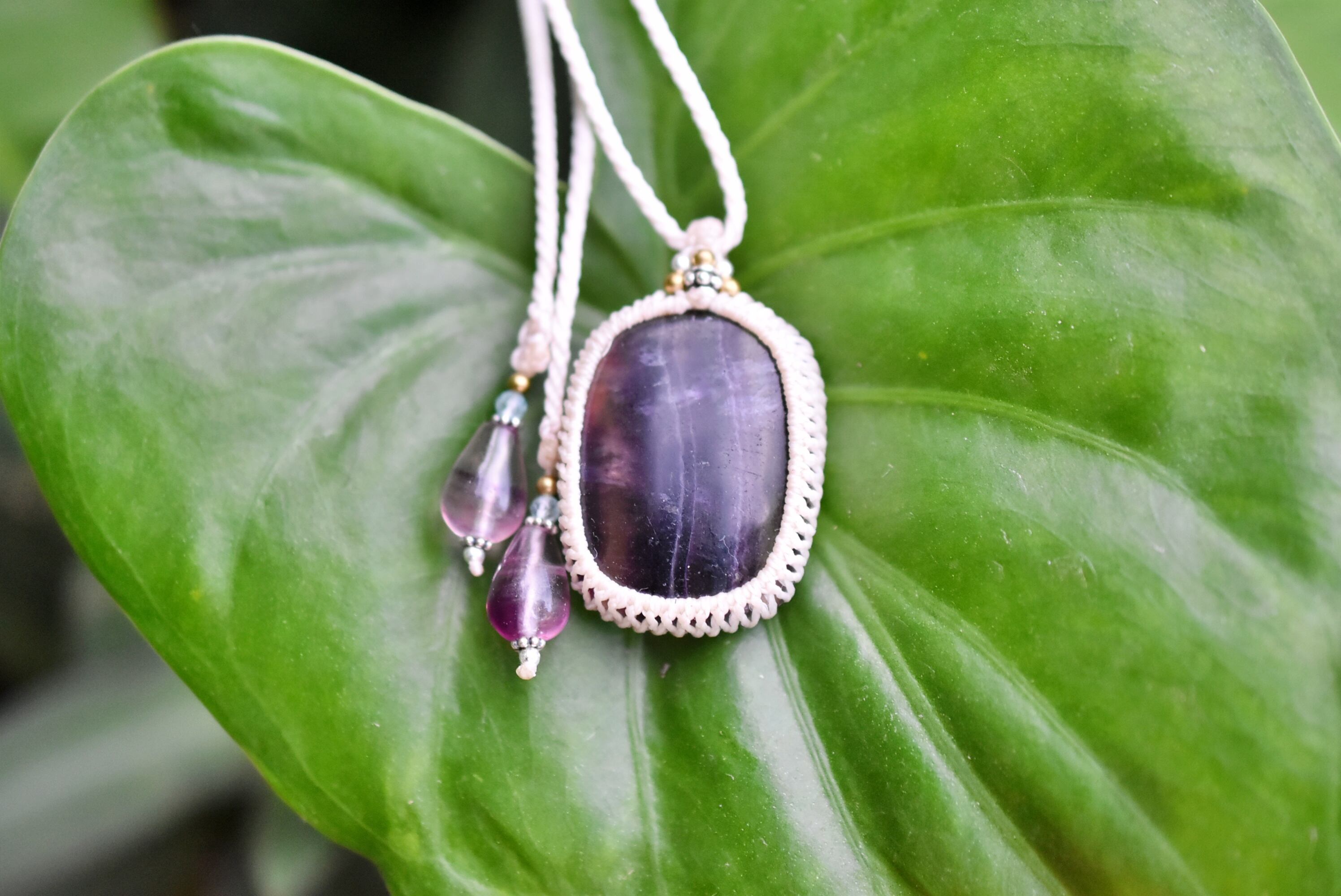 ◆このたびはナチュラルホワイト色の蝋引き糸を使用しマクラメ編み装飾を施しました。