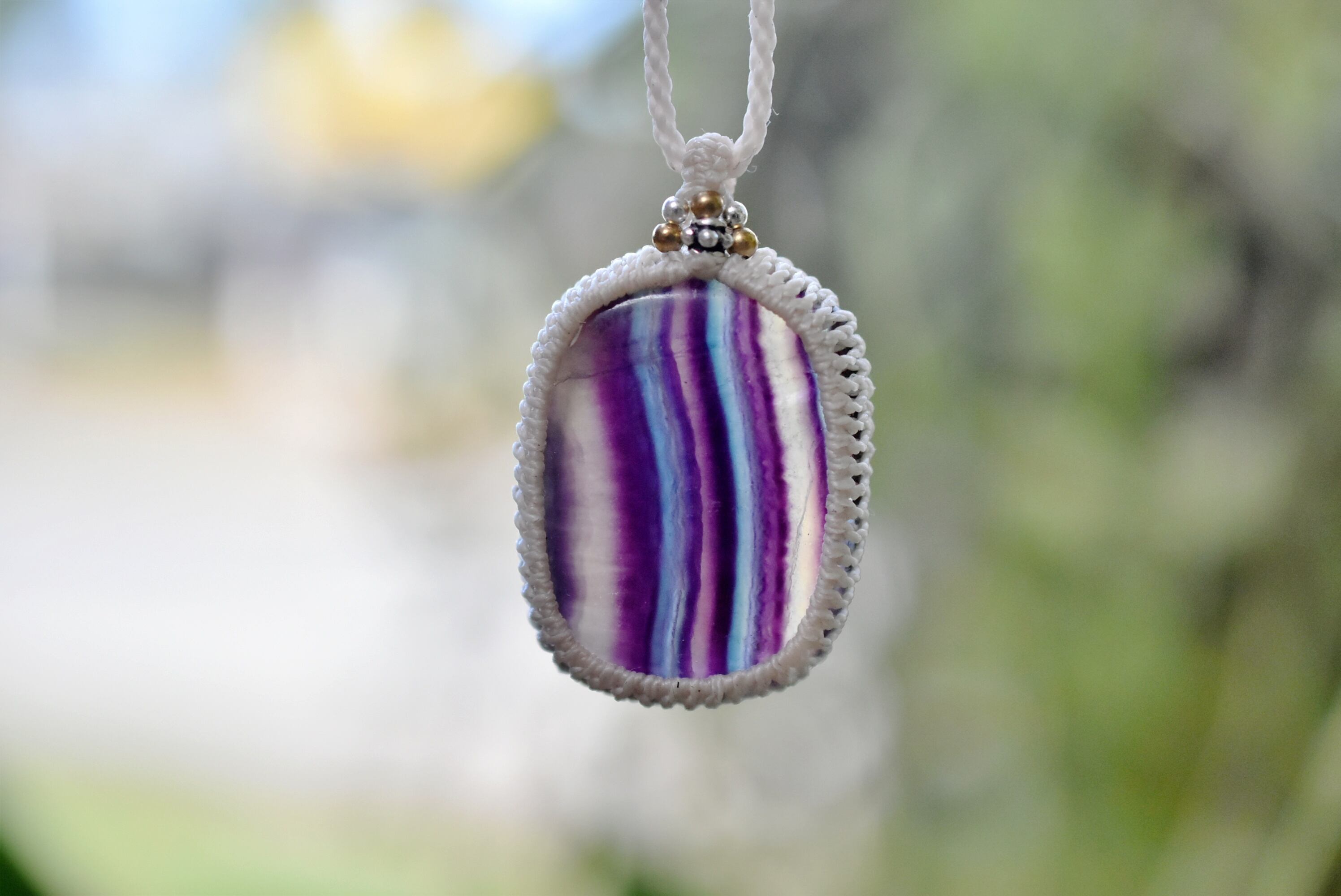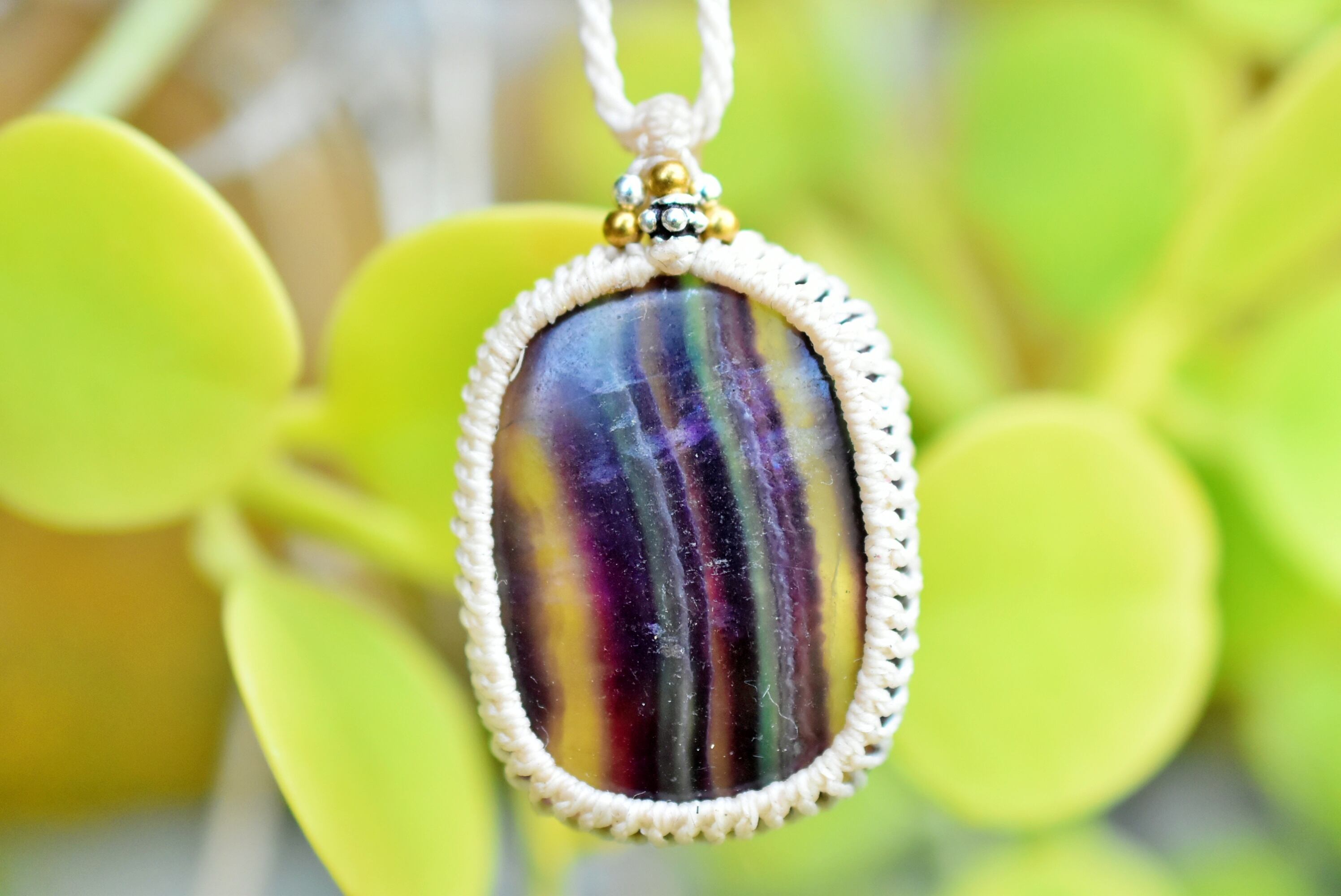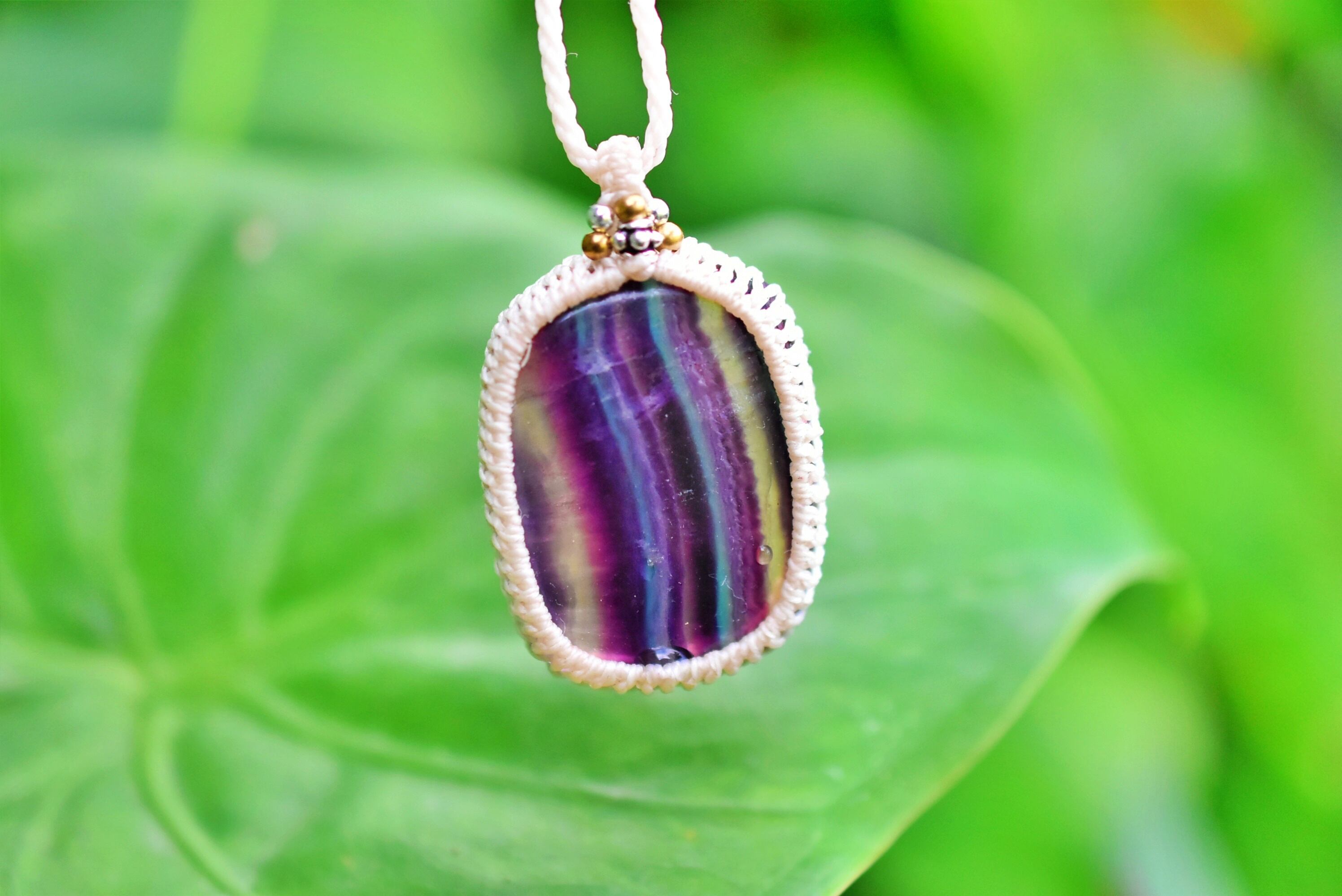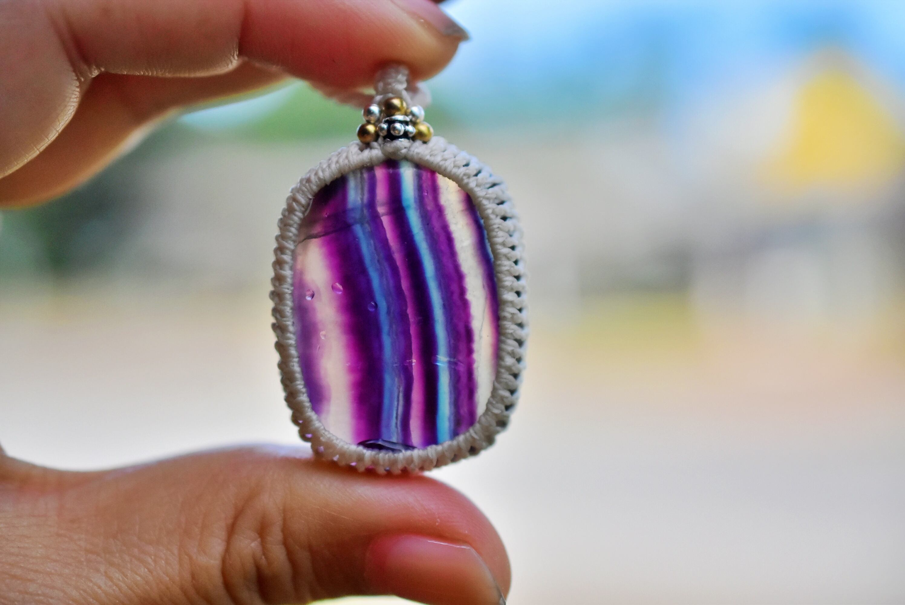 ◆このたびはナチュラルホワイト色の蝋引き糸を使用しマクラメ編み装飾を施しました。