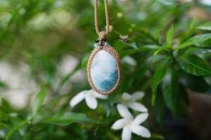 花と厚み★中粒★ラリマー マクラメネックレス1301