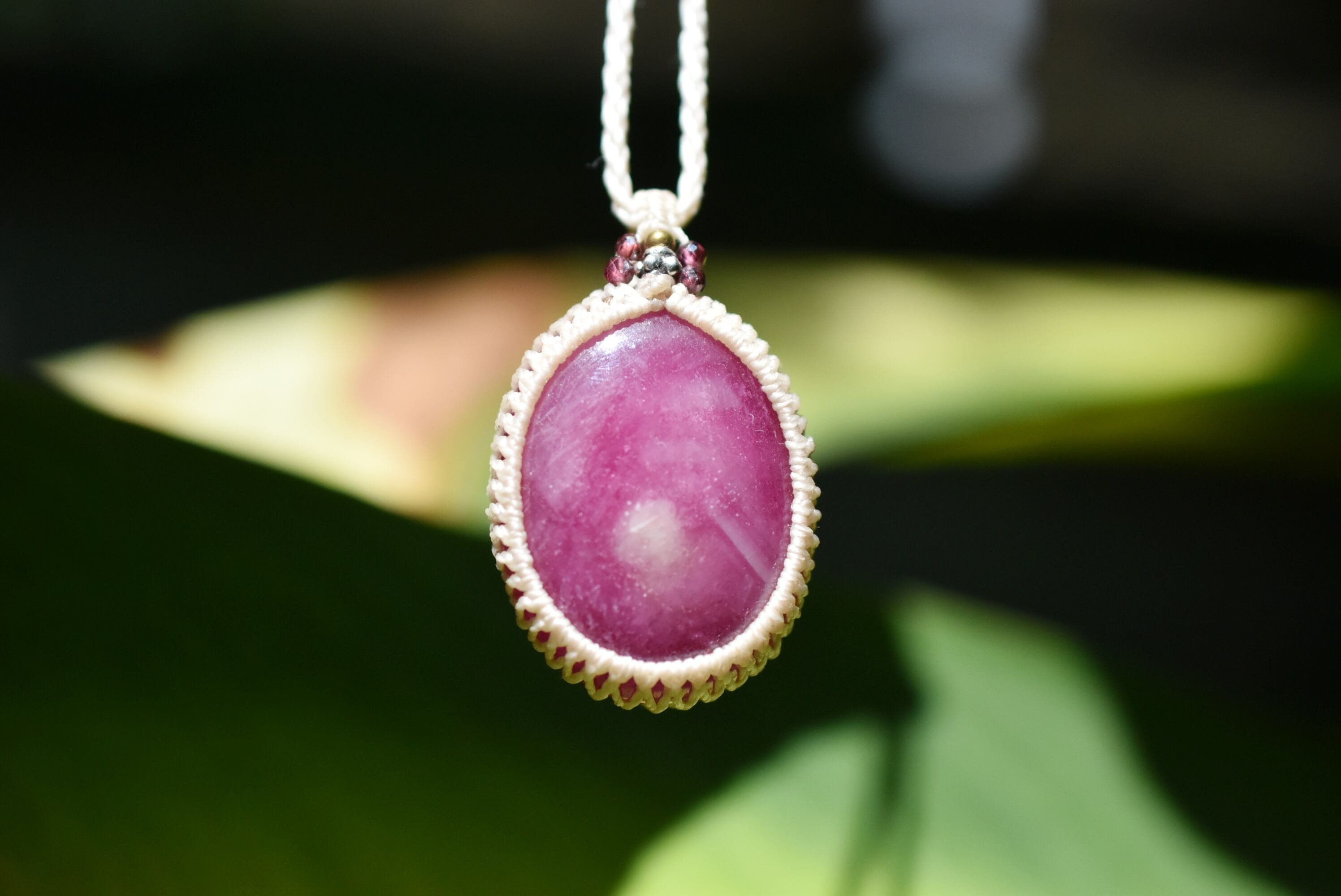 コランダム大粒★パンダ★ルビーマクラメネックレス1136