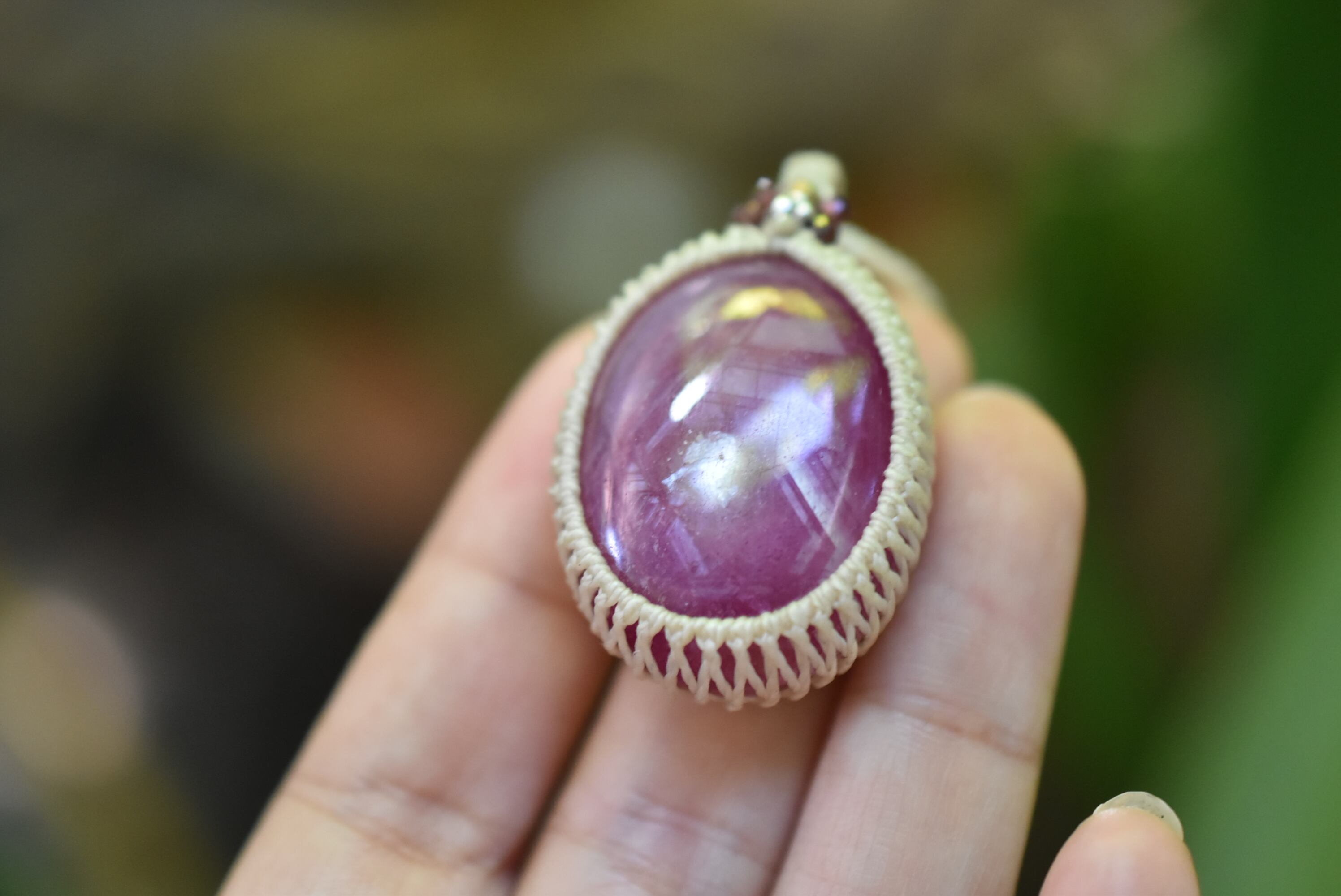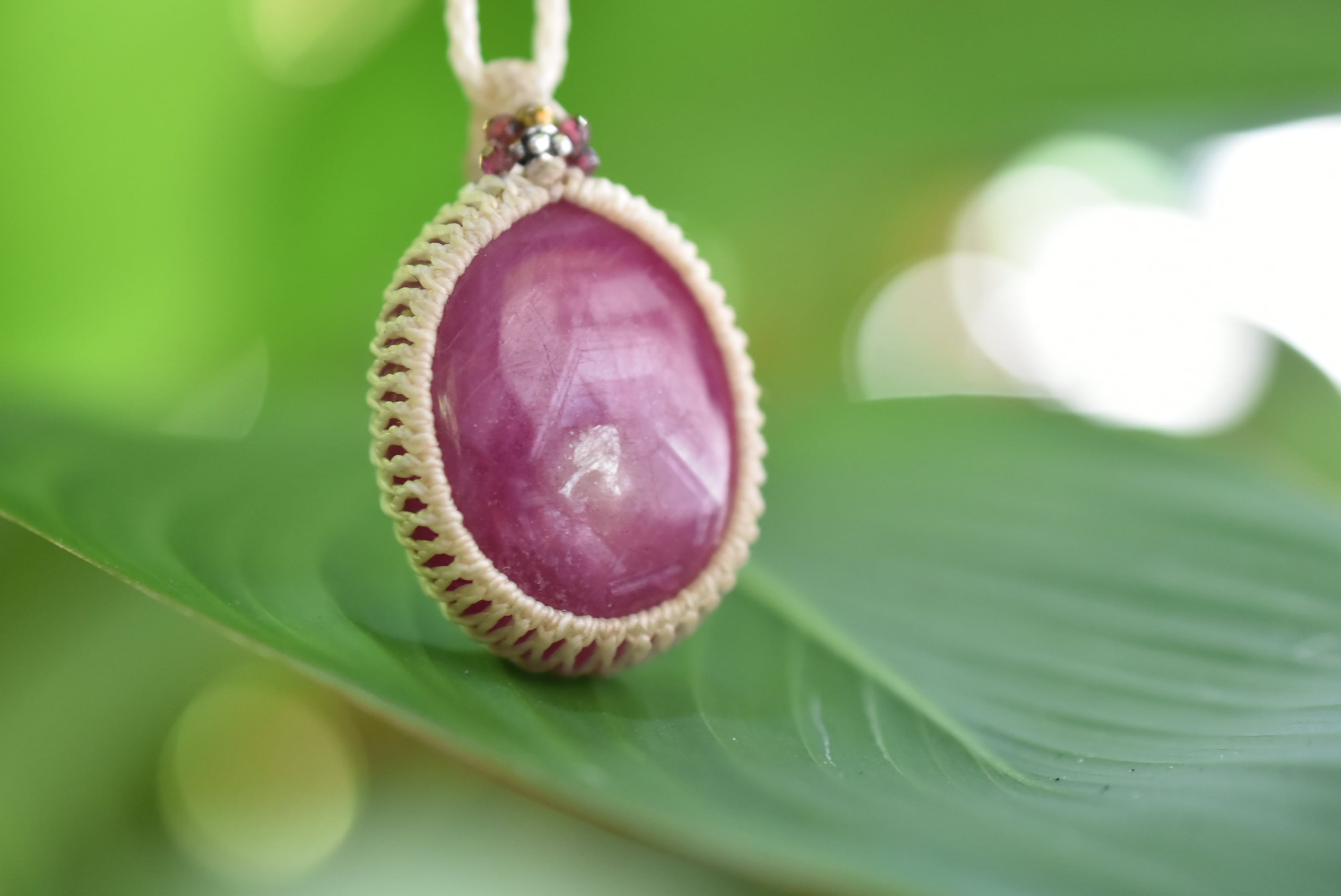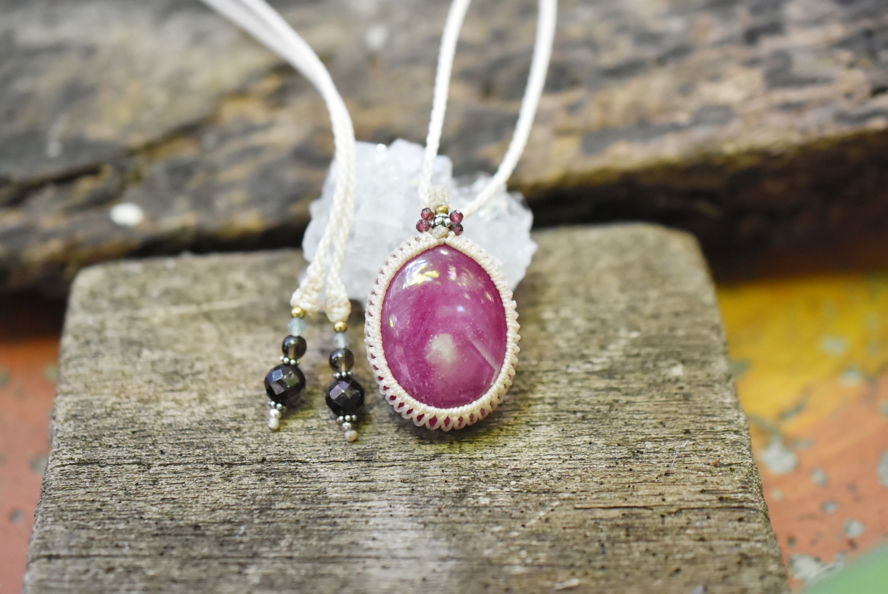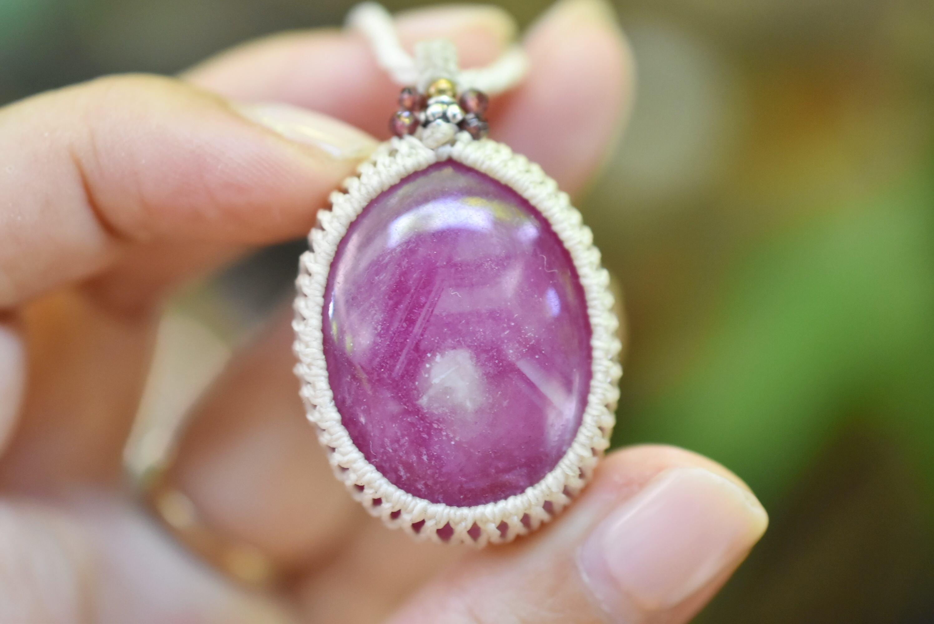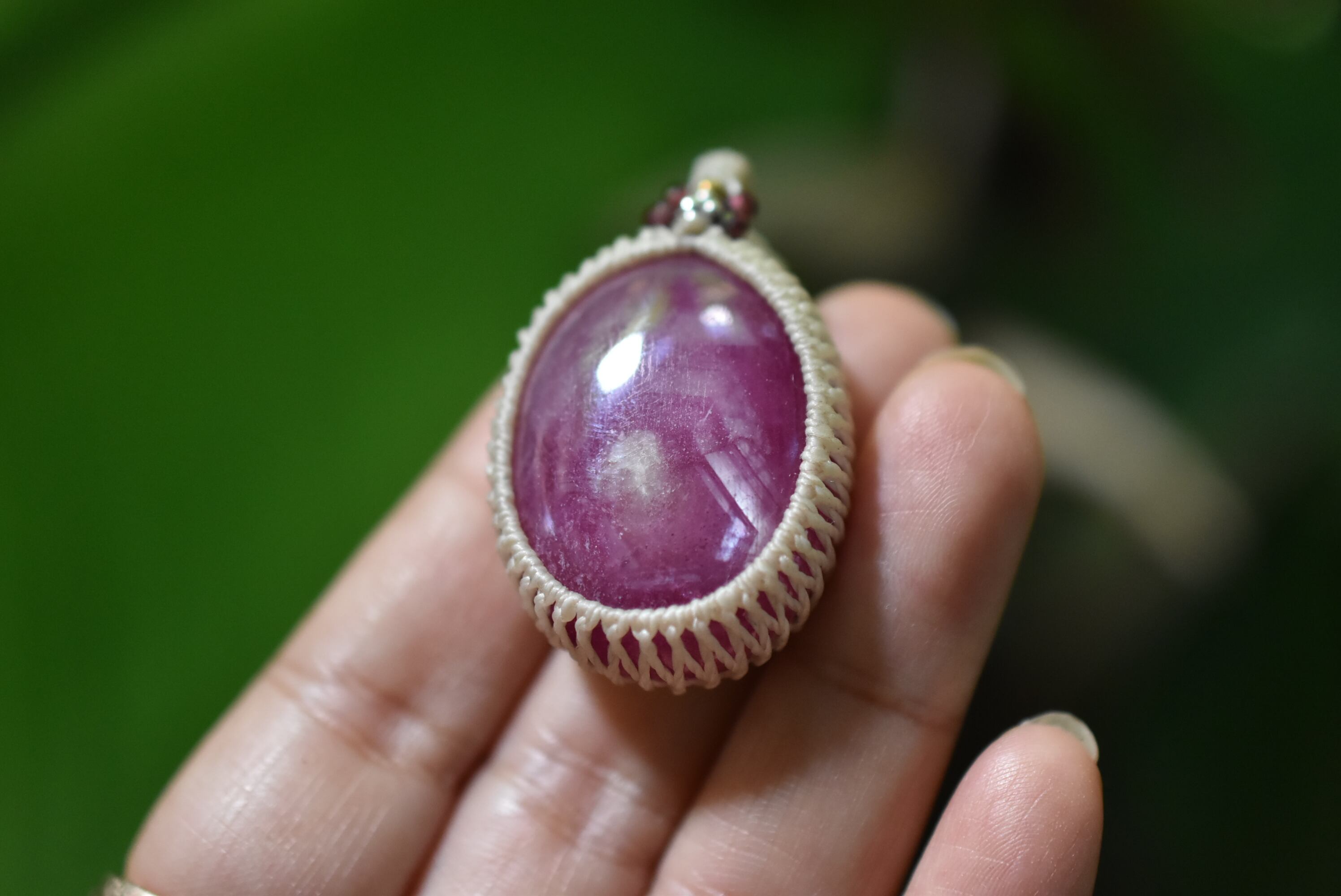 囲んで巻き込み、マクラメペンダントに仕上げました。