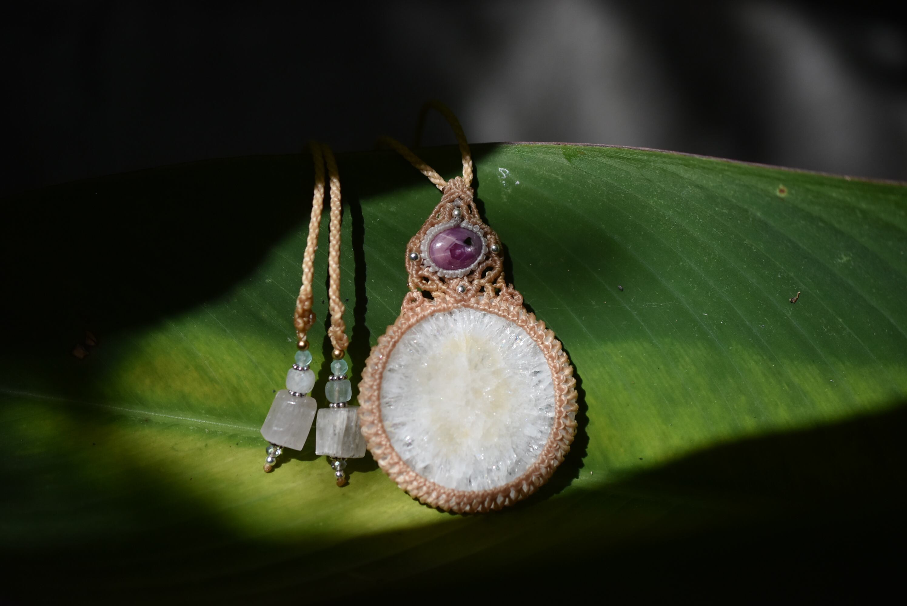 命の輝き★スターコランダム★ソーラークォーツ マクラメネックレス1137