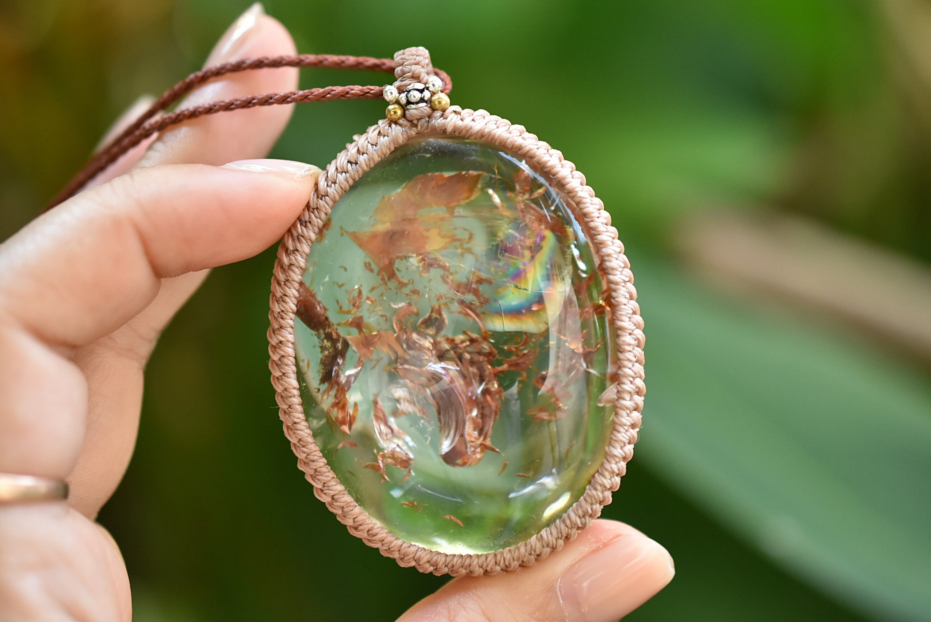 特大★虹入り★レッド★ガーデンクォーツ マクラメペンダントネックレス1038