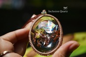 透明度の高い水晶の中に入り込む貫入、虹..。