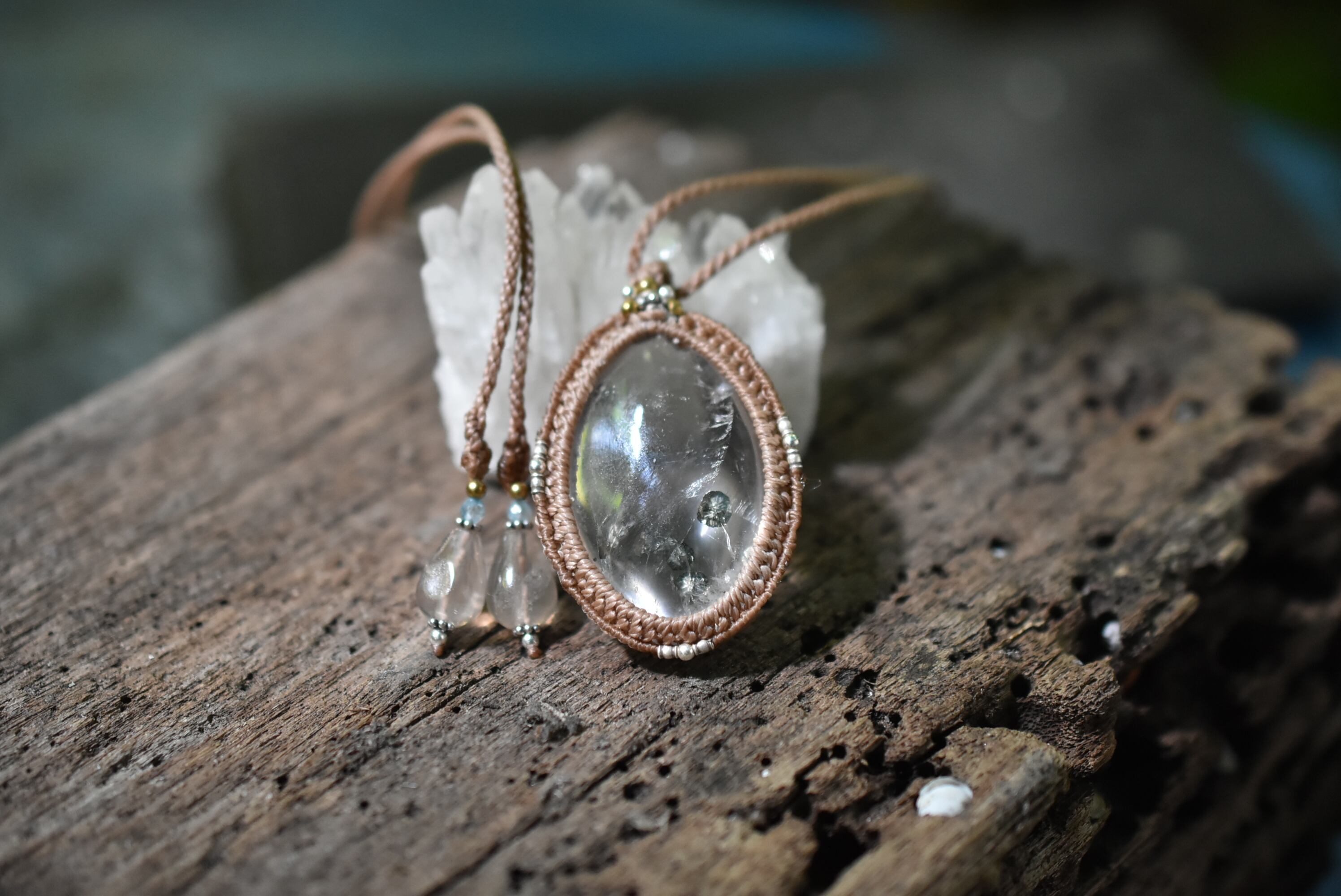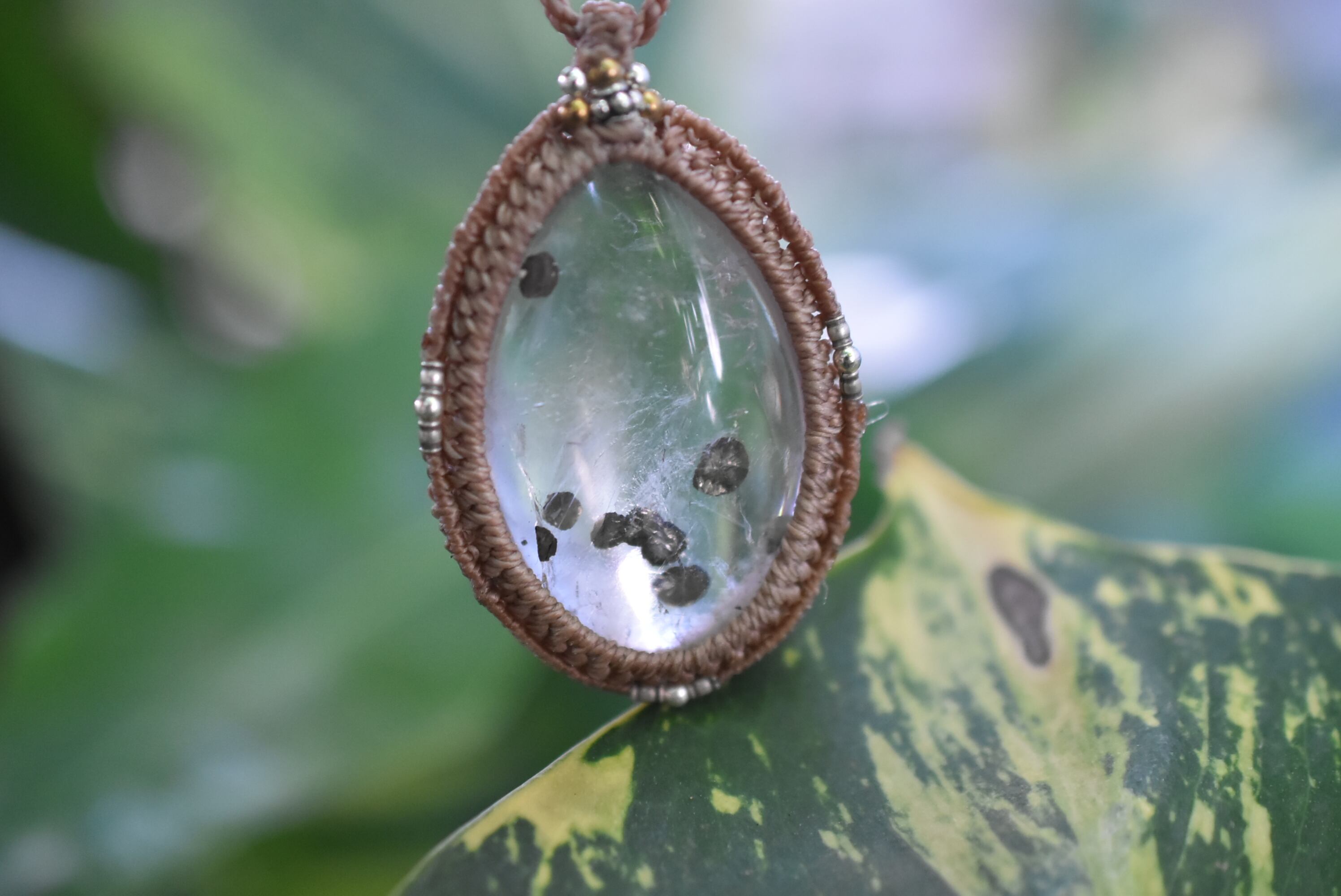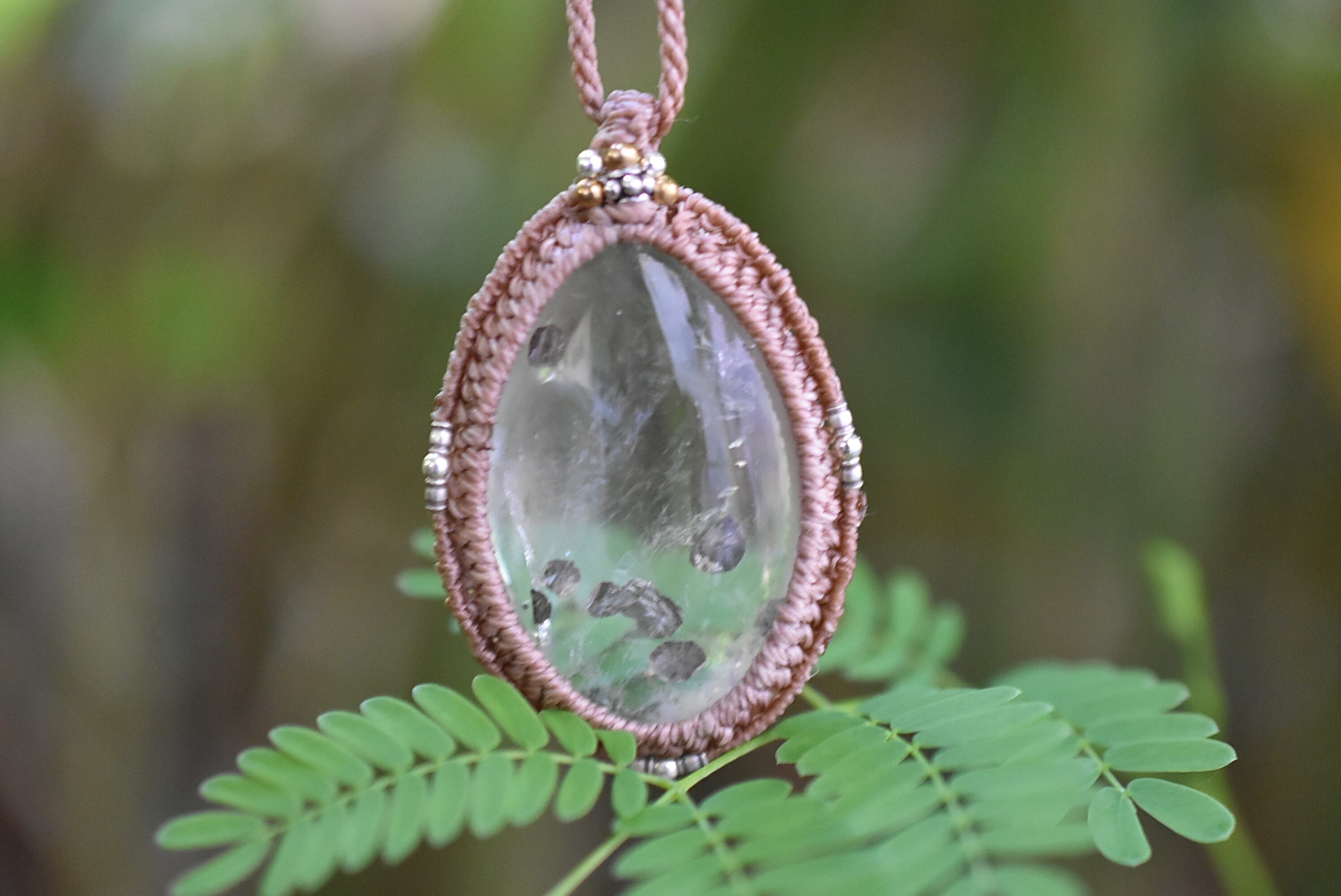 大粒★マーカサイト インクォーツ マクラメネックレス1140
