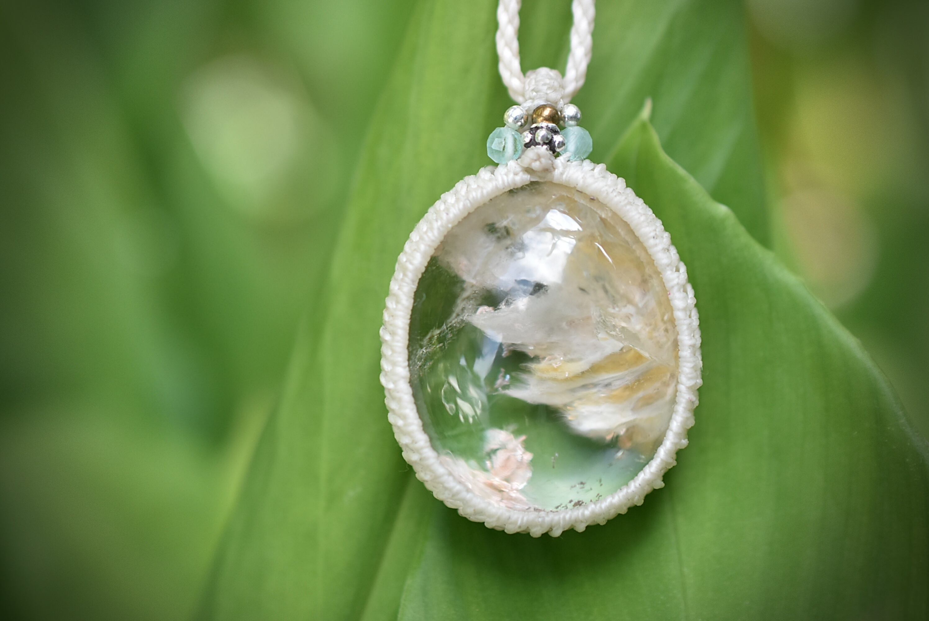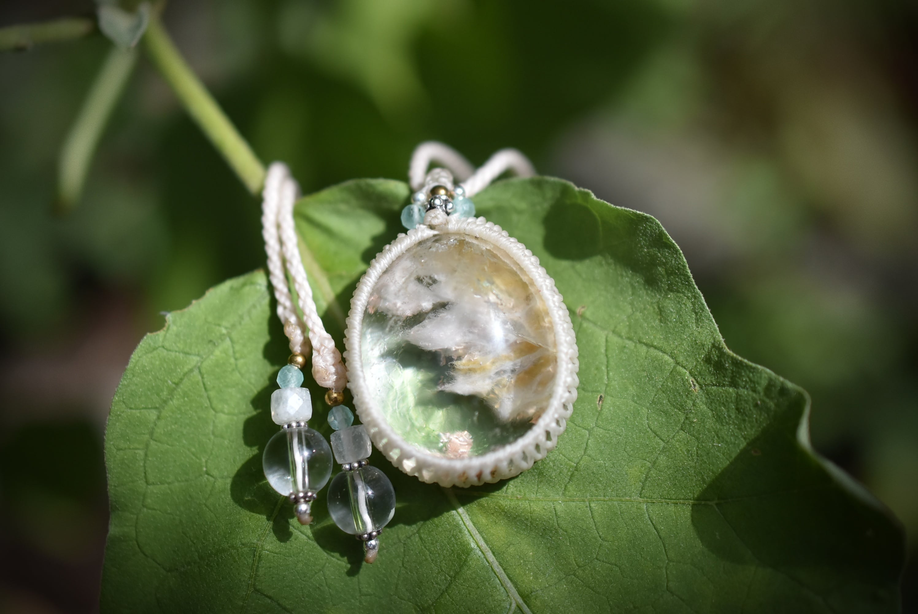 白い地図★Whiteガーデンクォーツ マクラメネックレス1162