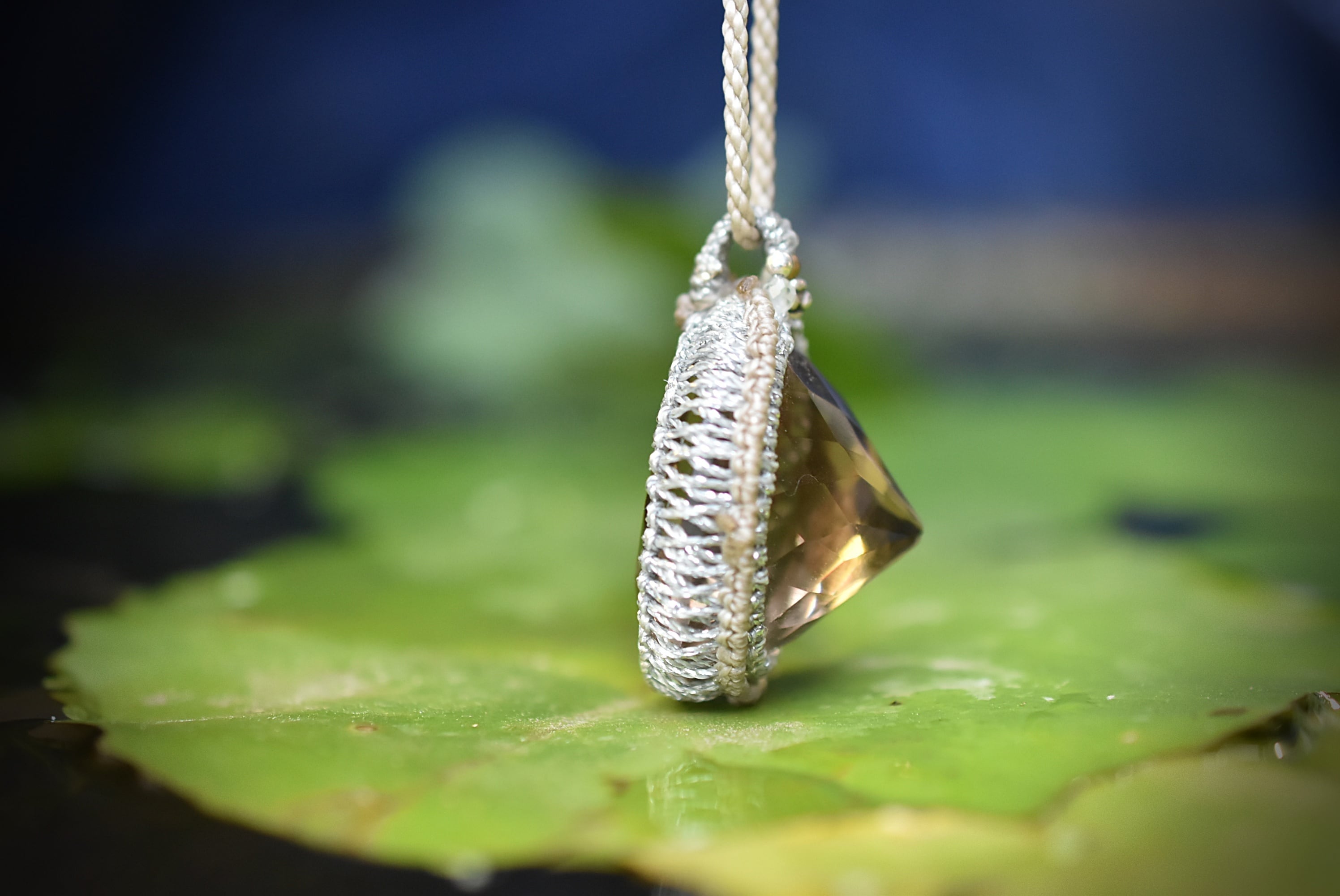 宝石ファセットカット★スモーキークォーツ マクラメネックレス1169