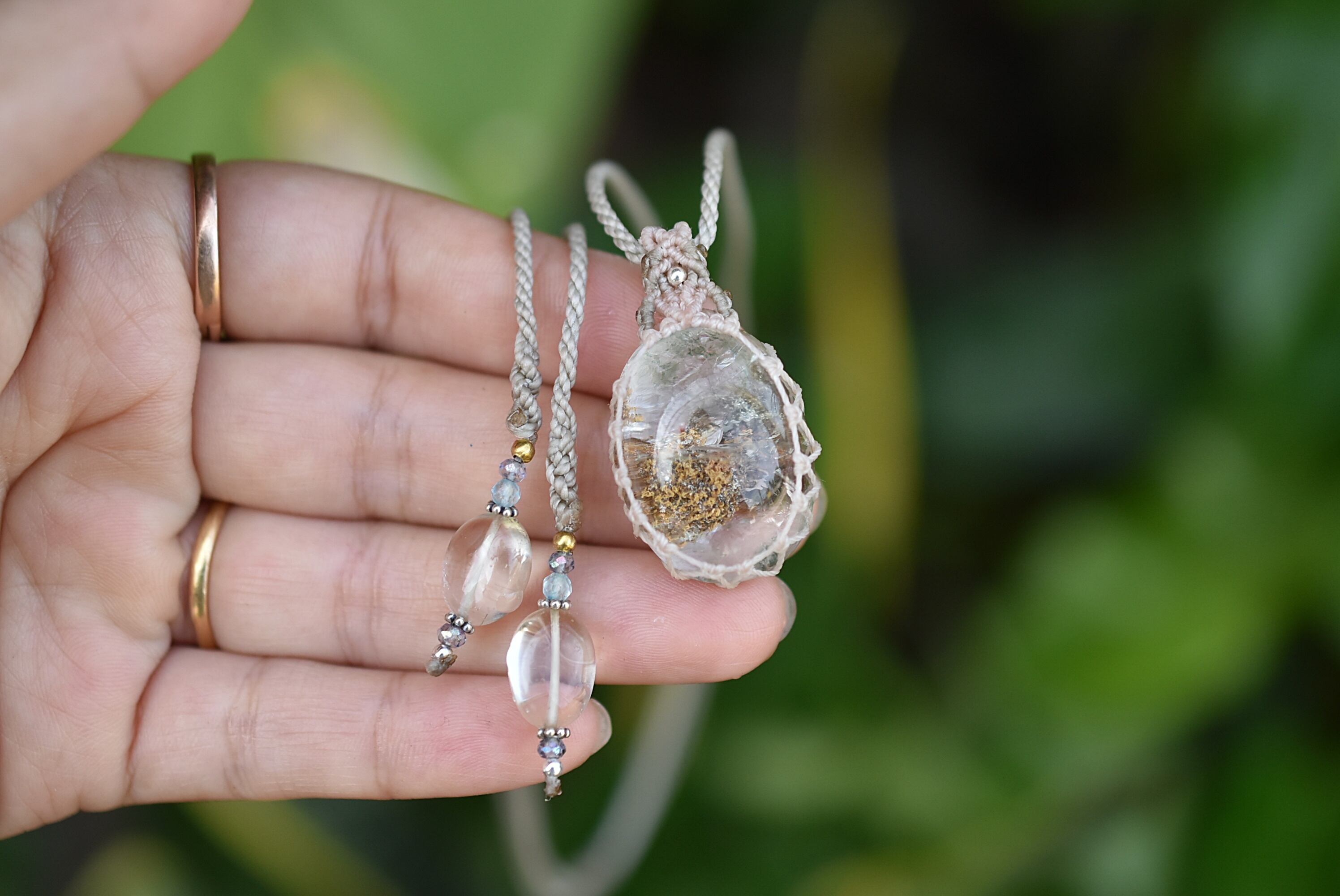 自然の木々★ガーデンクォーツ マクラメネックレス1180