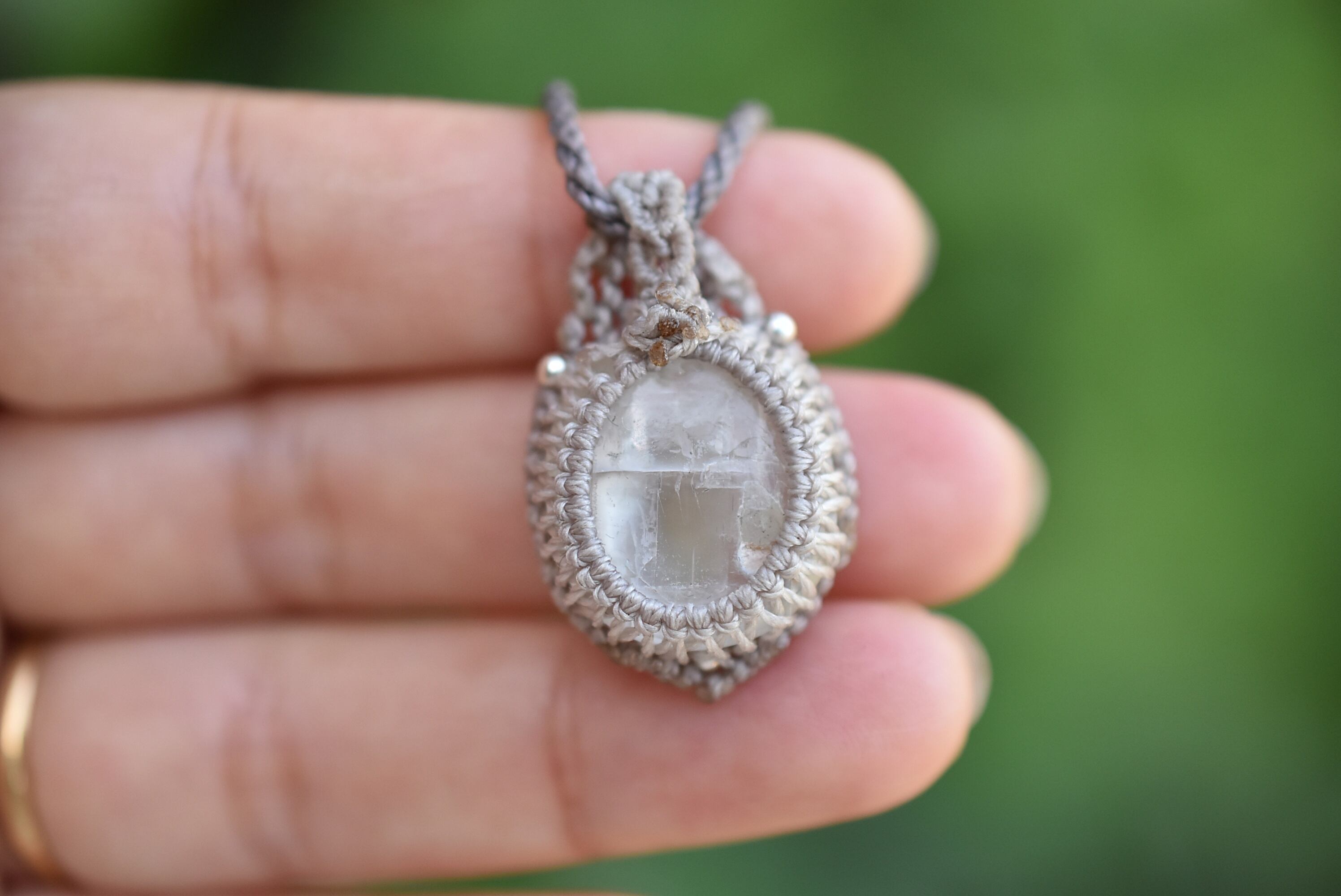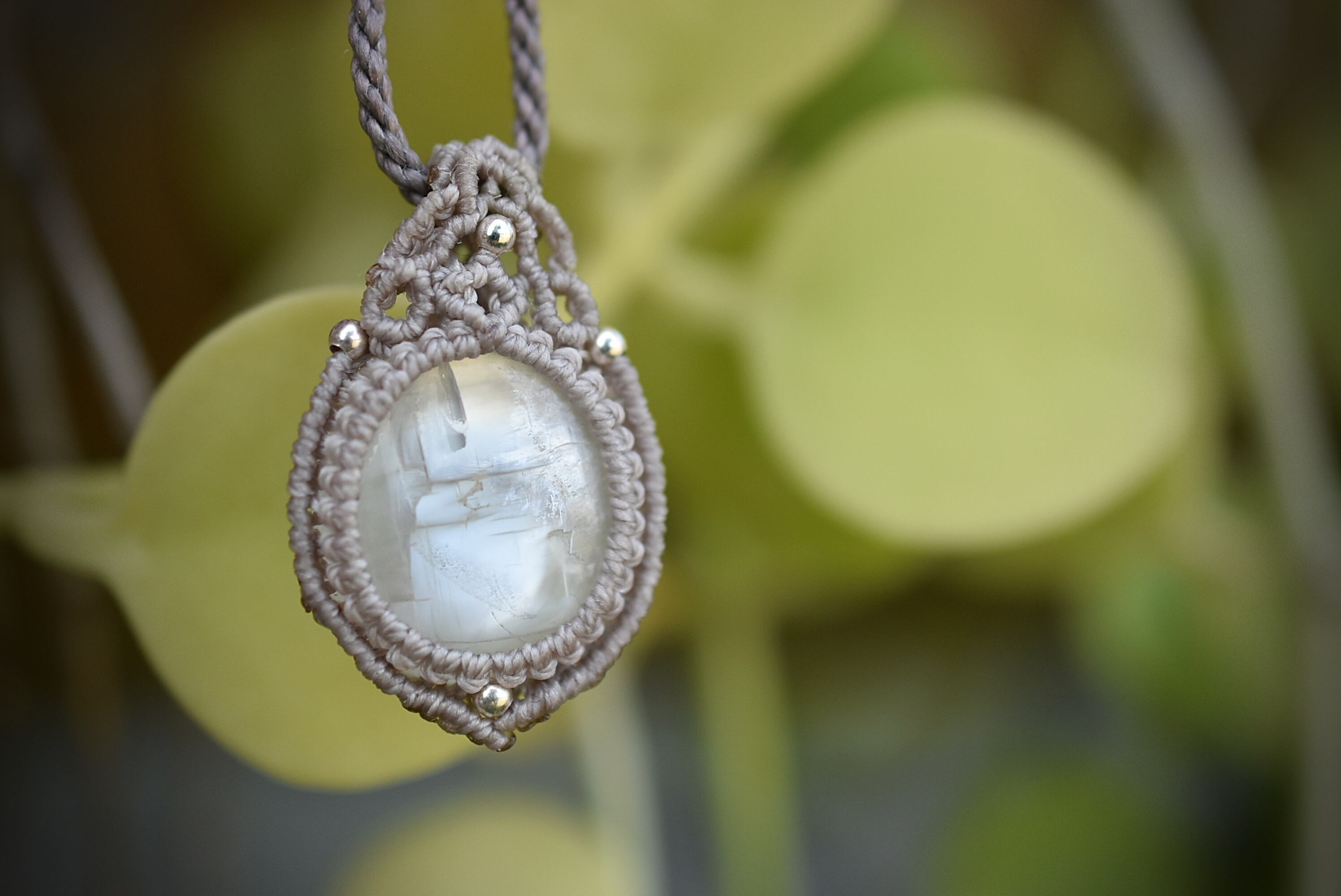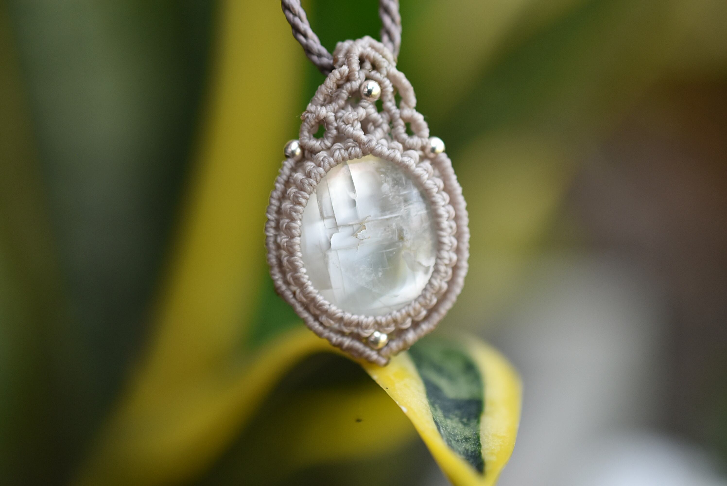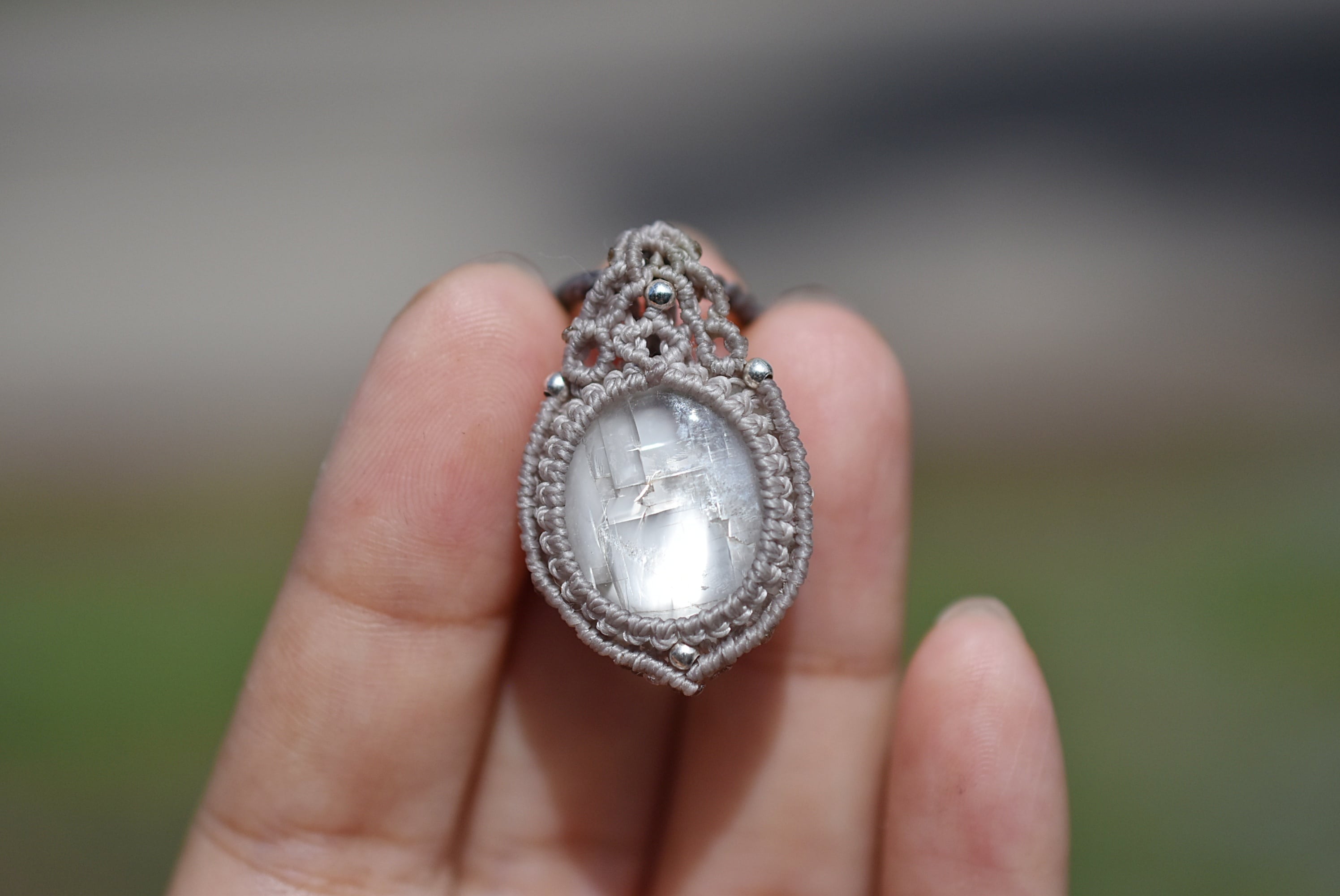 シルキーミラー★ミャンマー産★ムーンストーン マクラメネックレス1183