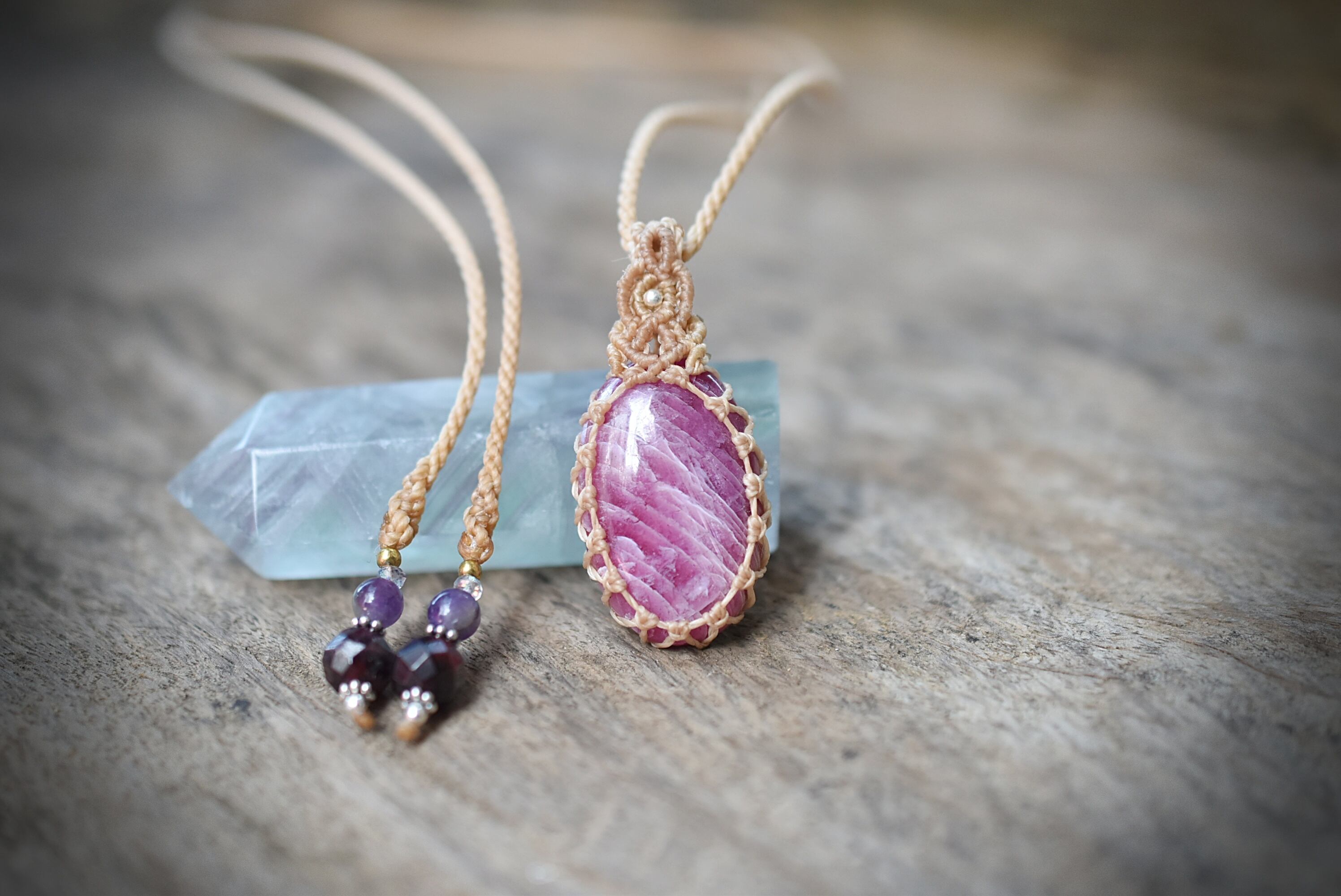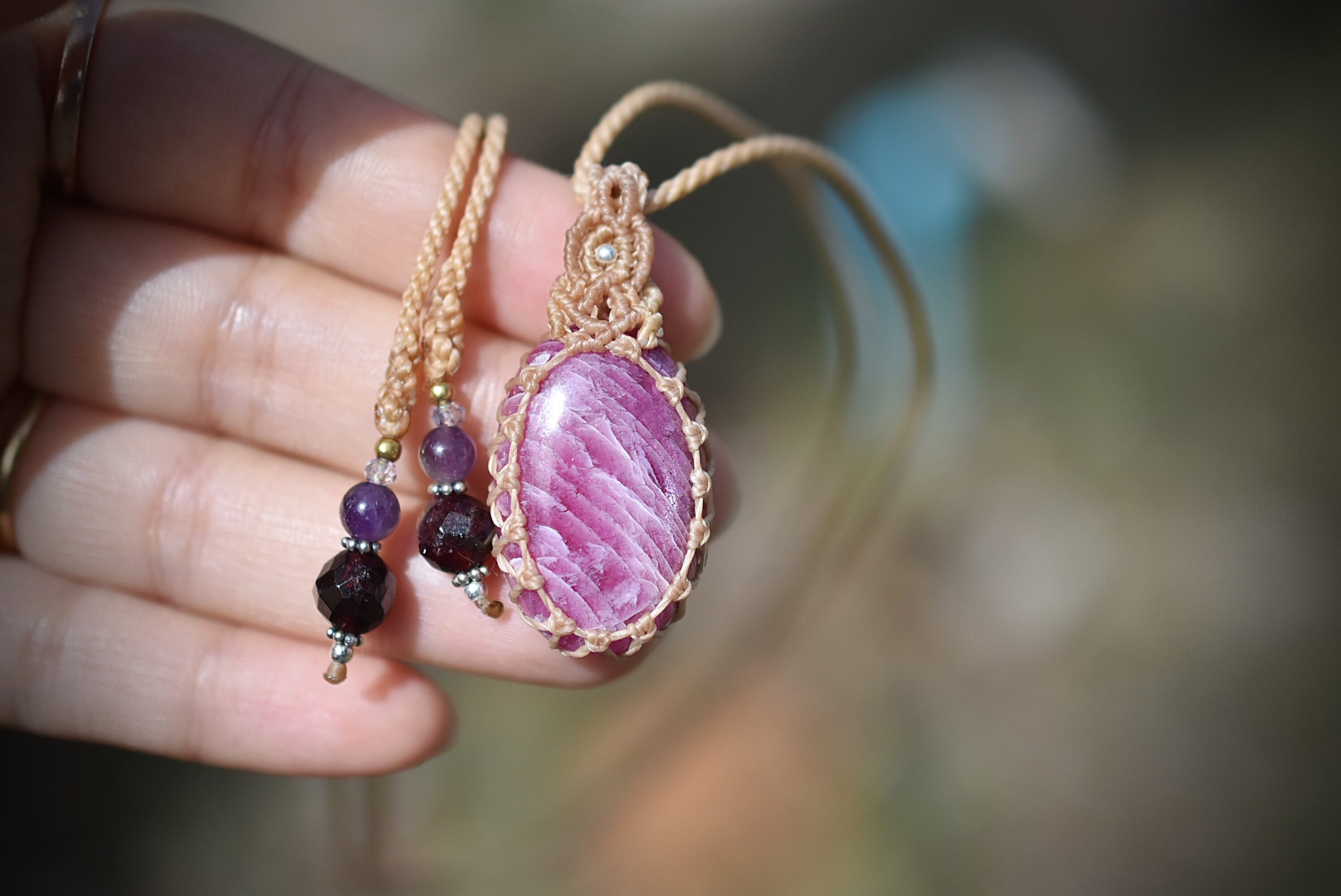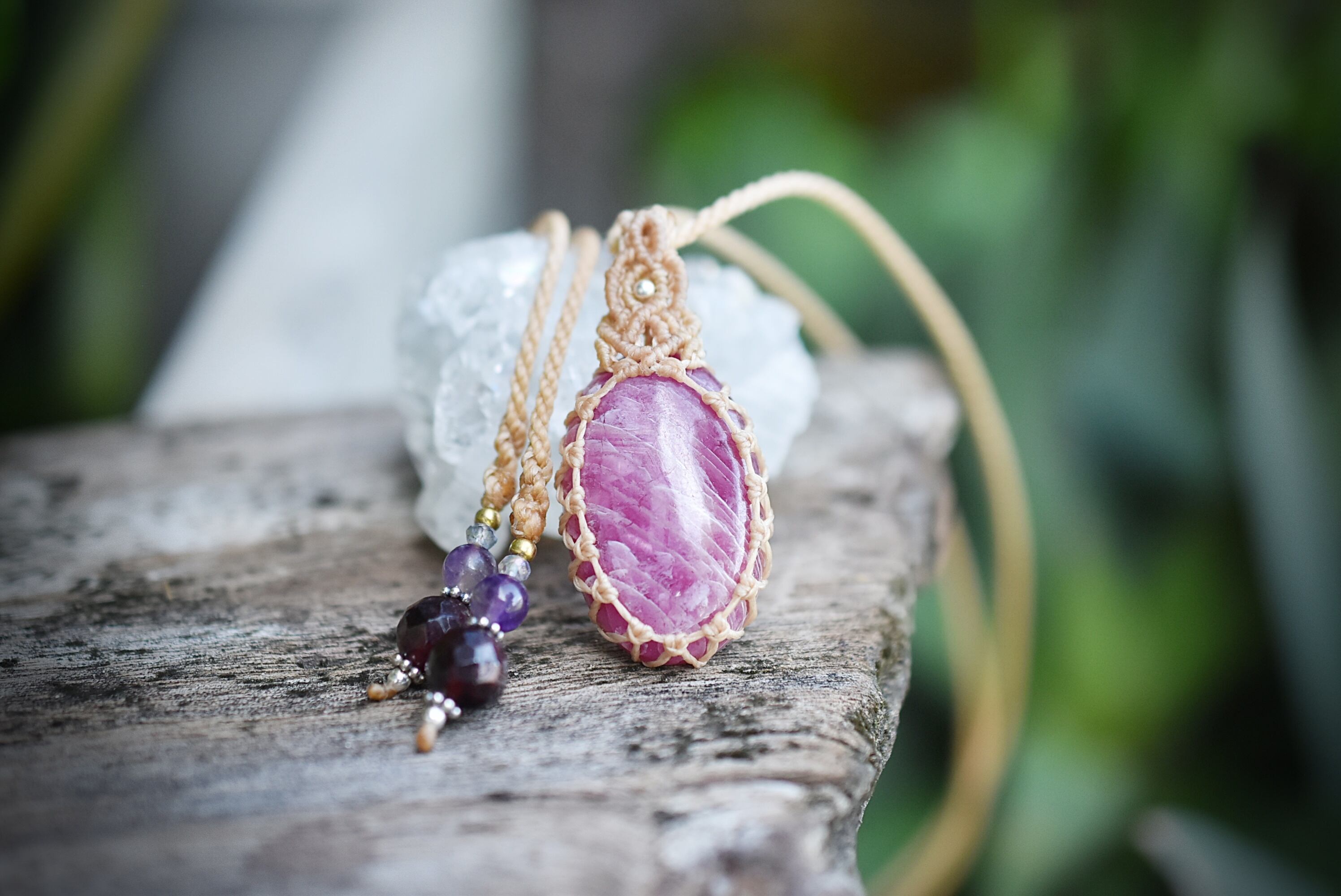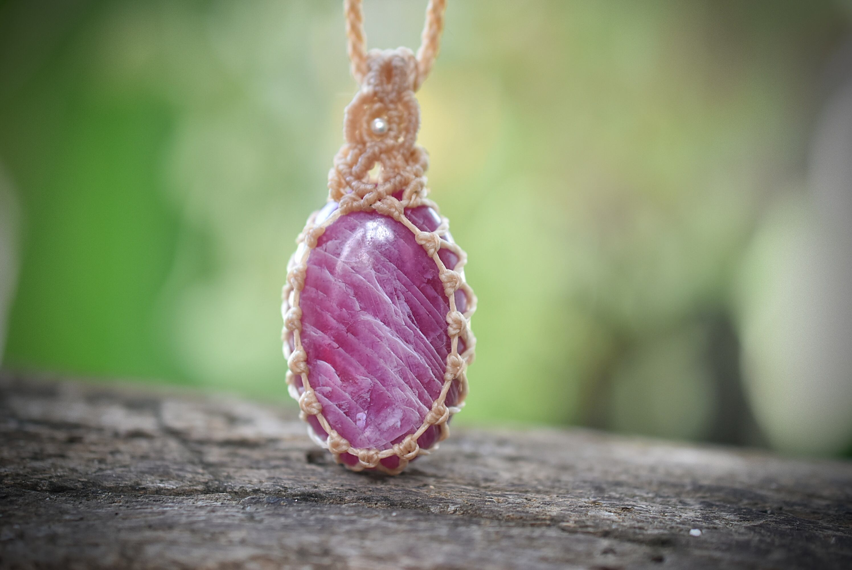 アートな傾斜シラー★ルビーマクラメネックレス1184