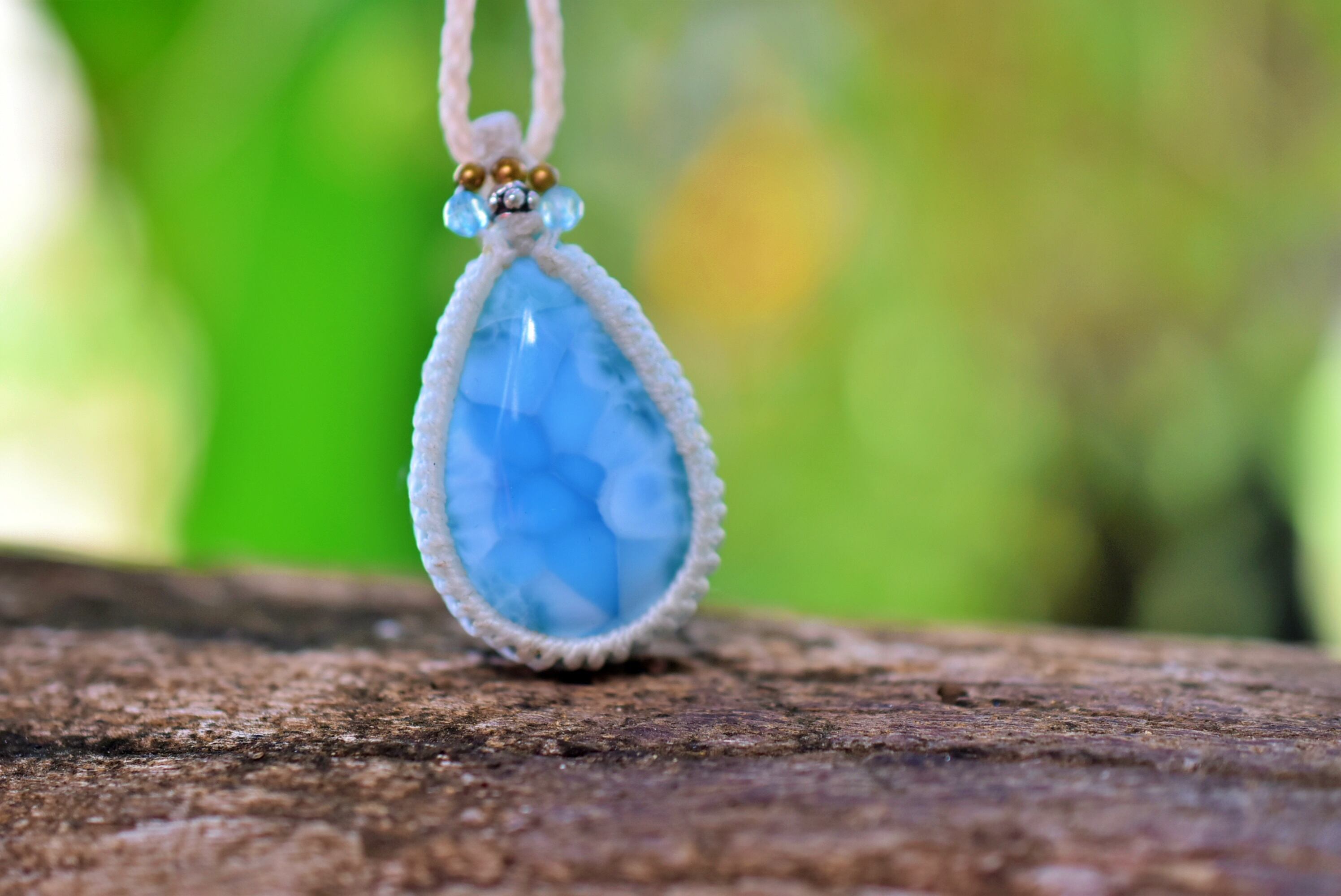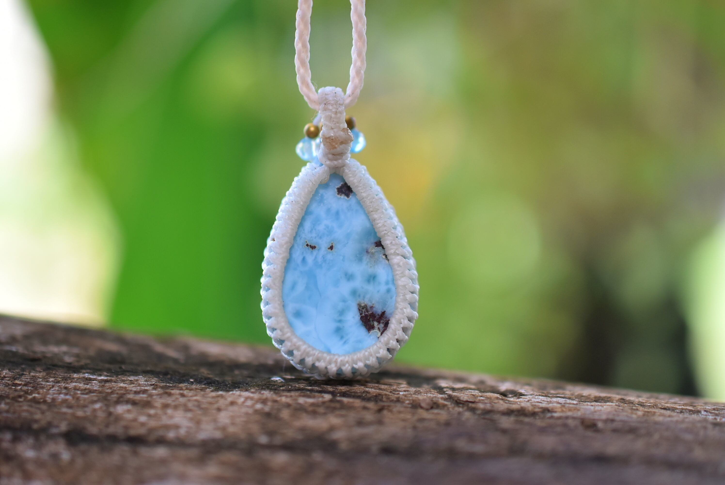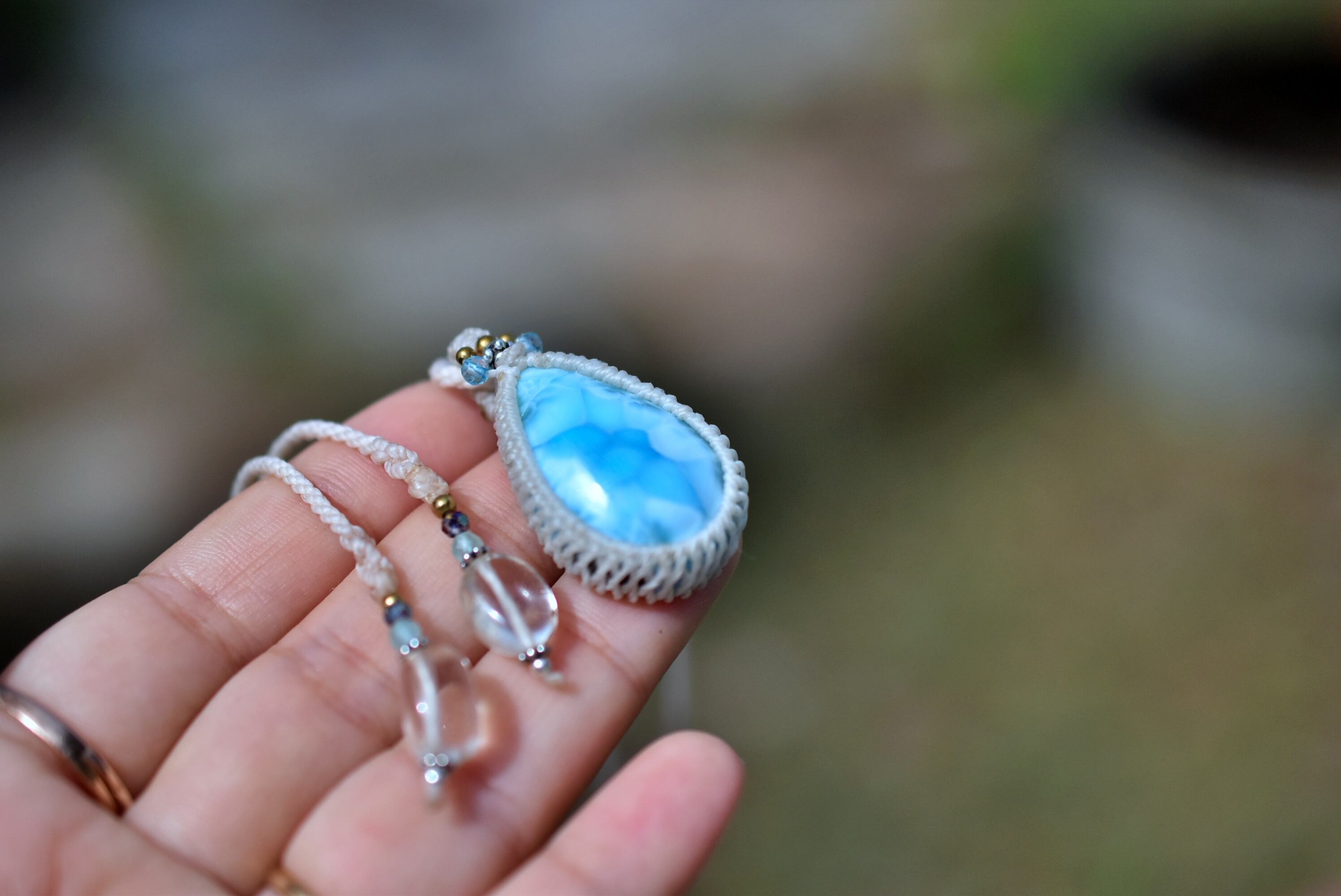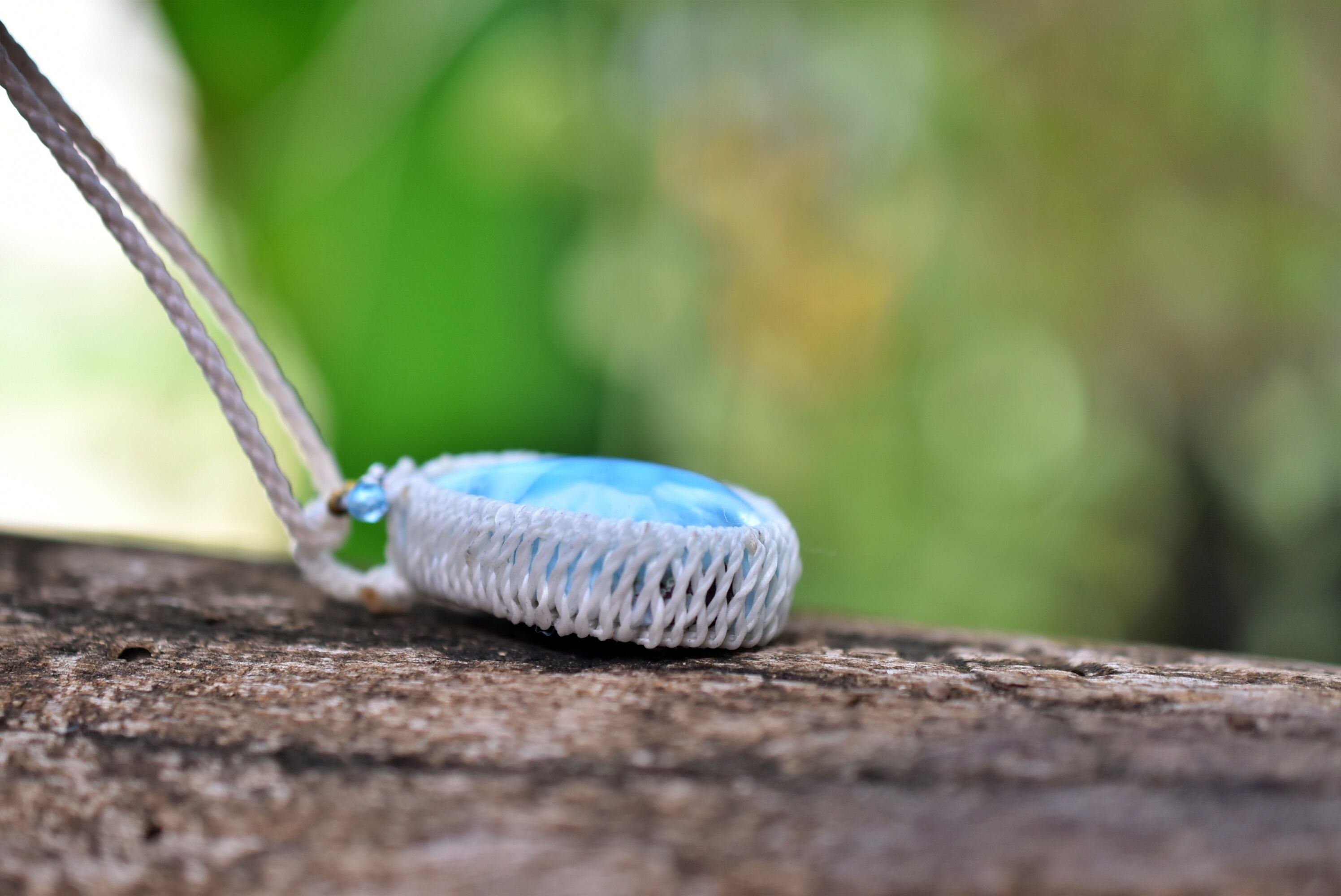 ◆このたびはナチュラルホワイト色の蝋引き糸を使用しマクラメ編み装飾を施しました。